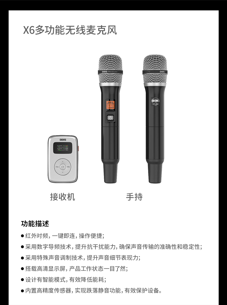 BBS X6多功能无线麦克风(配S/L系列音箱)