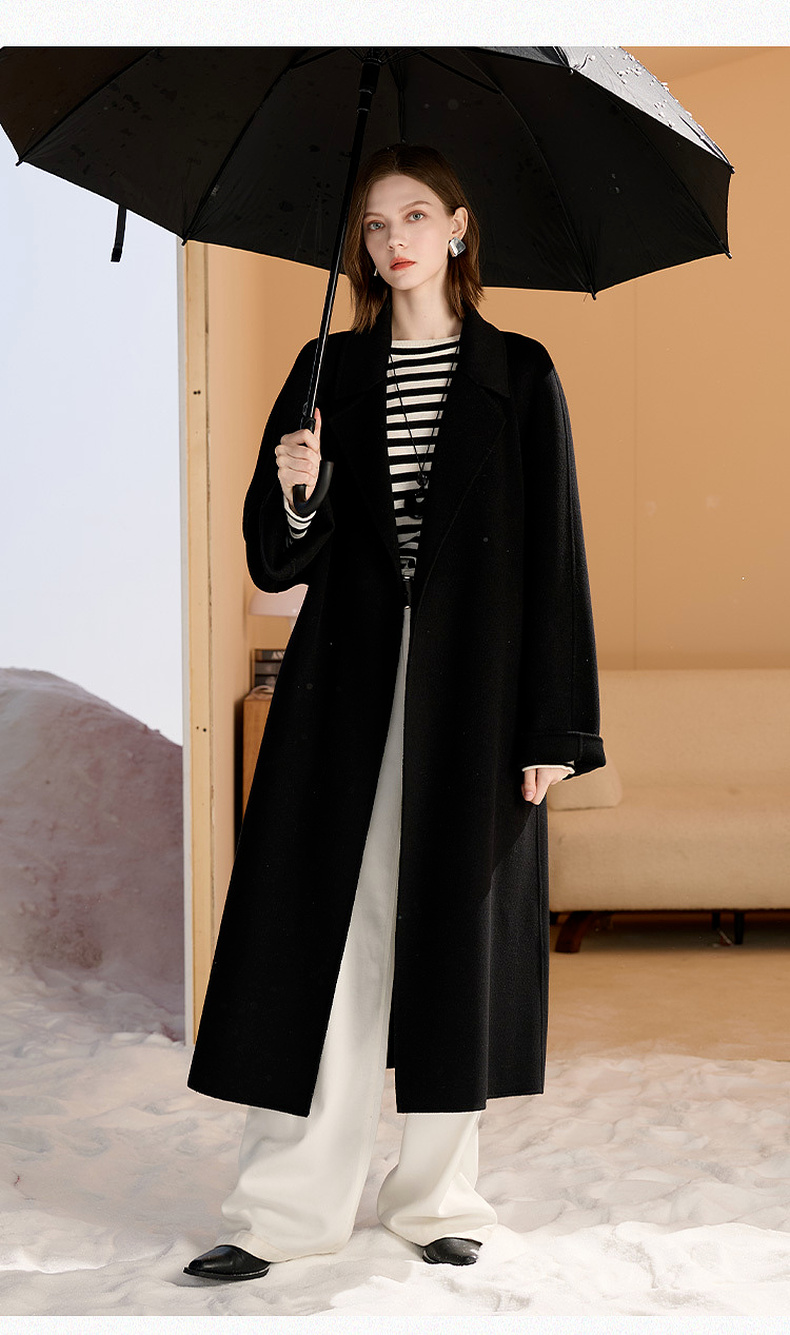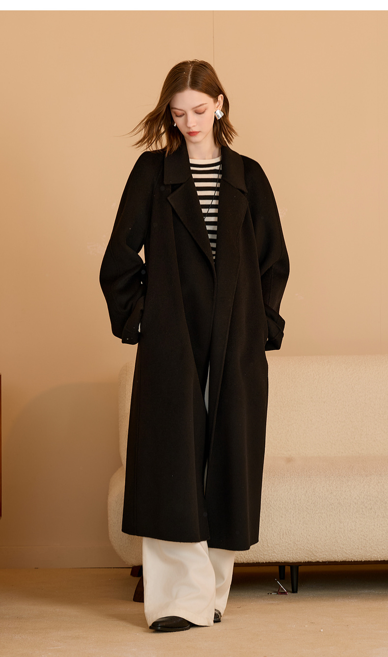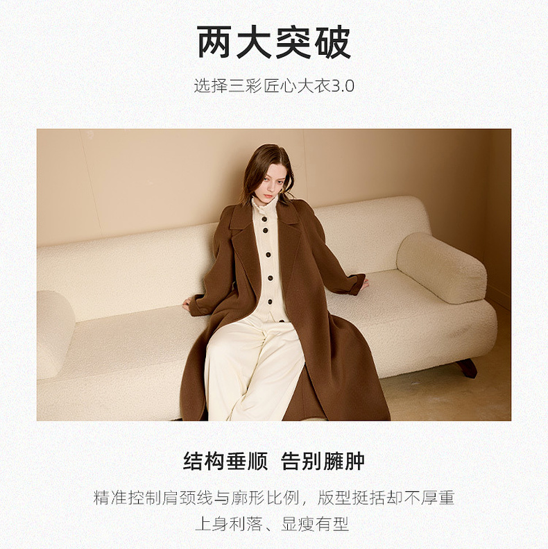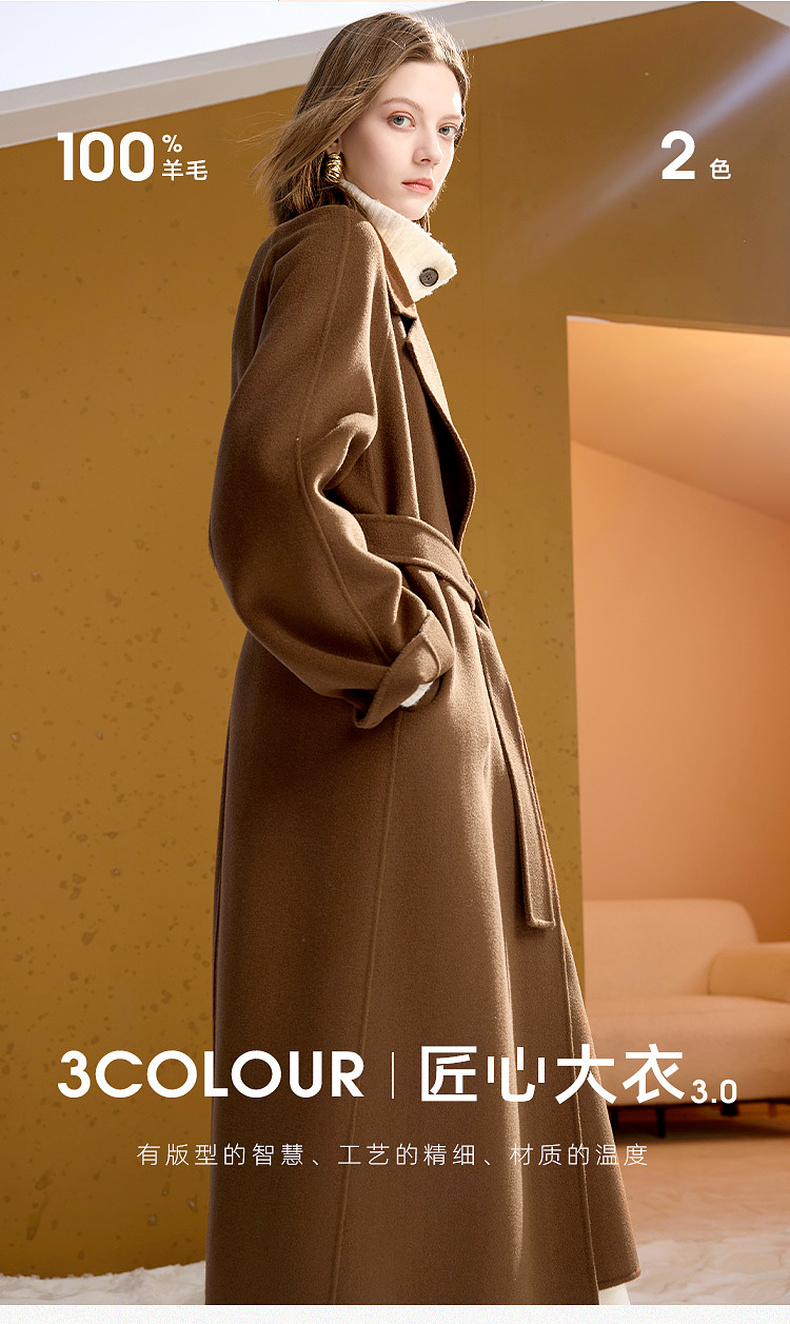 【100绵羊毛】三彩匠心大衣2025冬季新款长款双面呢大衣翻领宽松M