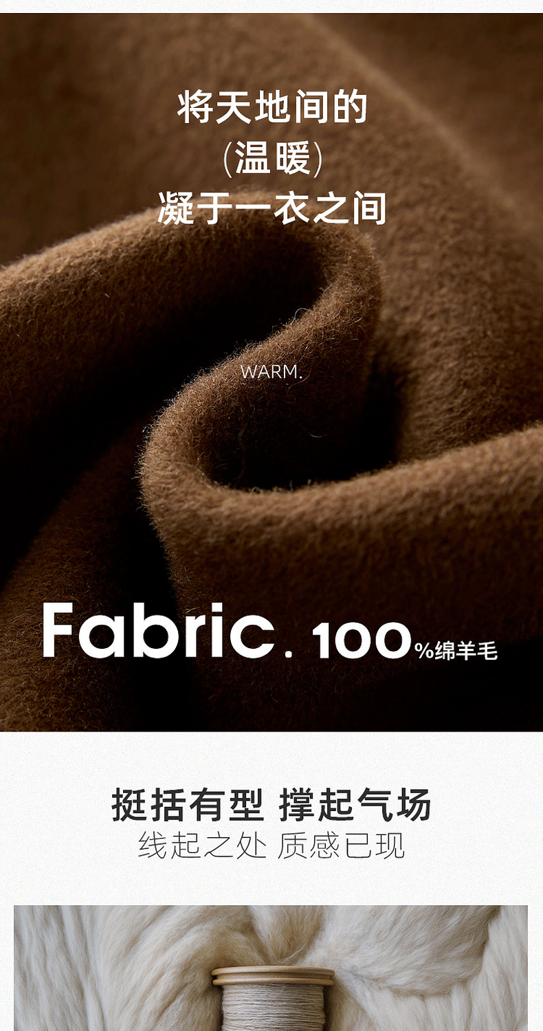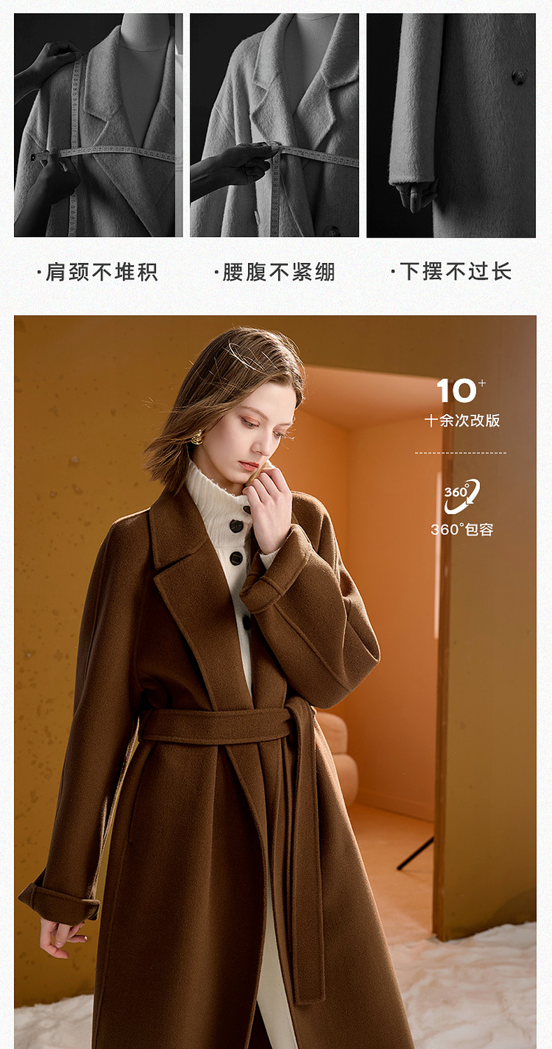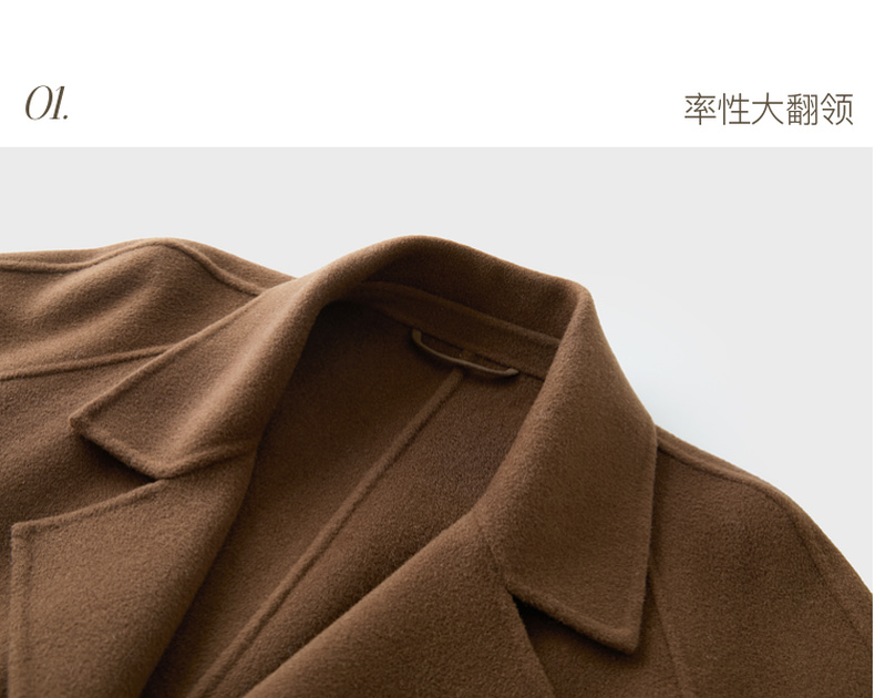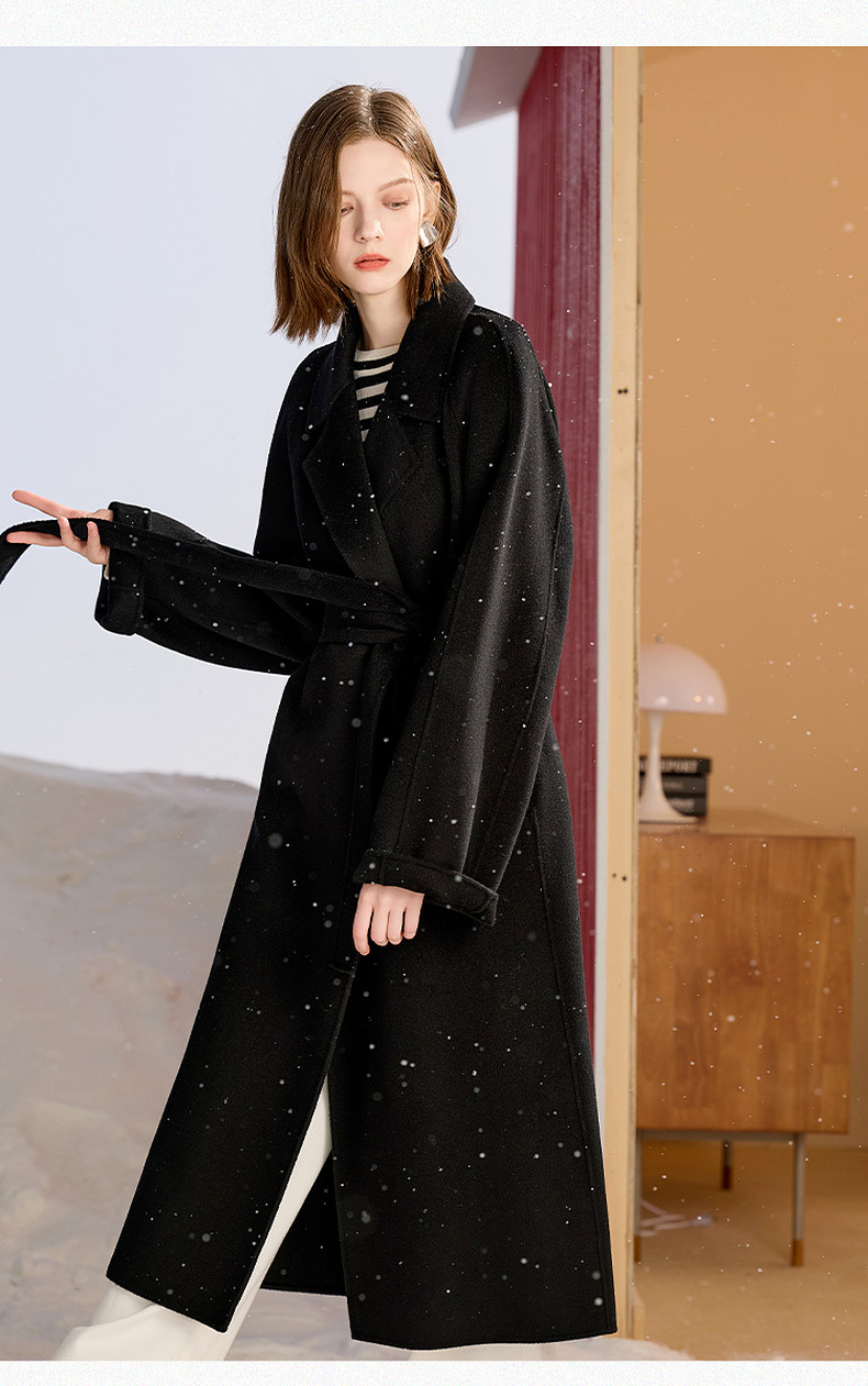【100绵羊毛】三彩匠心大衣2025冬季新款长款双面呢大衣翻领宽松M