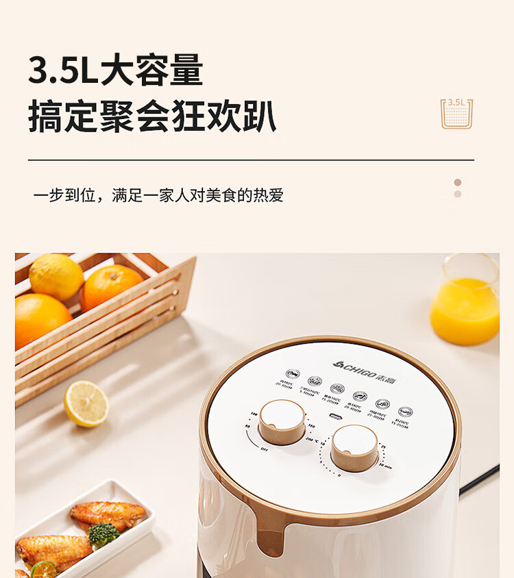 志高(CHIGO) 空气炸锅大容量家用多功能无油易清洗定时 大功率 SZY-ZG-6602