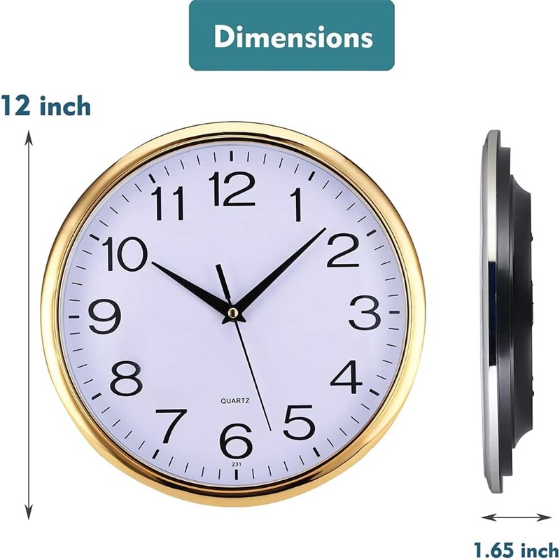 12英寸基础表盘石英挂钟,无滴答声,静音扫动秒针,确保良好的睡眠和工作环境。