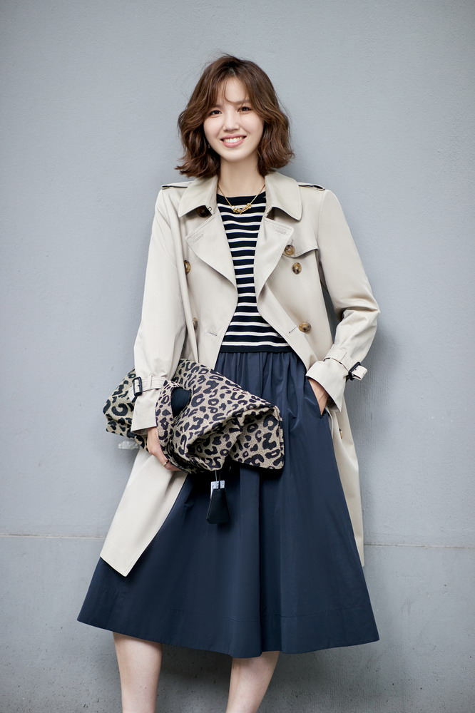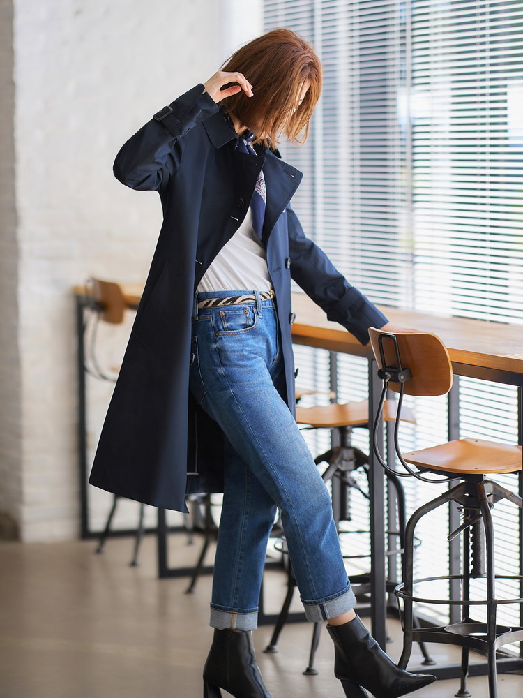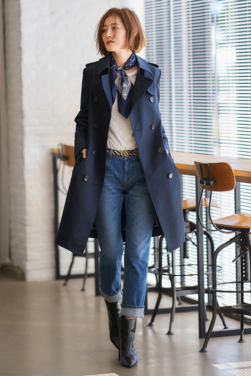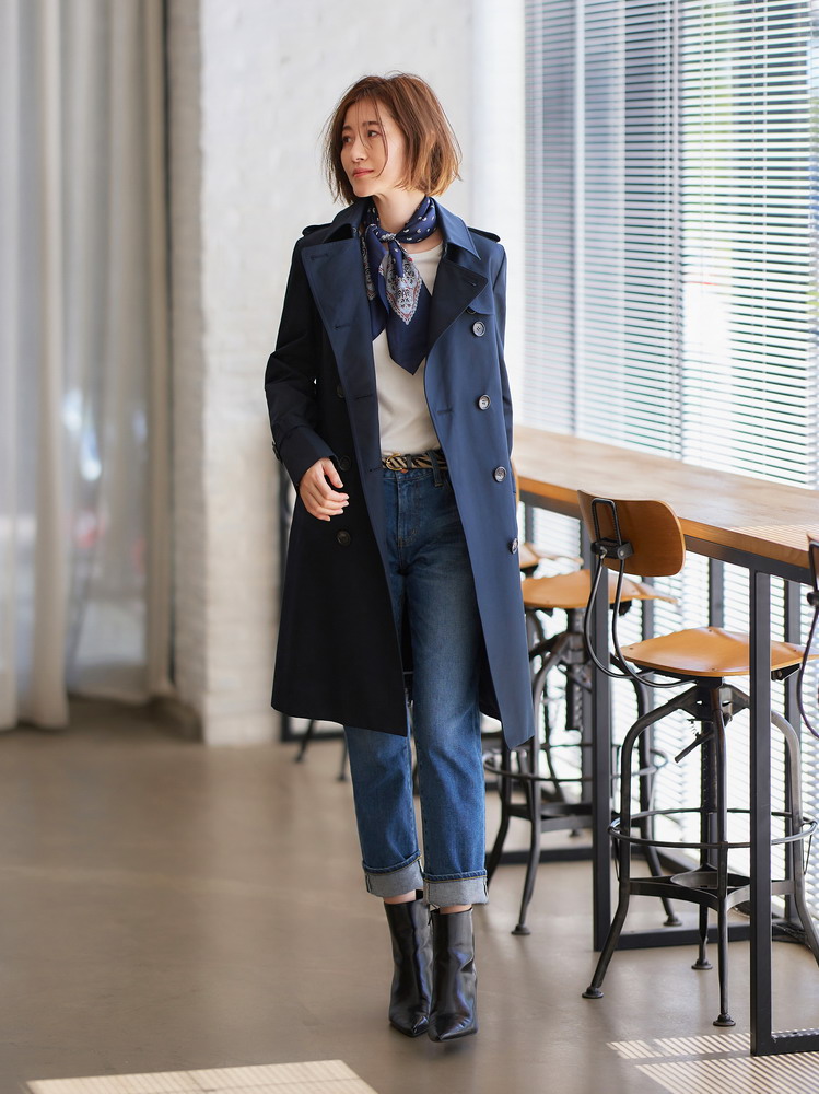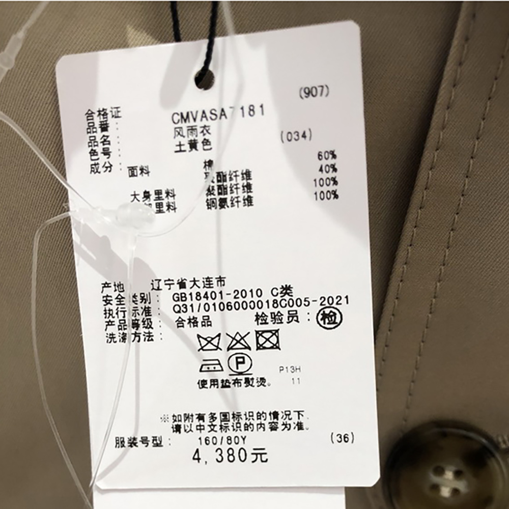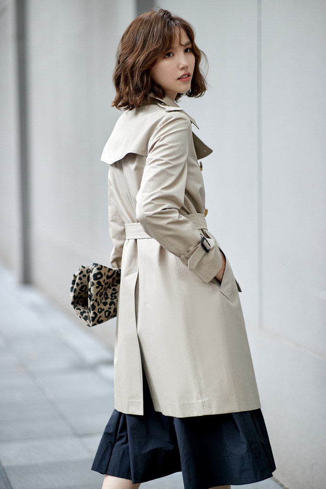 23区日系春季通勤直筒棉混纺双排扣中长款风衣腰带长外套商场同款