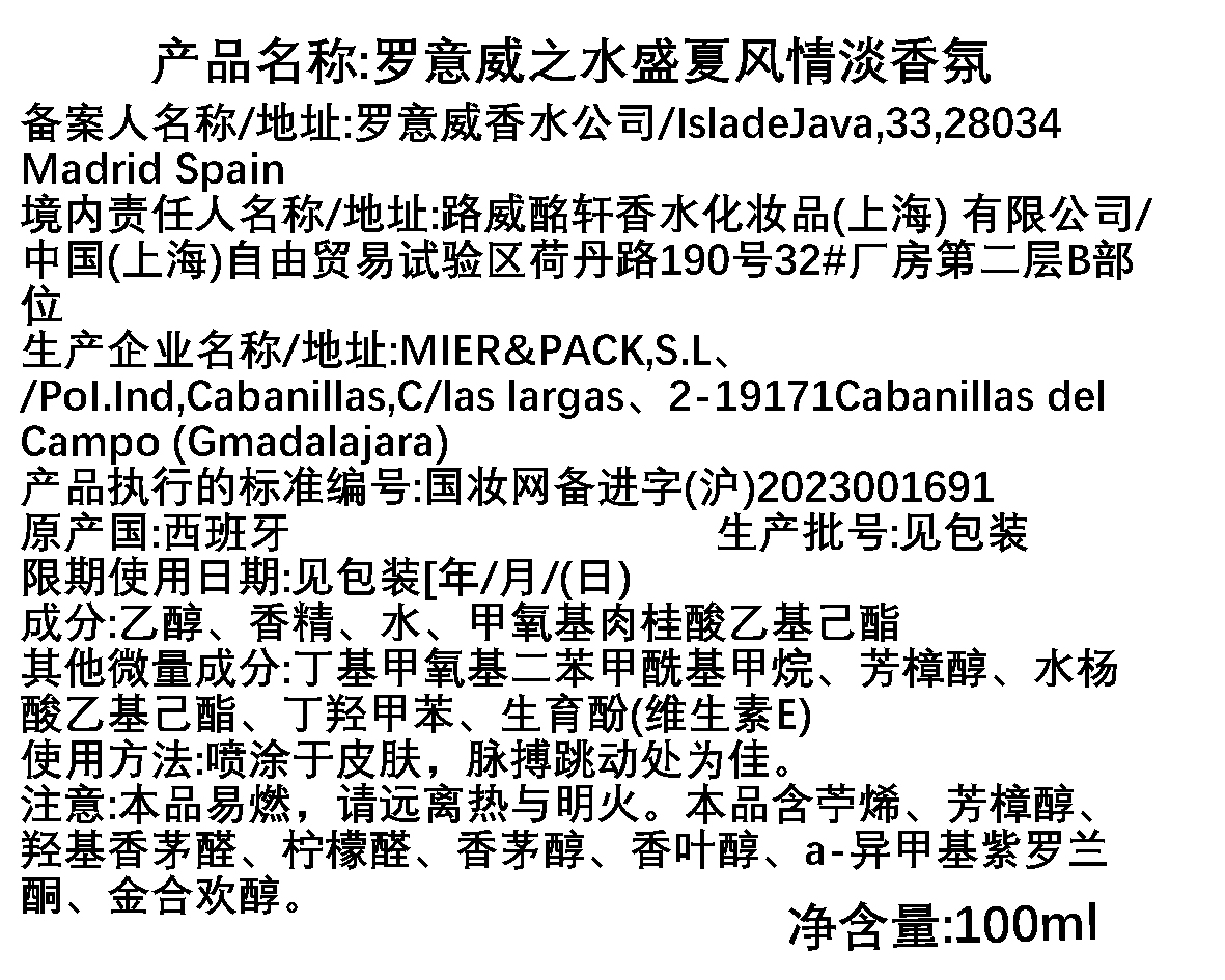 LOEWE罗意威 罗意威之水盛夏风情香水