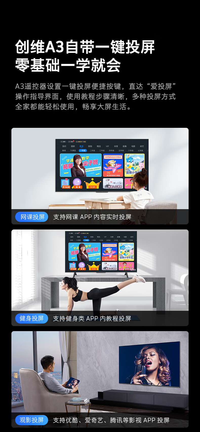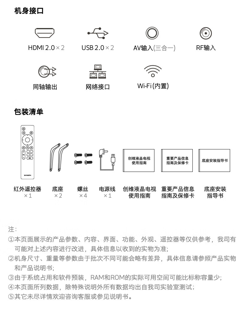 创维电视75A3 75英寸 4K超高清护眼超薄全面屏 2+16G声控杜比电视机 MEMC 游戏智能平板电视机以旧换新