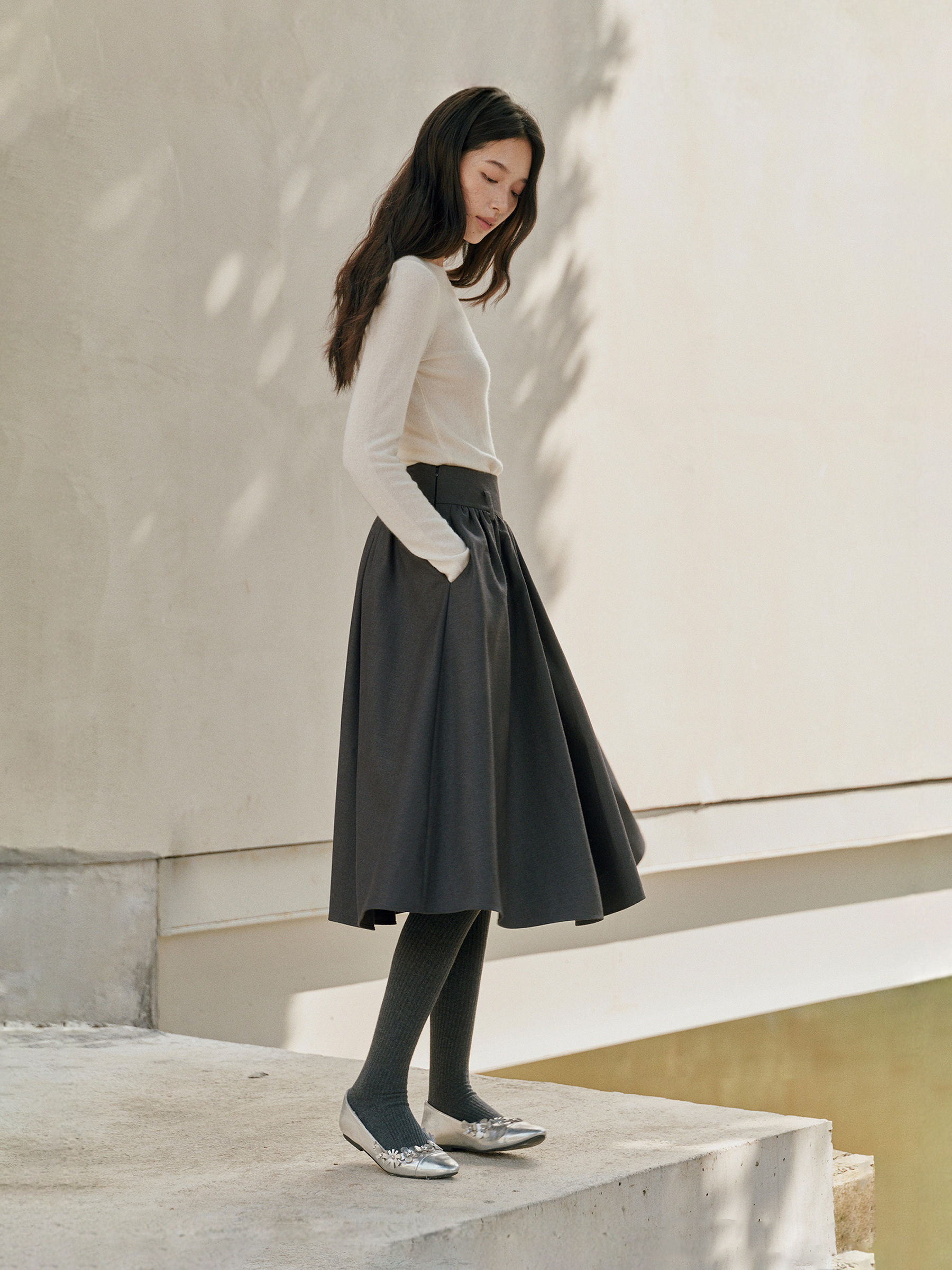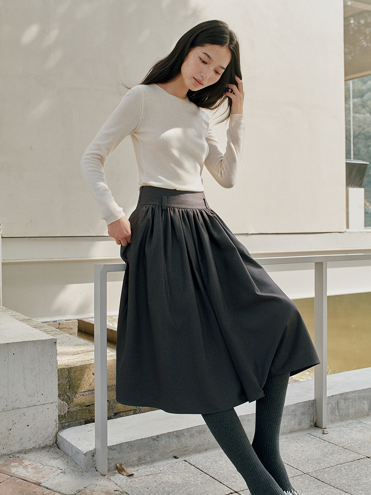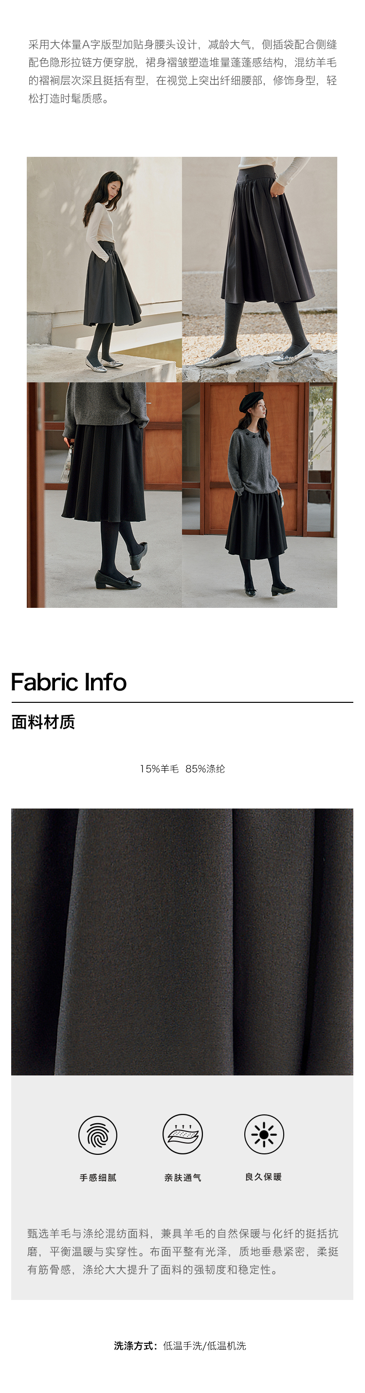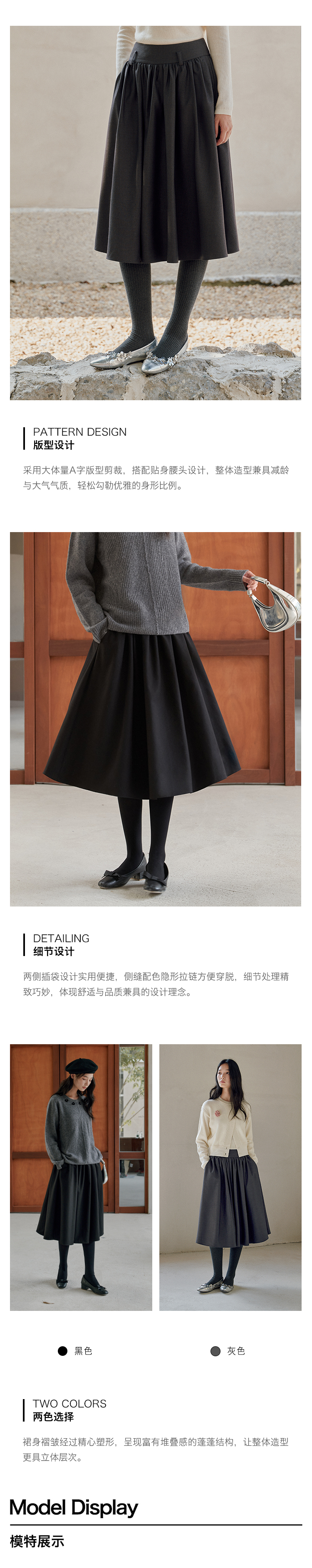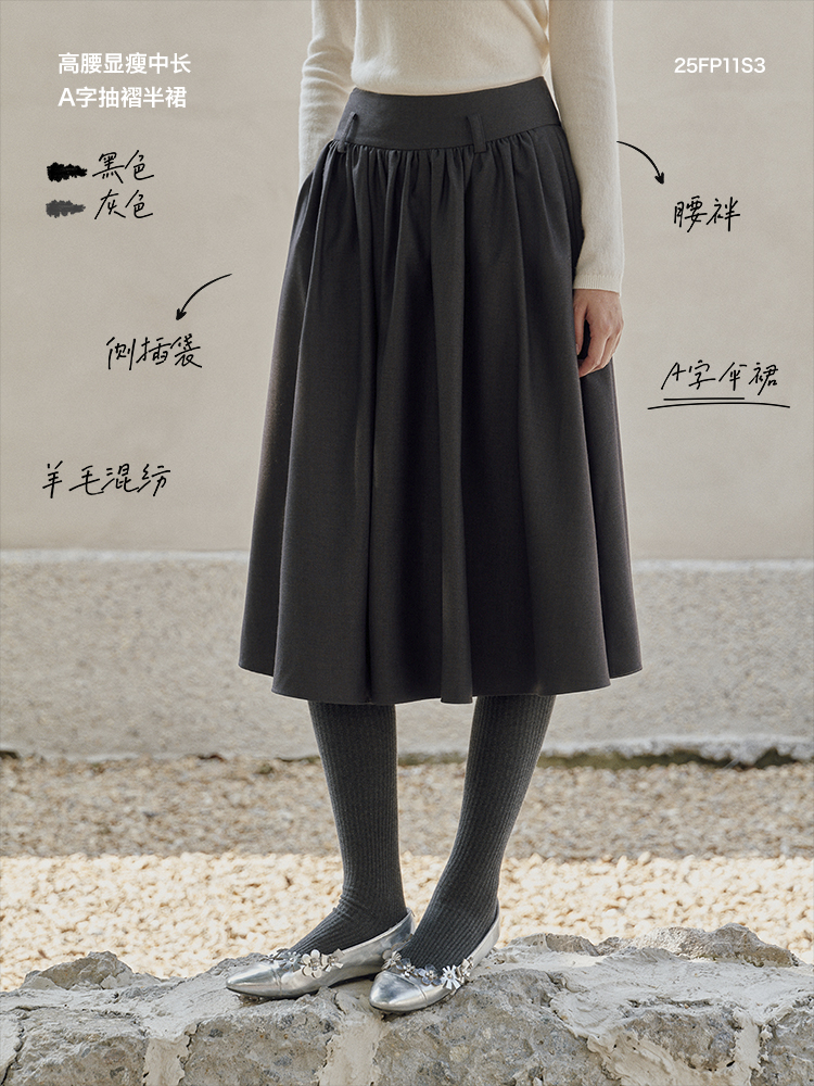 ForPoem 25/FW 原创设计羊毛混纺中高腰显瘦中长A字抽褶百褶半身裙