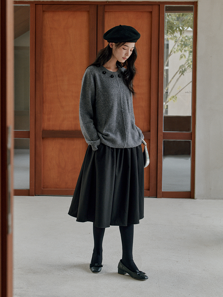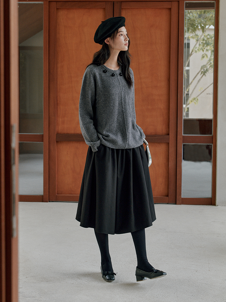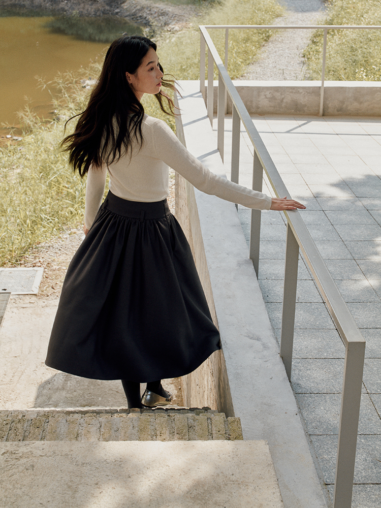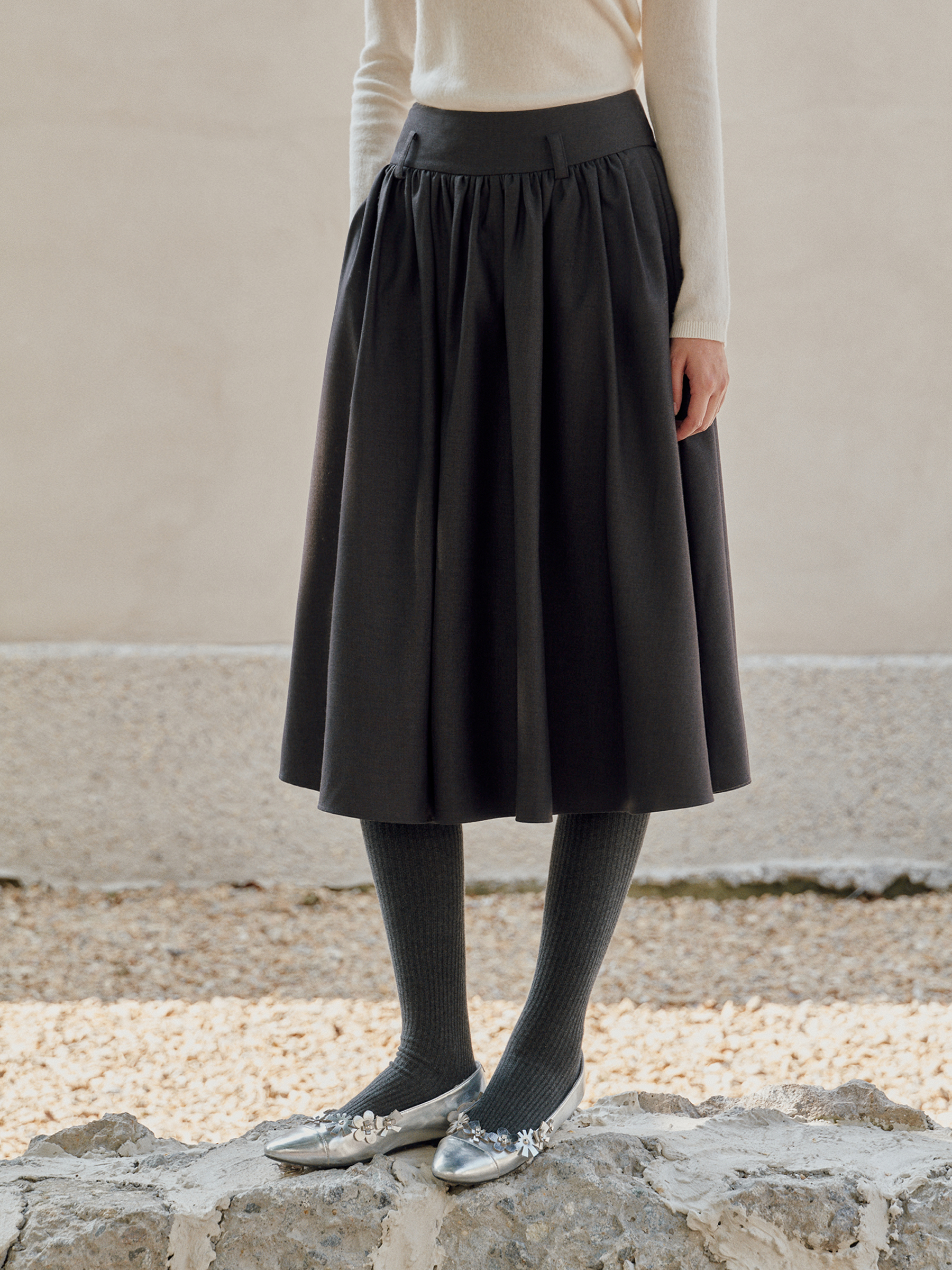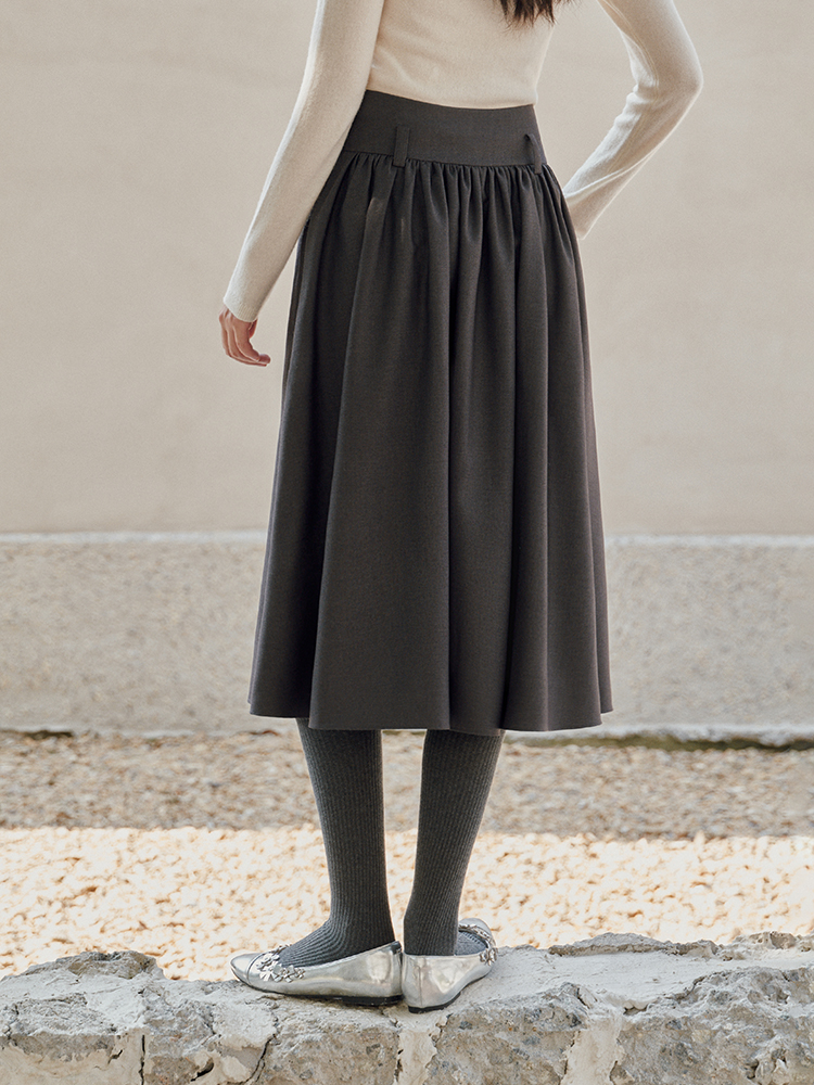 ForPoem 25/FW 原创设计羊毛混纺中高腰显瘦中长A字抽褶百褶半身裙