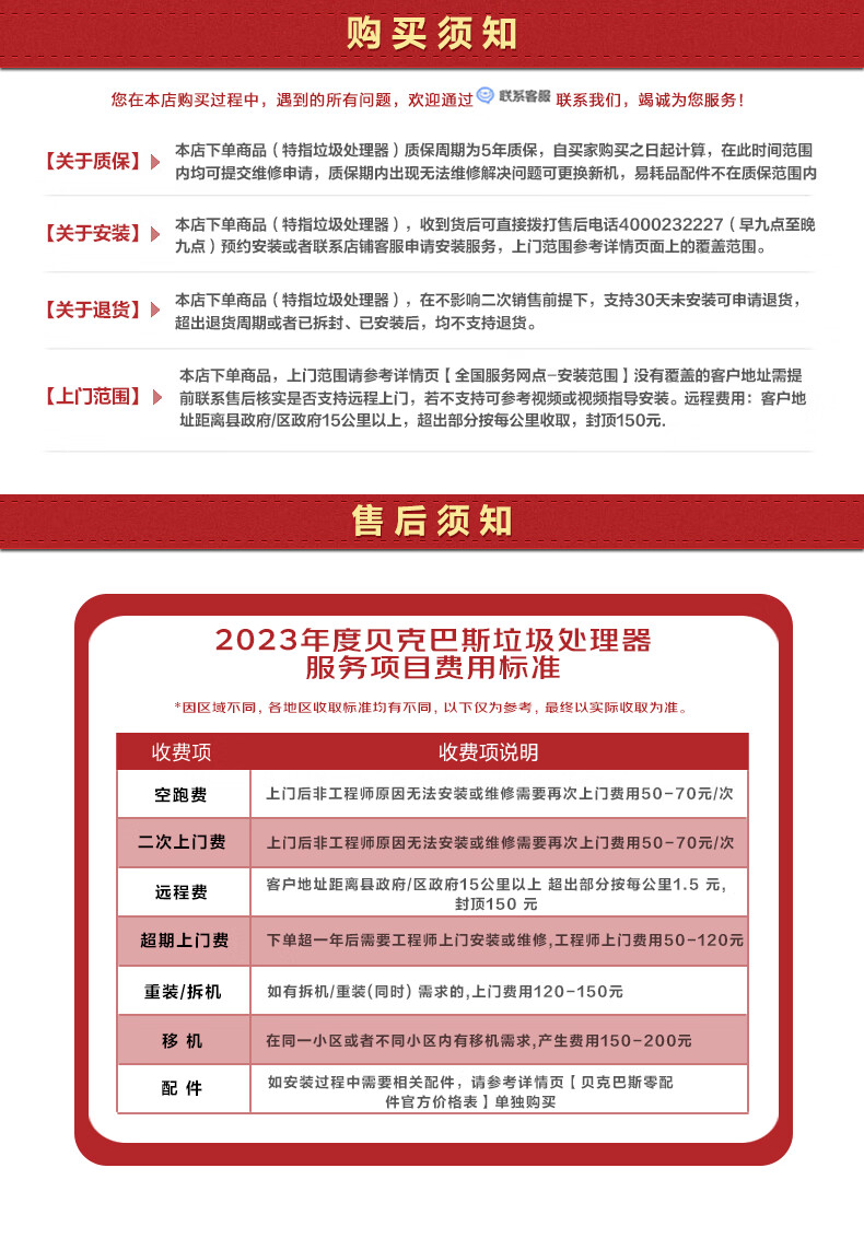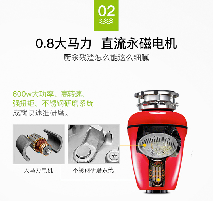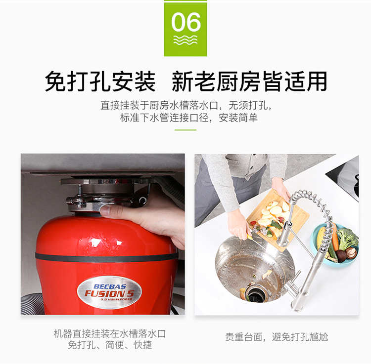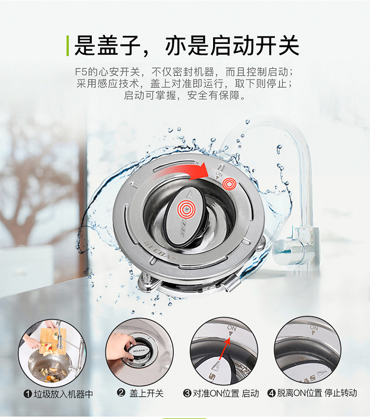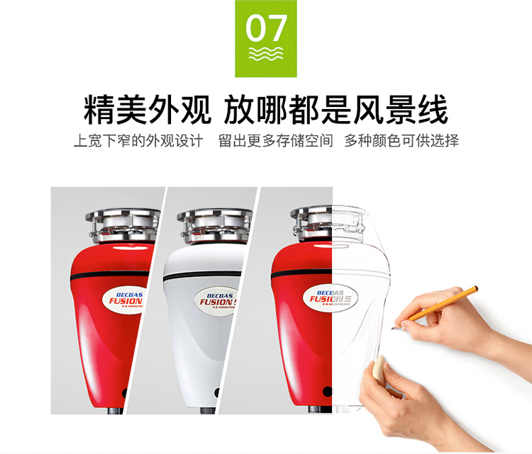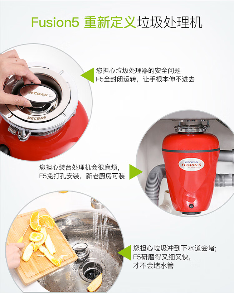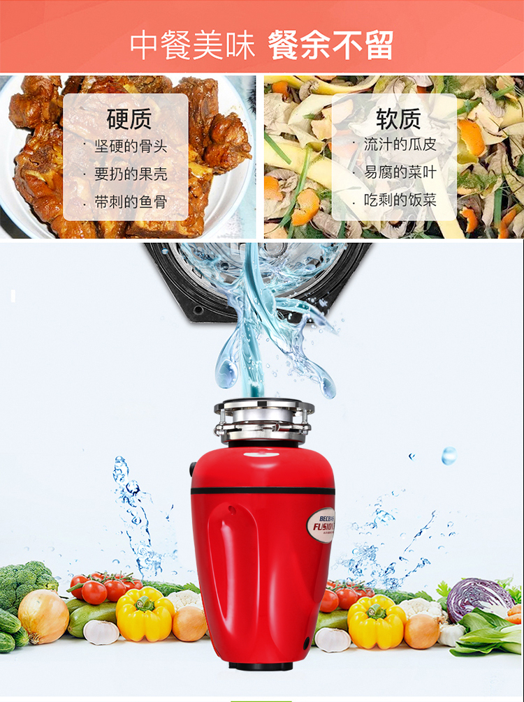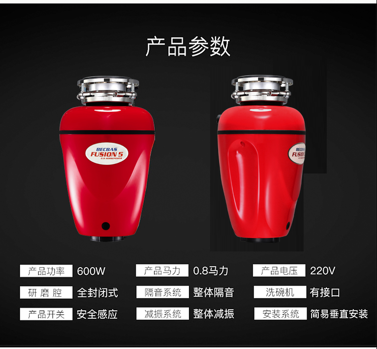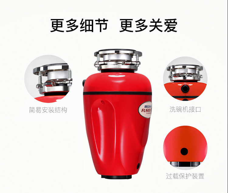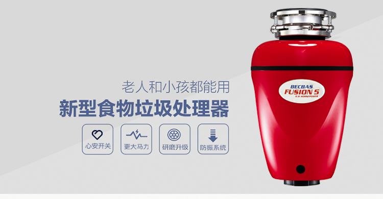 贝克巴斯/垃圾处理器/F5/红色 厨房厨余粉碎机感应开关 定时关机自动反转