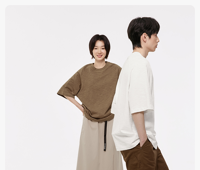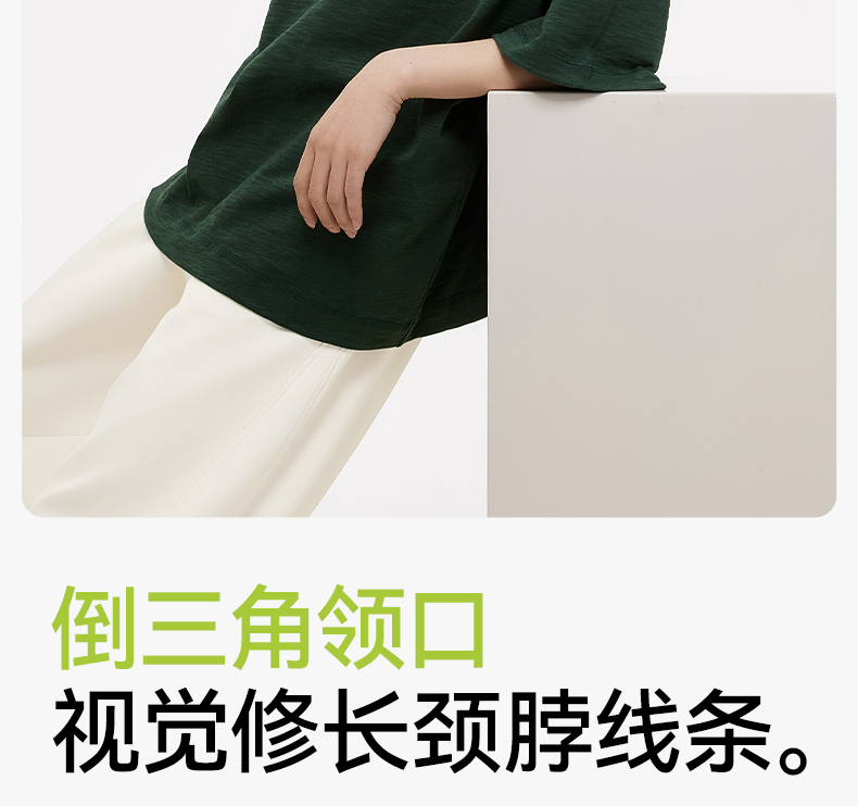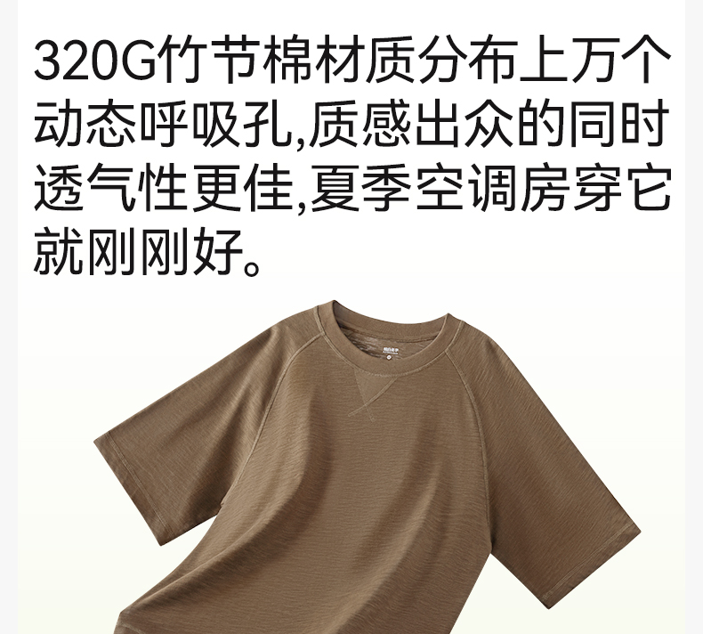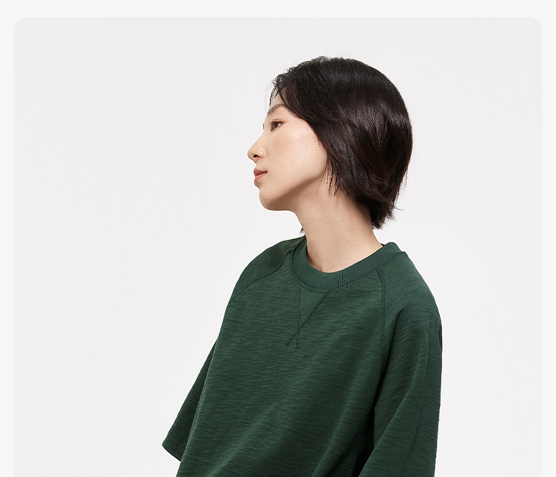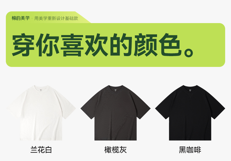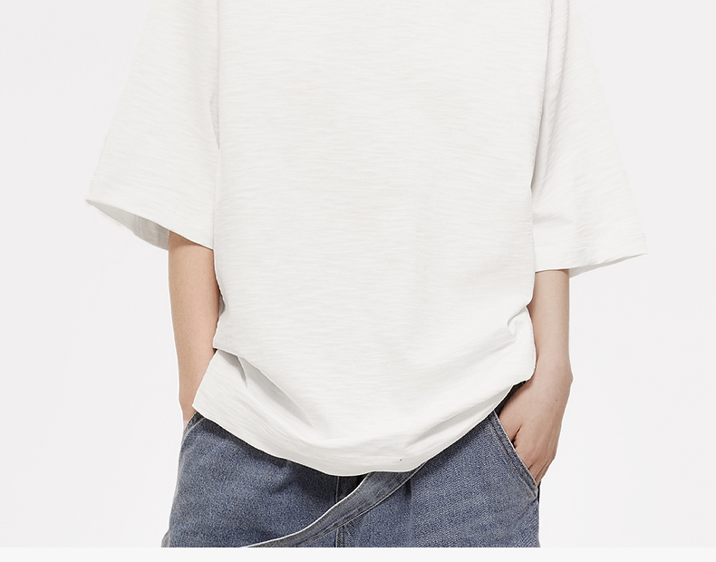 「棉的美学」肌理感竹节棉短袖t恤女纯色简约百搭插肩设计显瘦潮