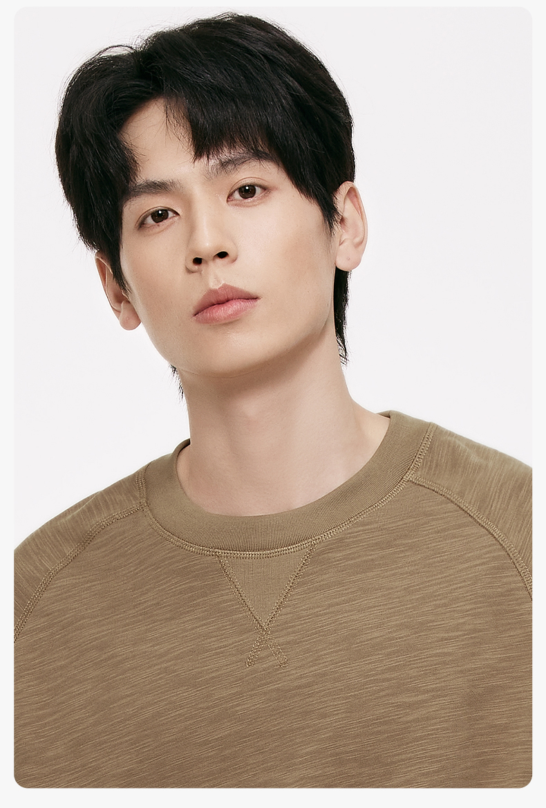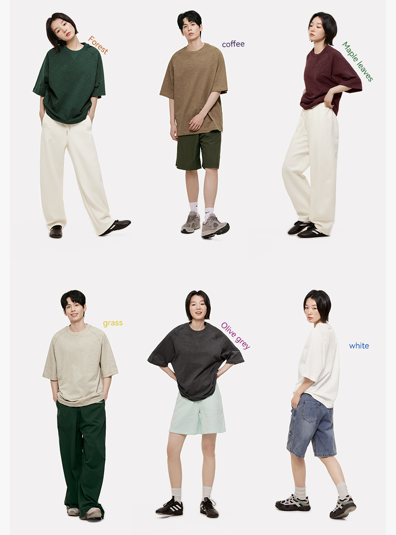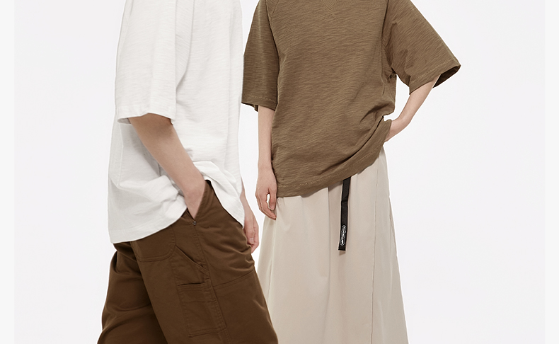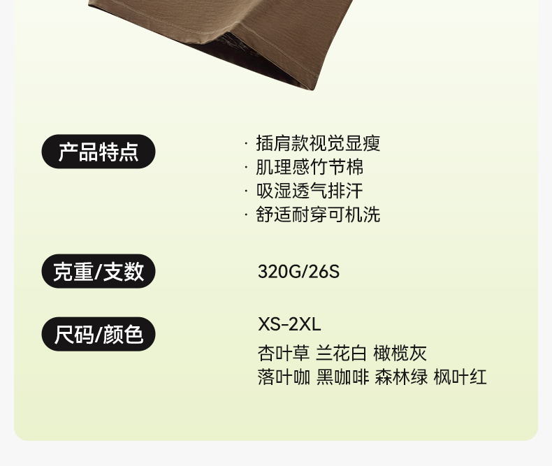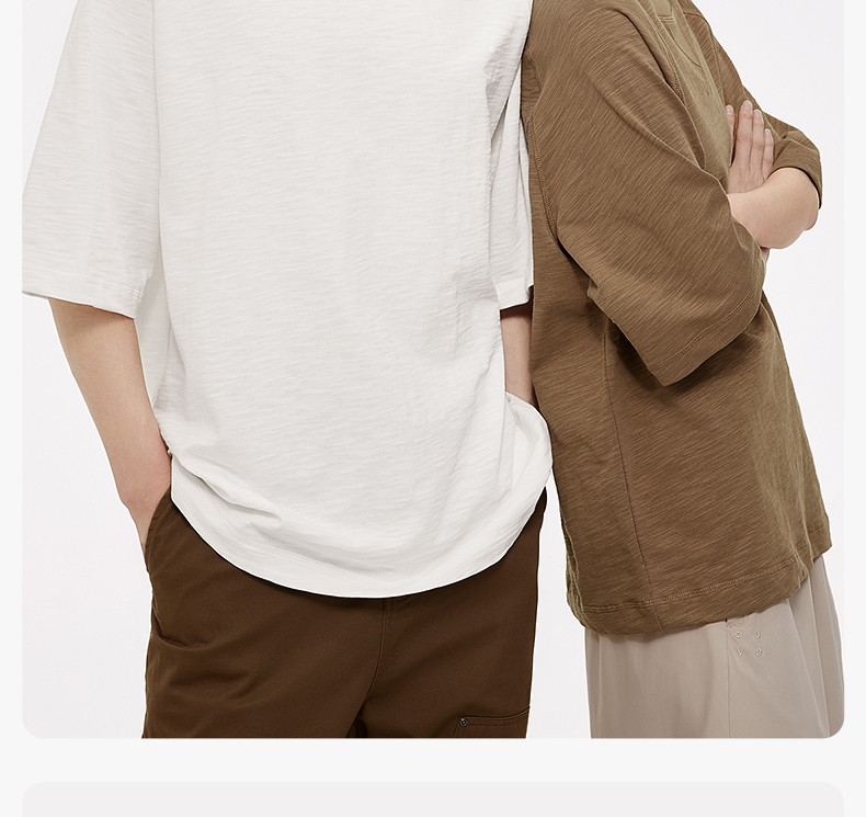 「棉的美学」肌理感竹节棉短袖t恤女纯色简约百搭插肩设计显瘦潮