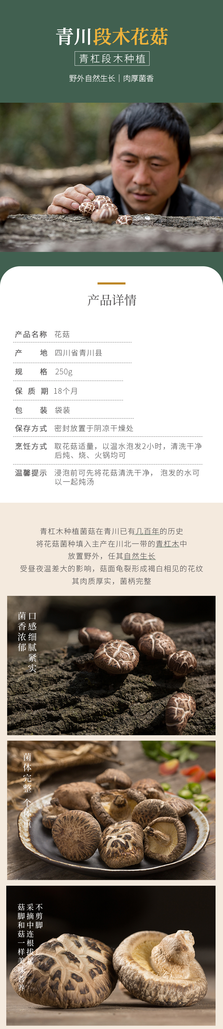 【海伶山珍】段木花菇250g 农家干货肉厚煲汤四川特产