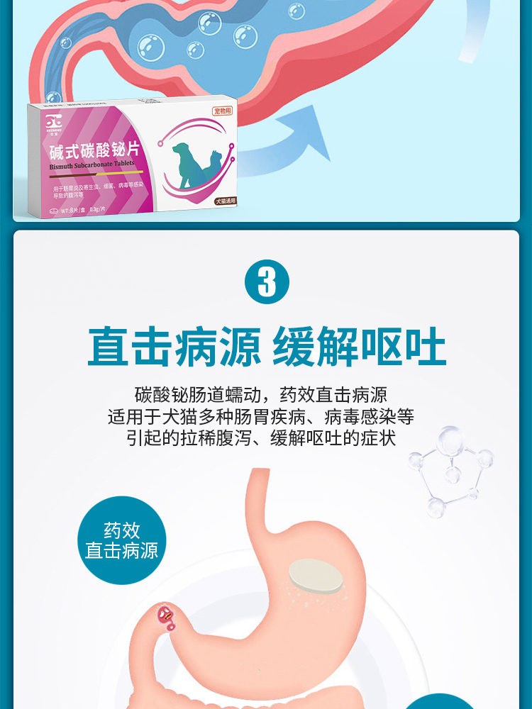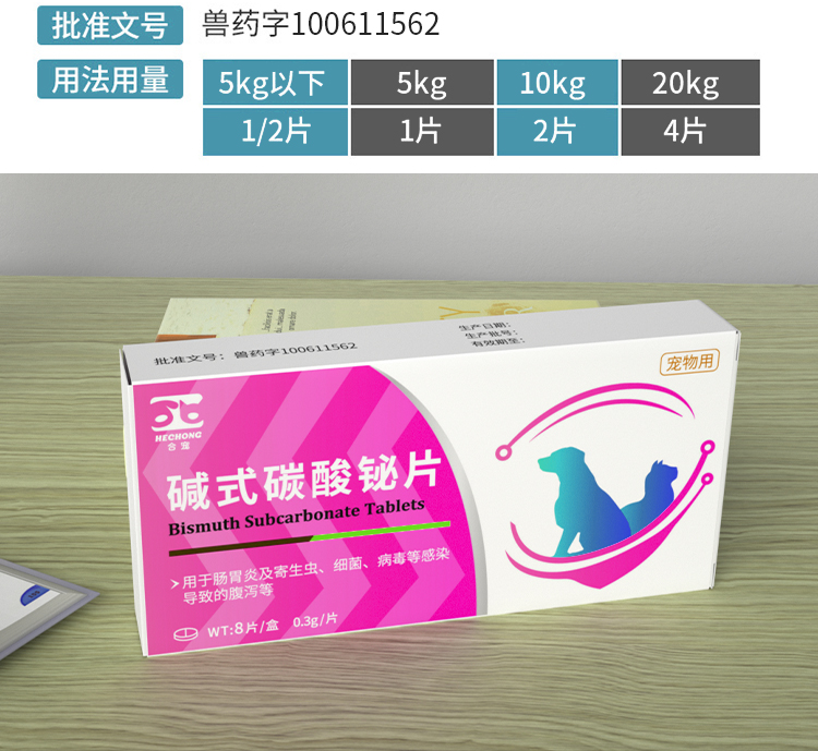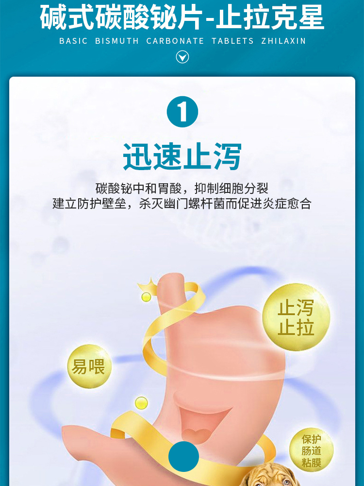合宠碱式碳酸铋片强力止泻片宠物狗狗猫肠胃炎软便腹泻拉稀便血