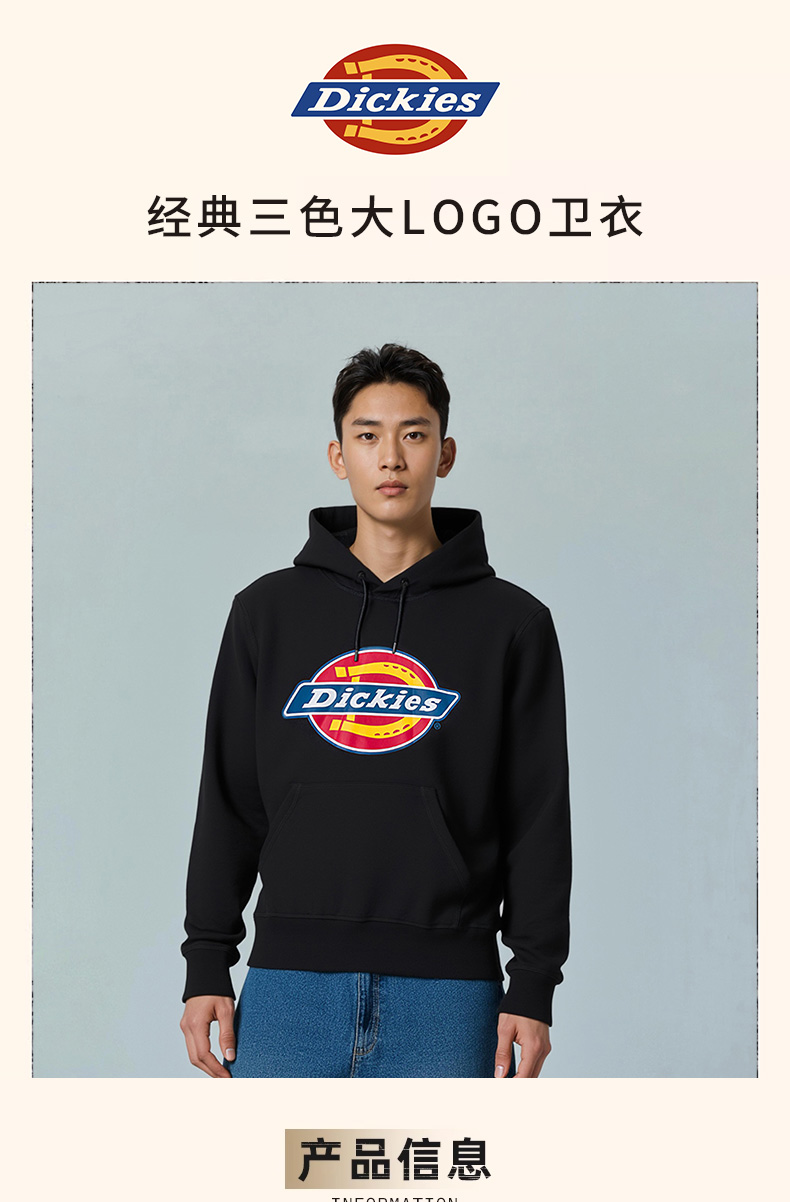 Dickies经典大LOGO卫衣 美式复古宽松连帽上衣卫衣情侣款春秋 DK0A88I5