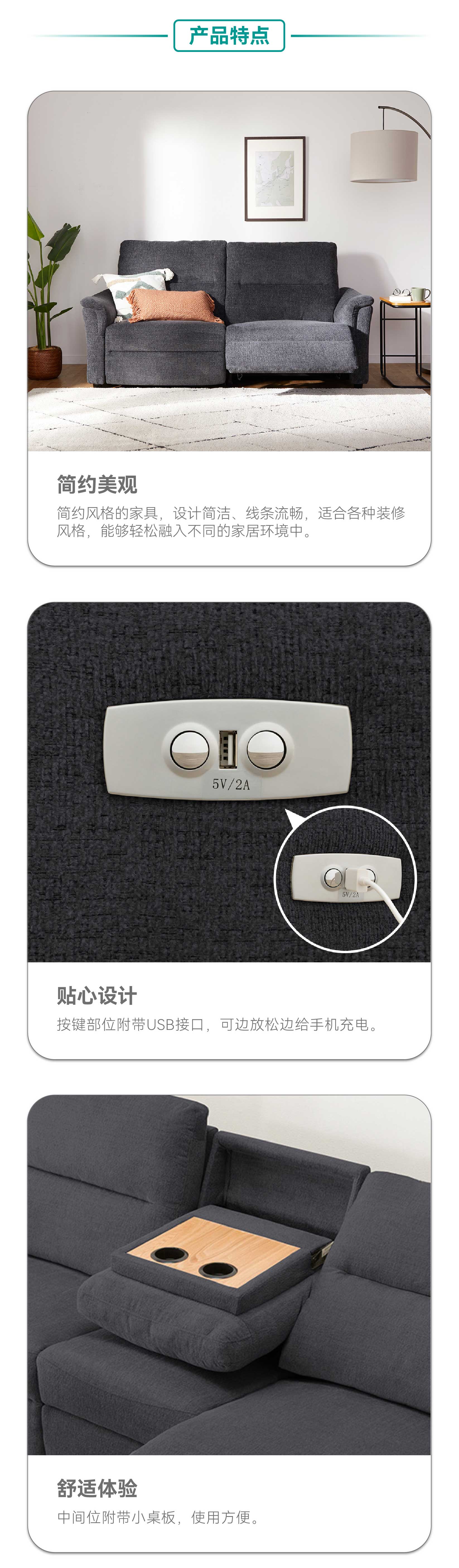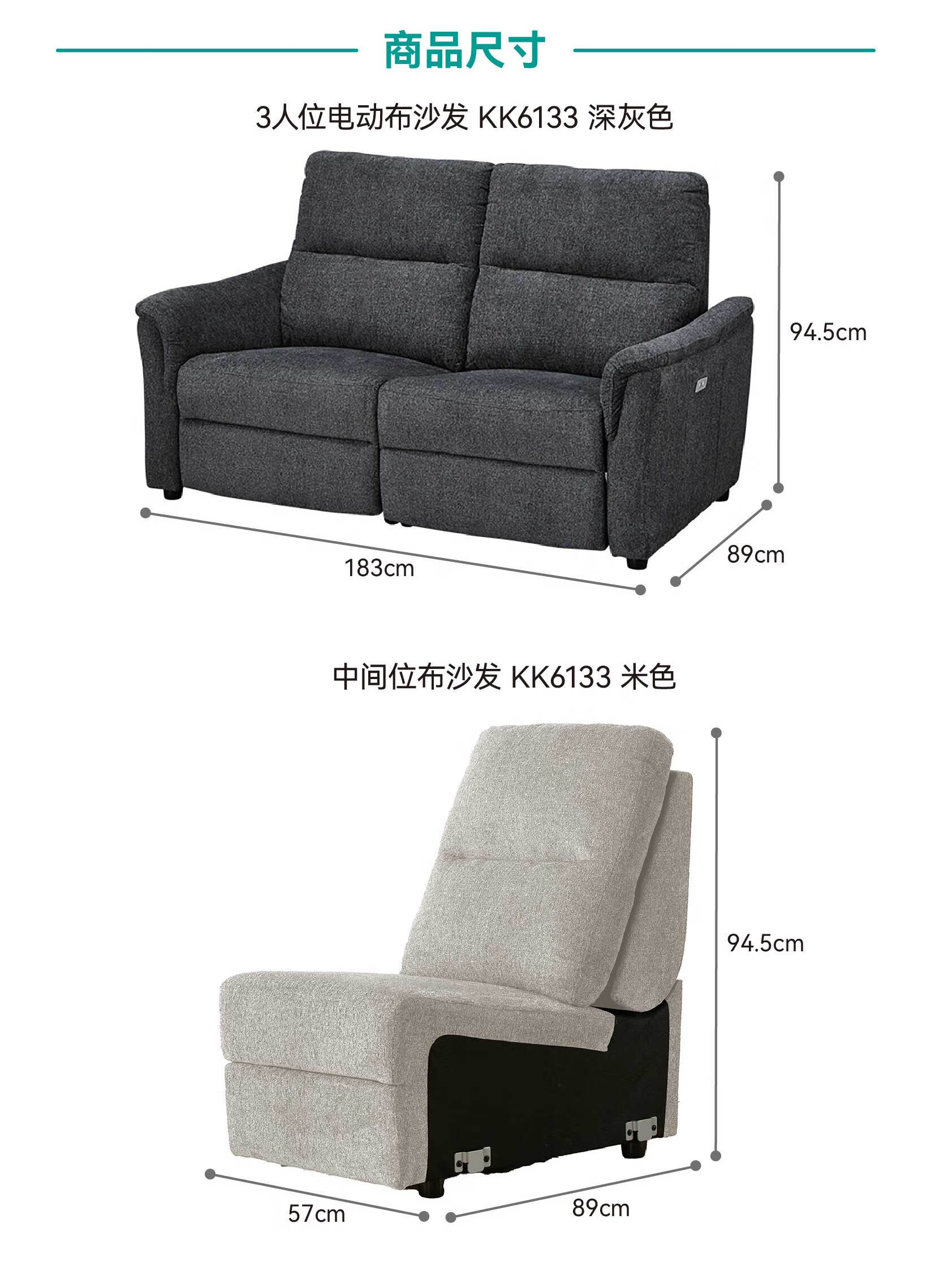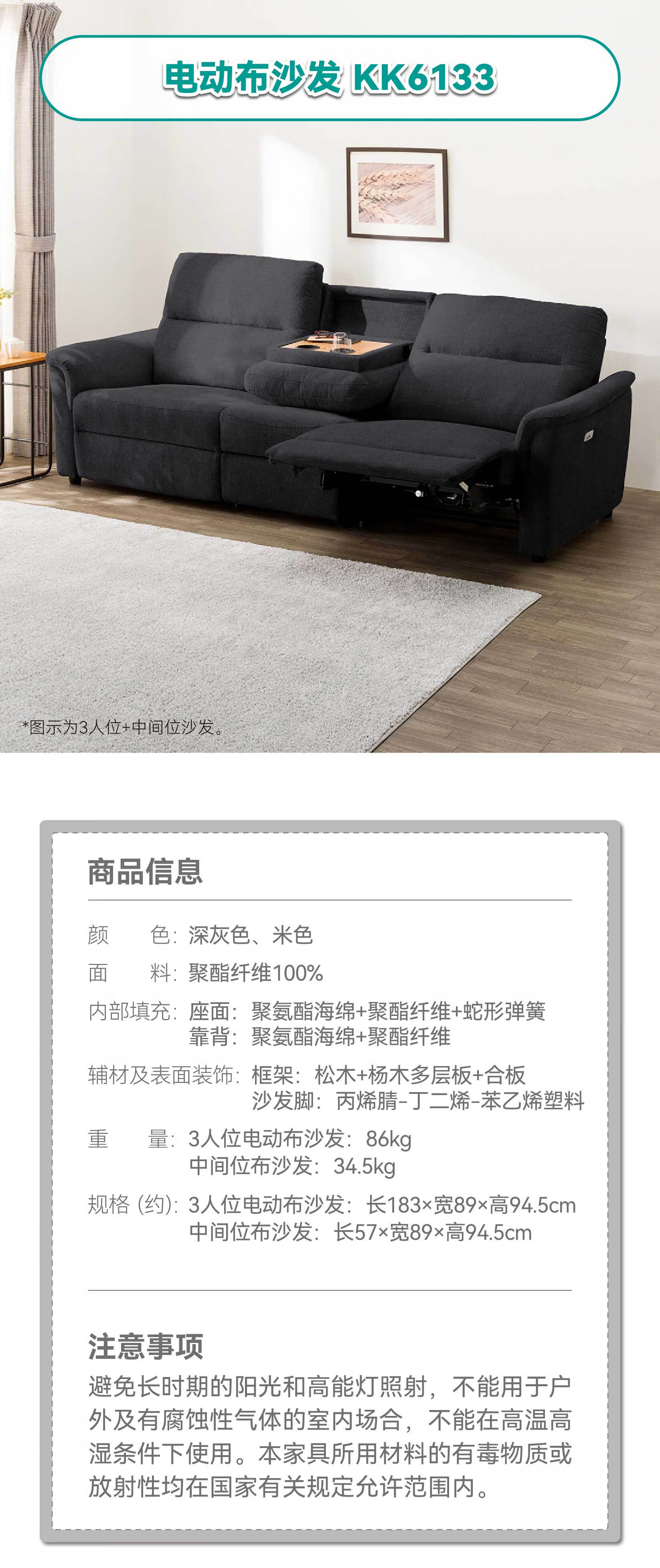 【家具】 现代客厅电动沙发布艺沙发带USB接口 KK6133