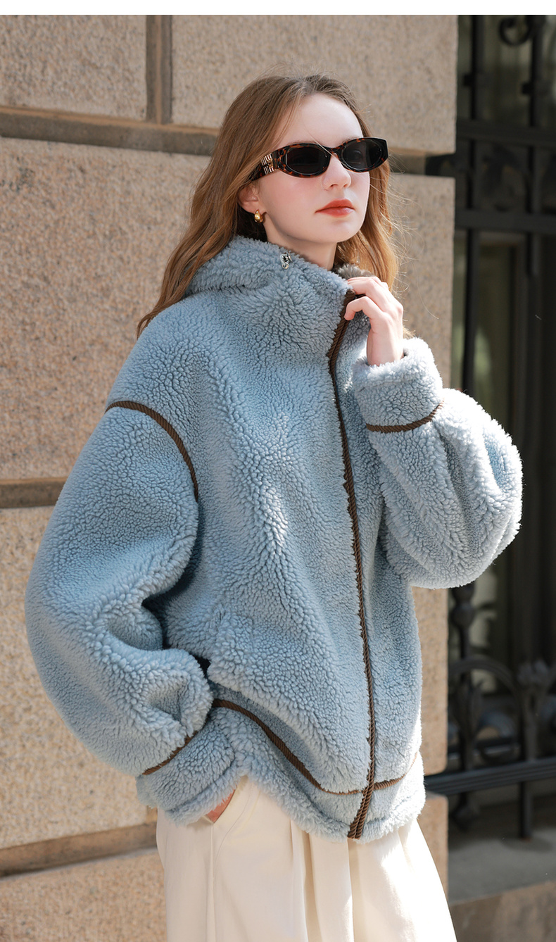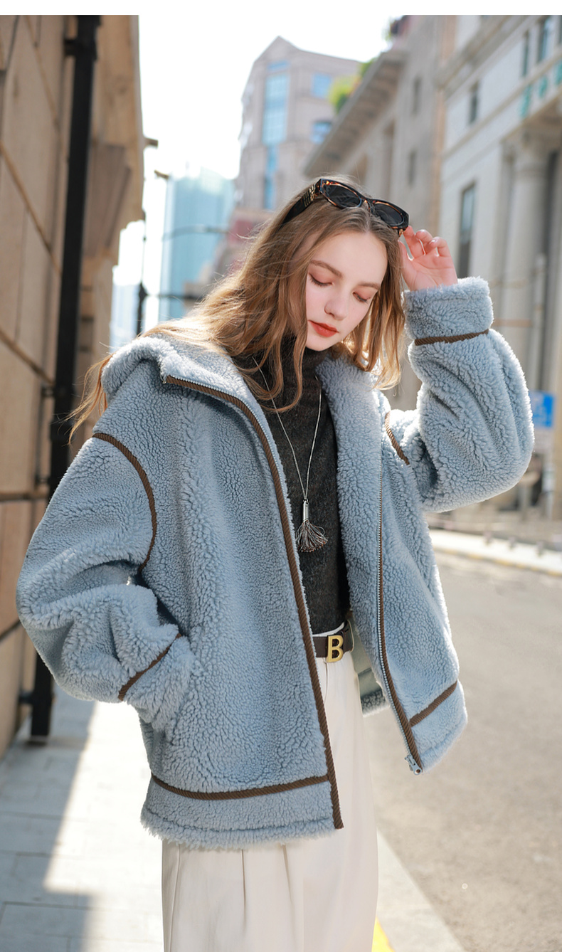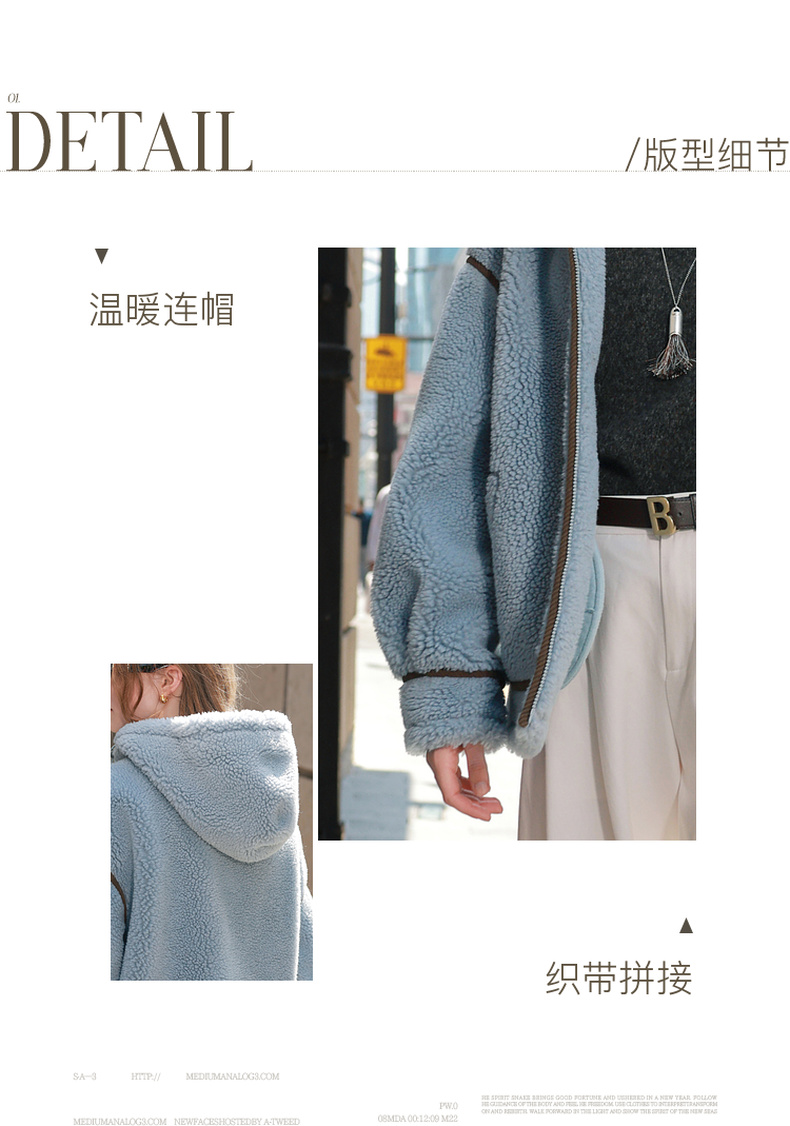 三彩2025冬季新款环保皮草连帽毛毛外套宽松保暖休闲M