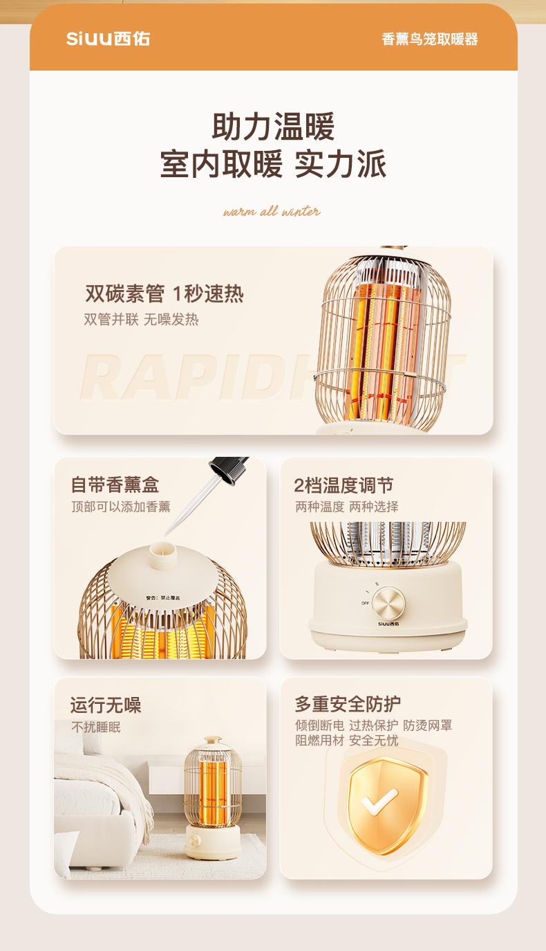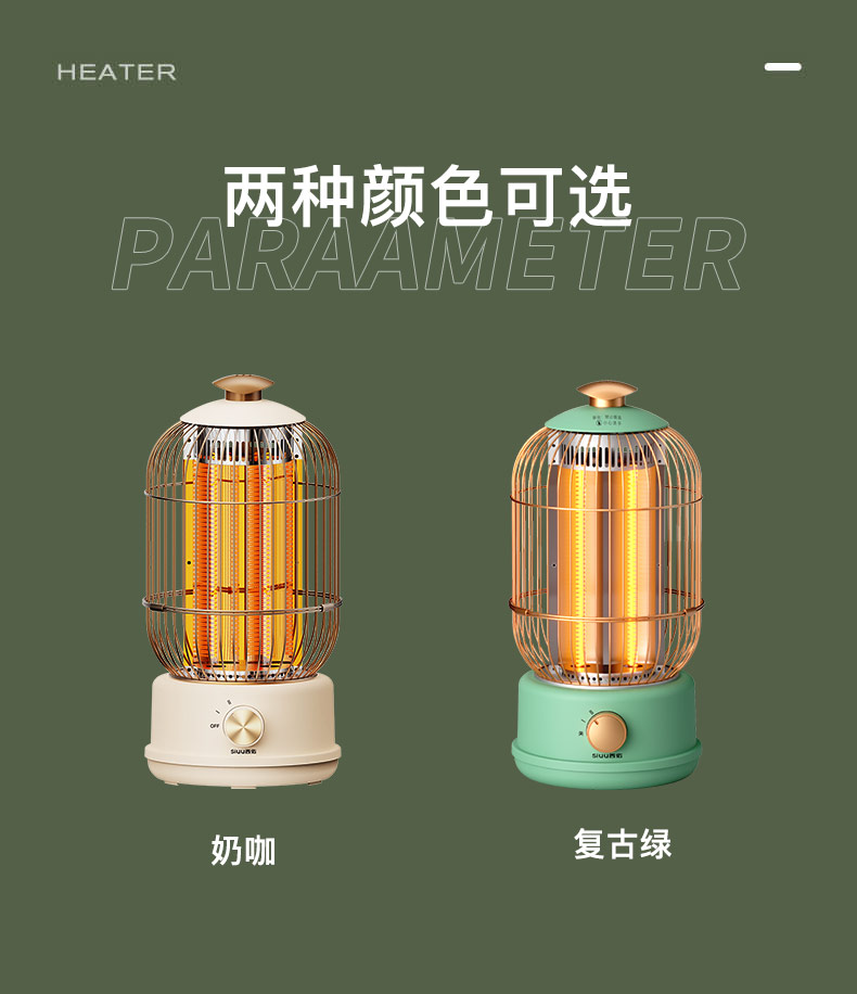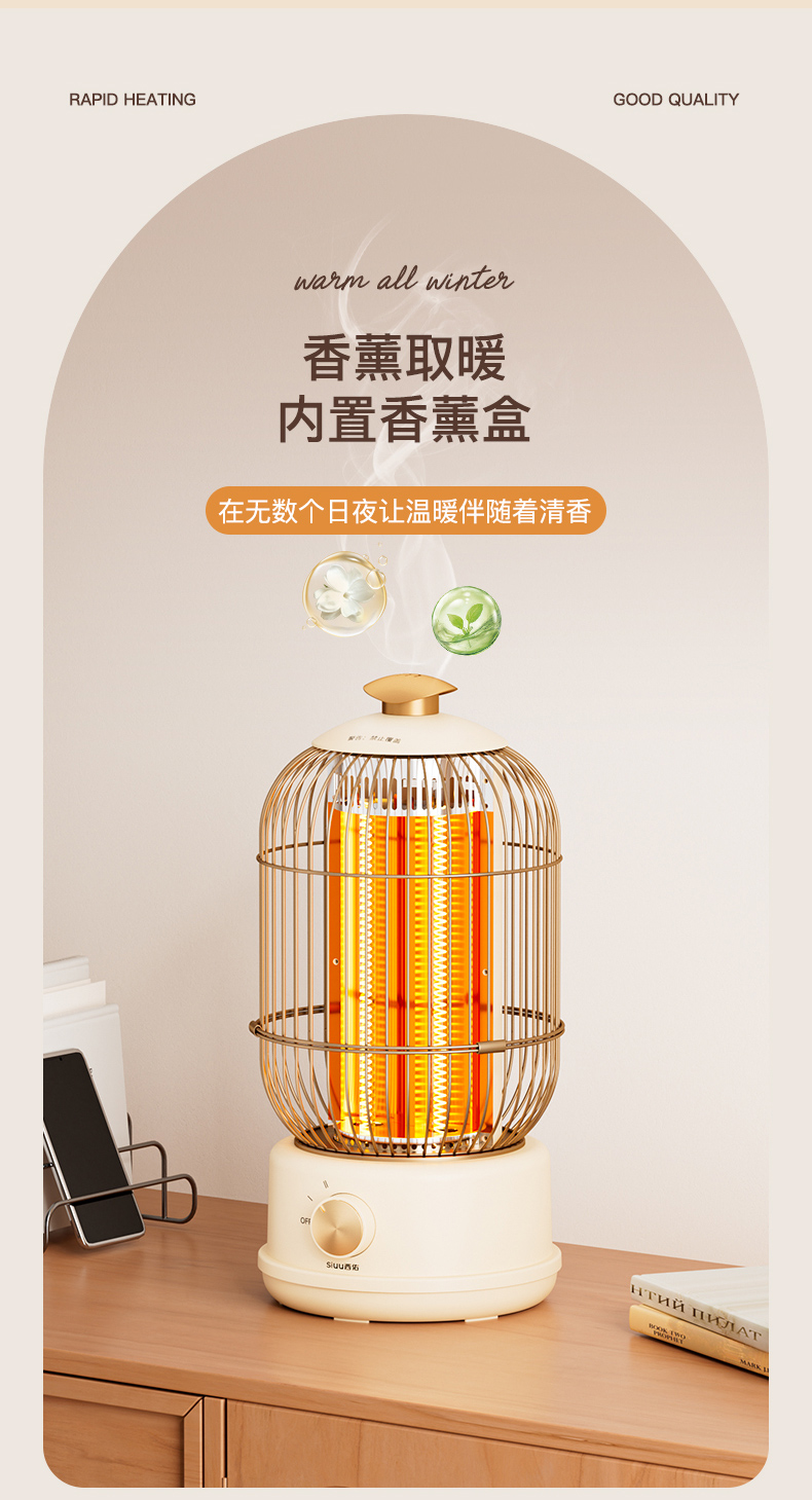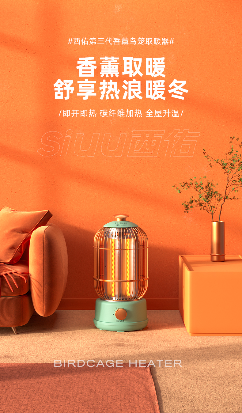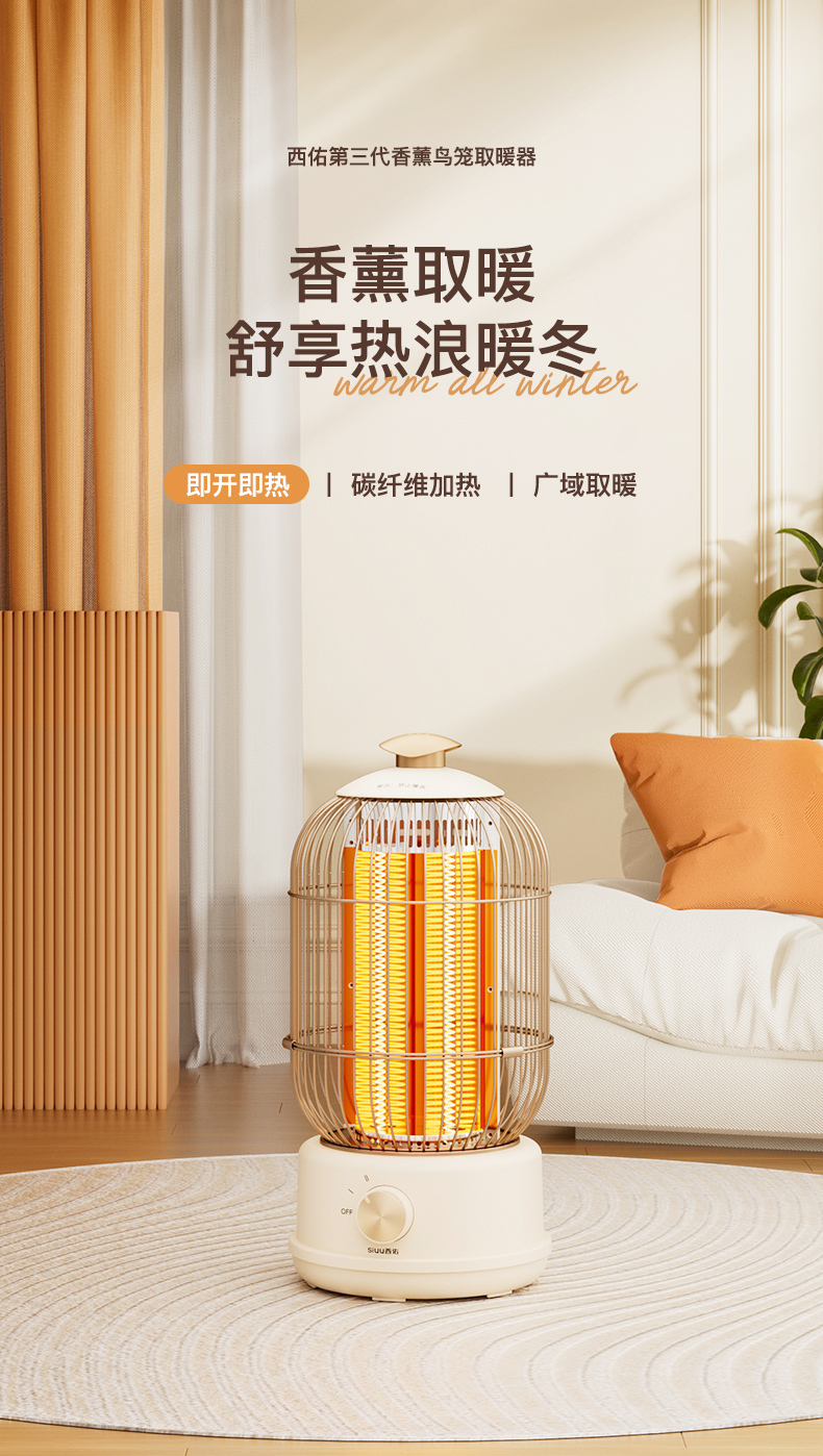 西佑(工厂直发/两色可选)取暖器速热复古鸟笼碳纤维远红外带香薰多档轻音烤火炉
