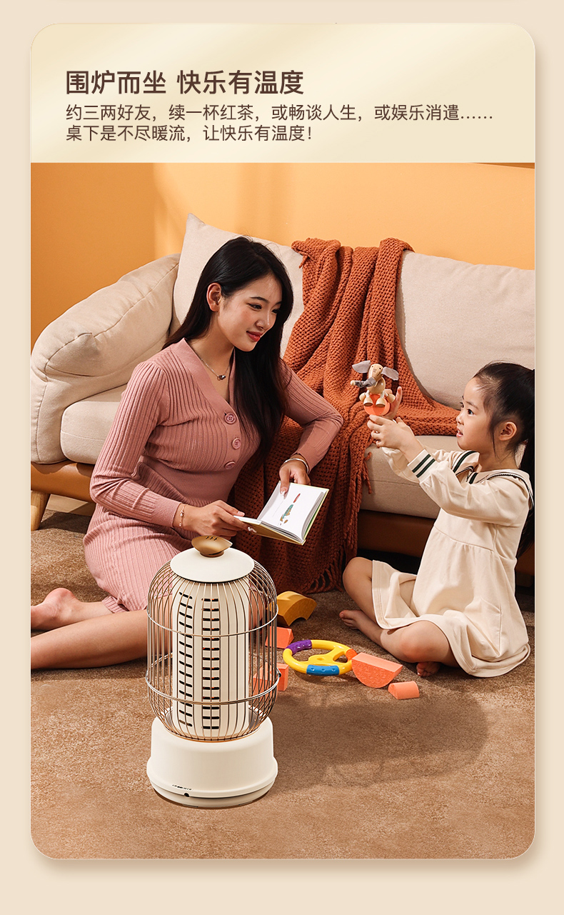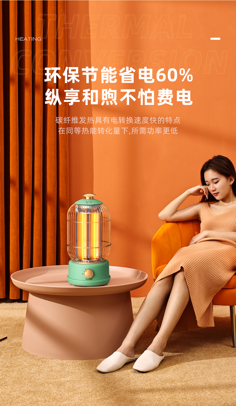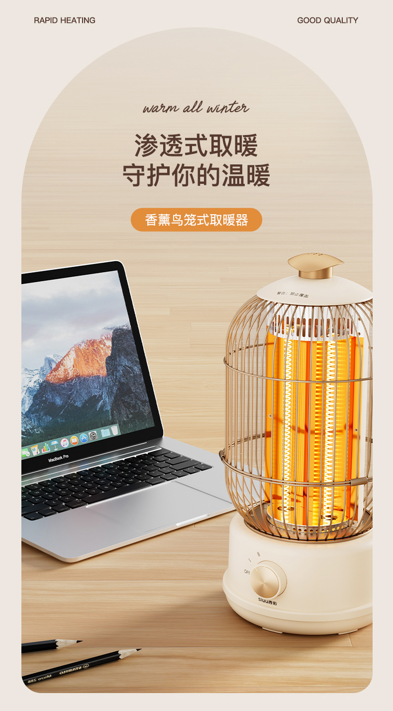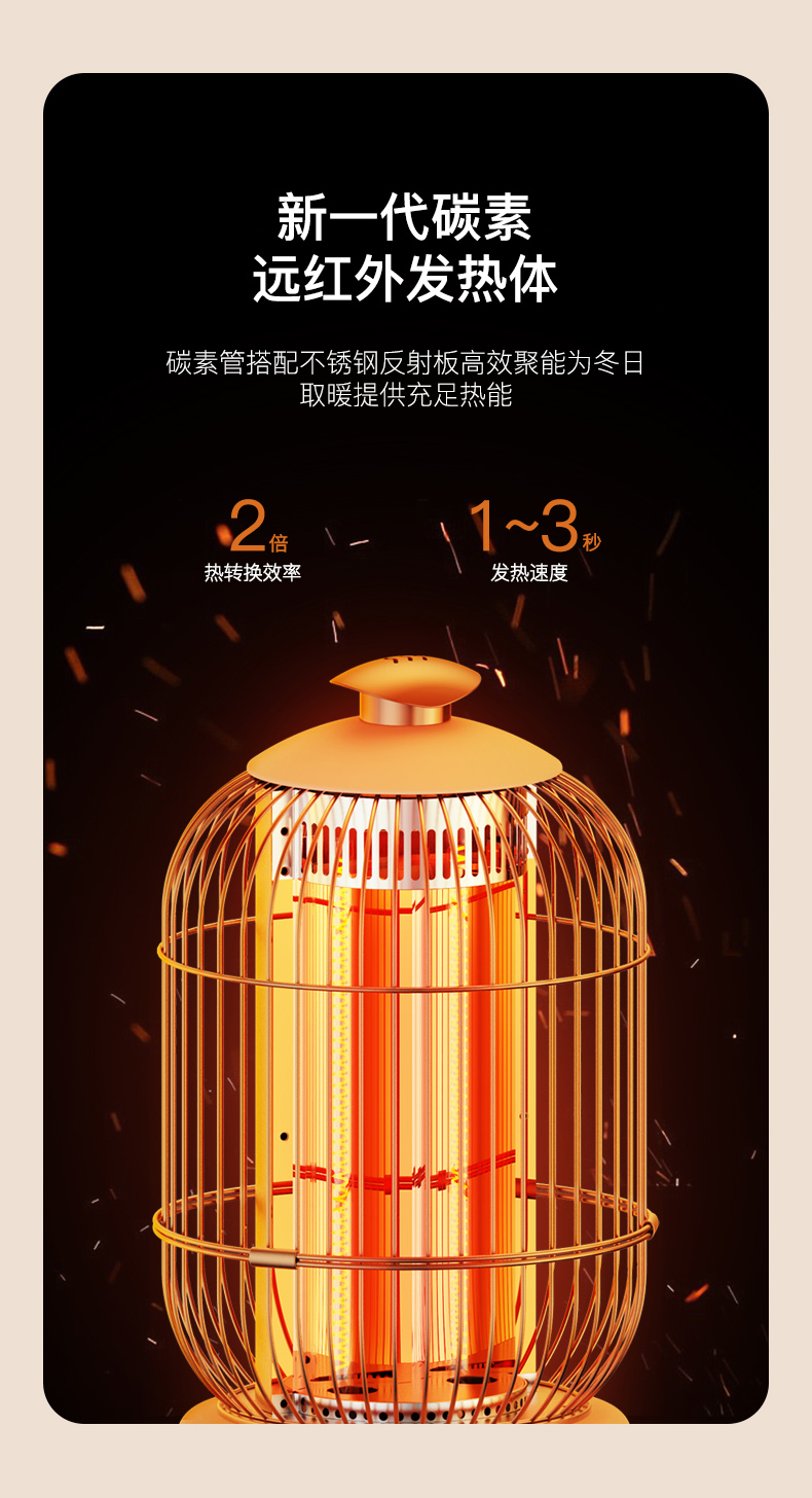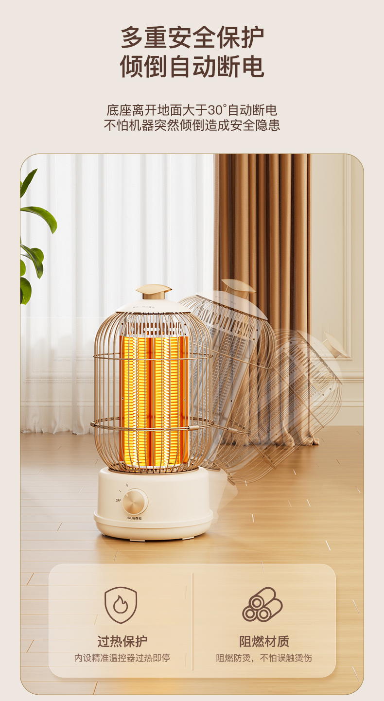 西佑(工厂直发/两色可选)取暖器速热复古鸟笼碳纤维远红外带香薰多档轻音烤火炉