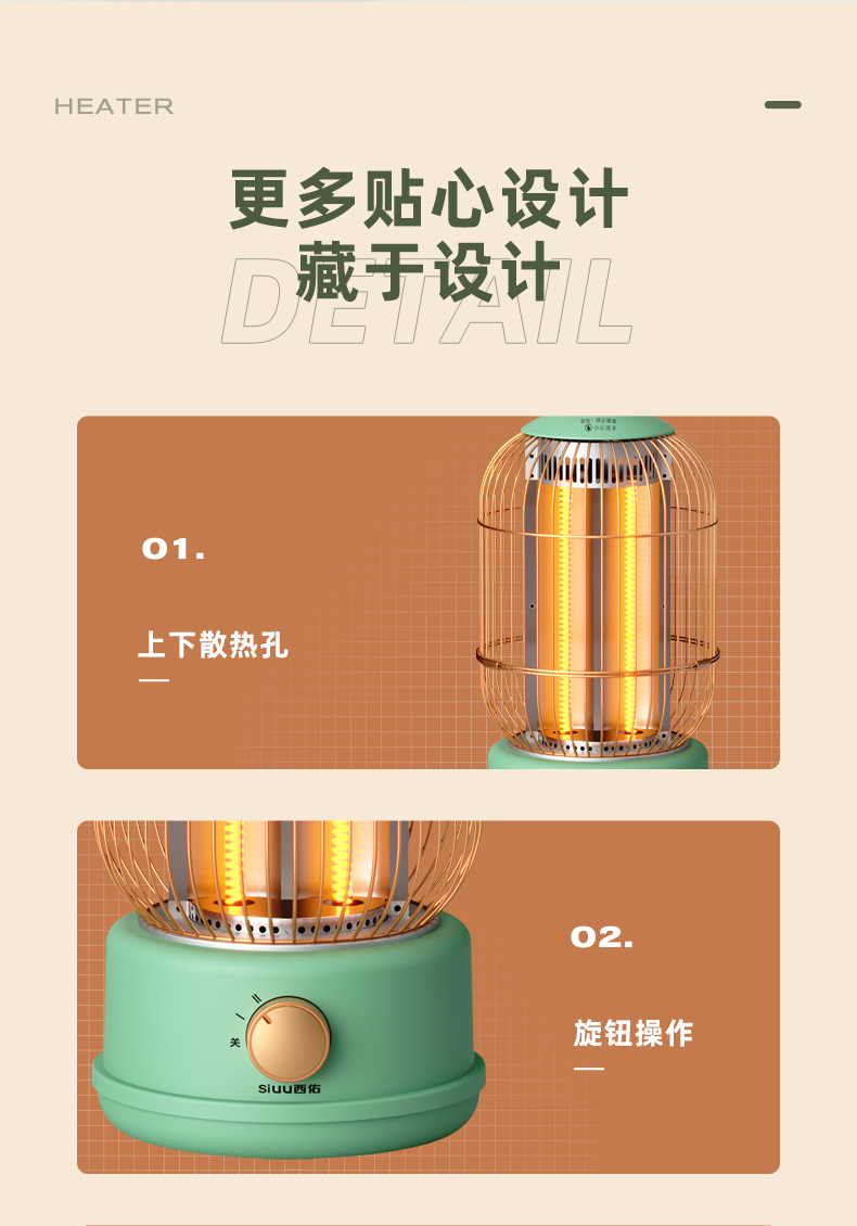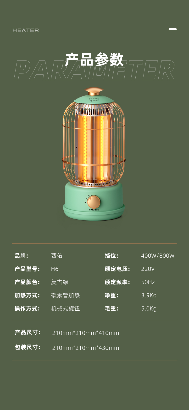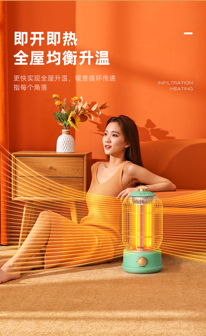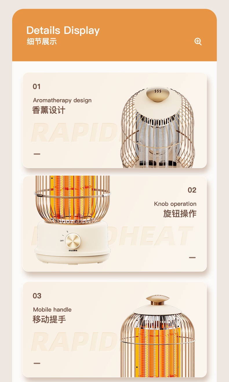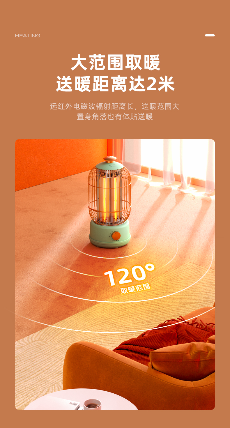 西佑(工厂直发/两色可选)取暖器速热复古鸟笼碳纤维远红外带香薰多档轻音烤火炉