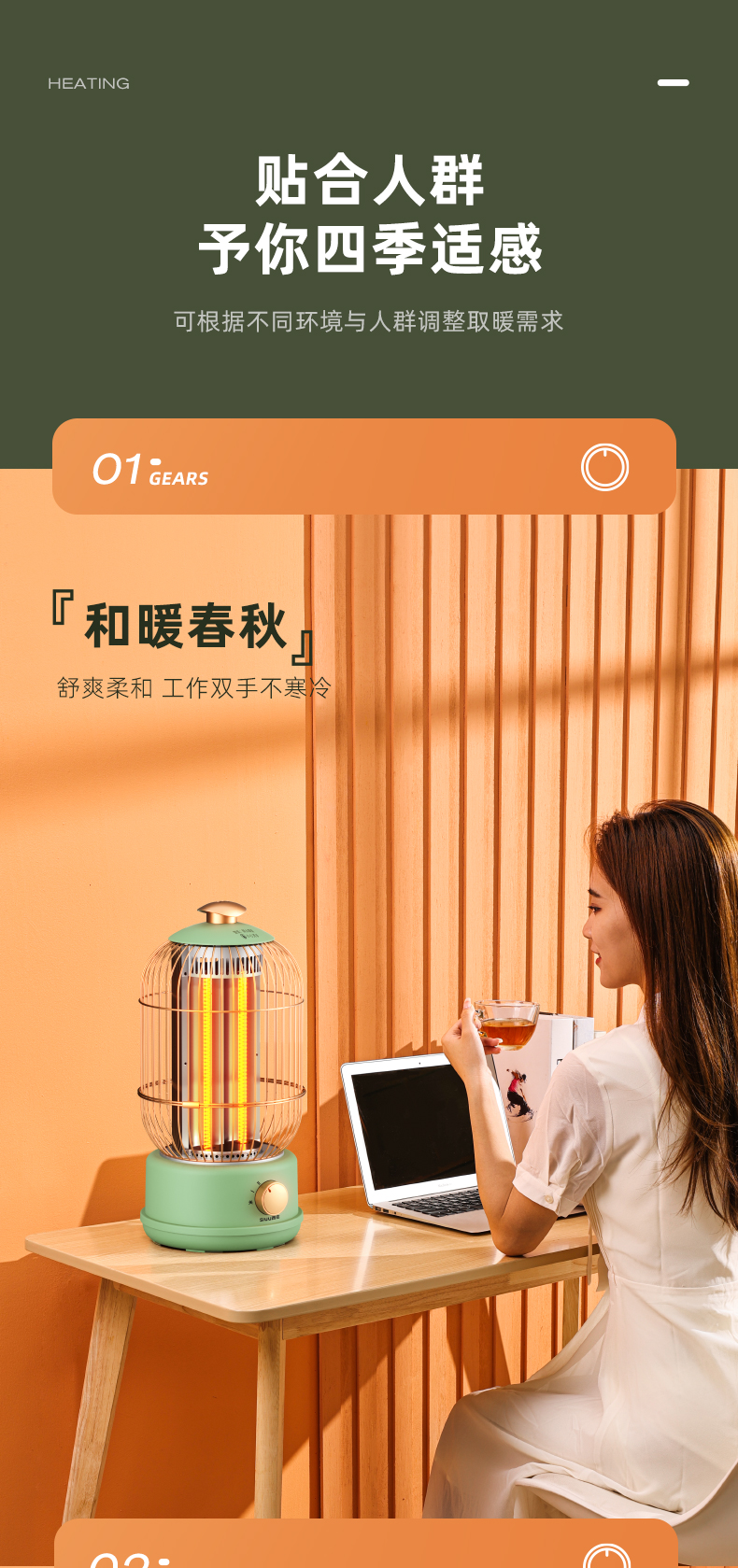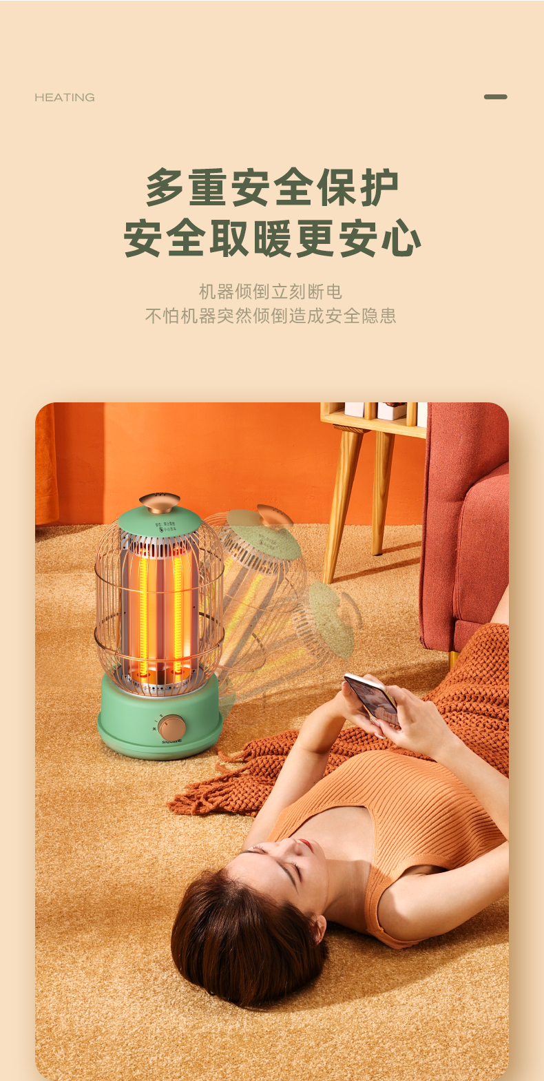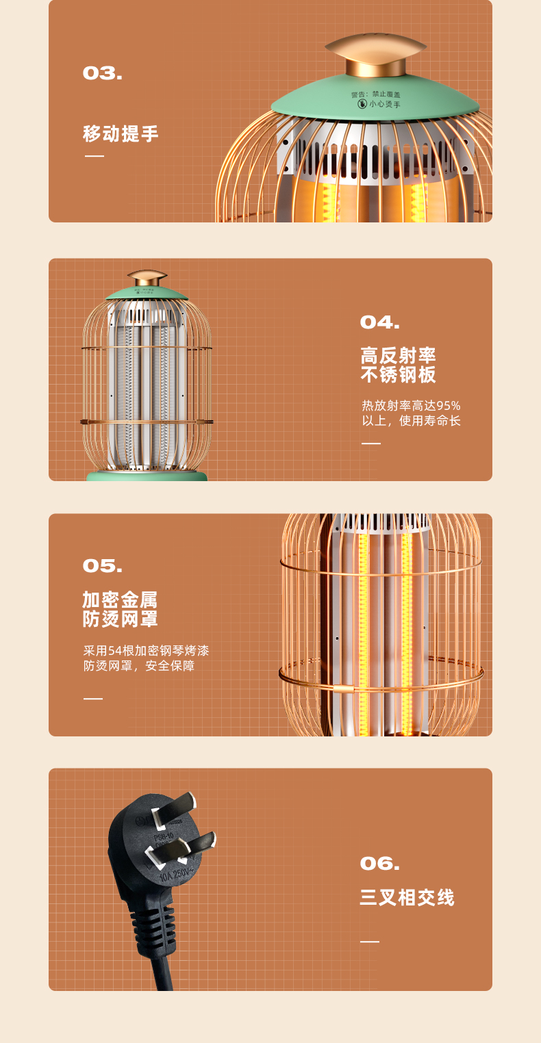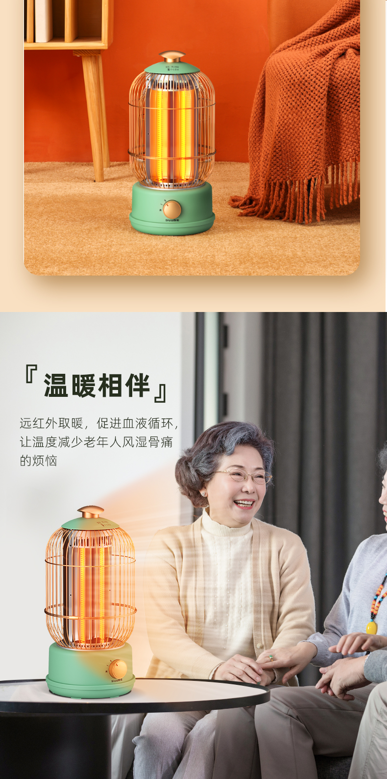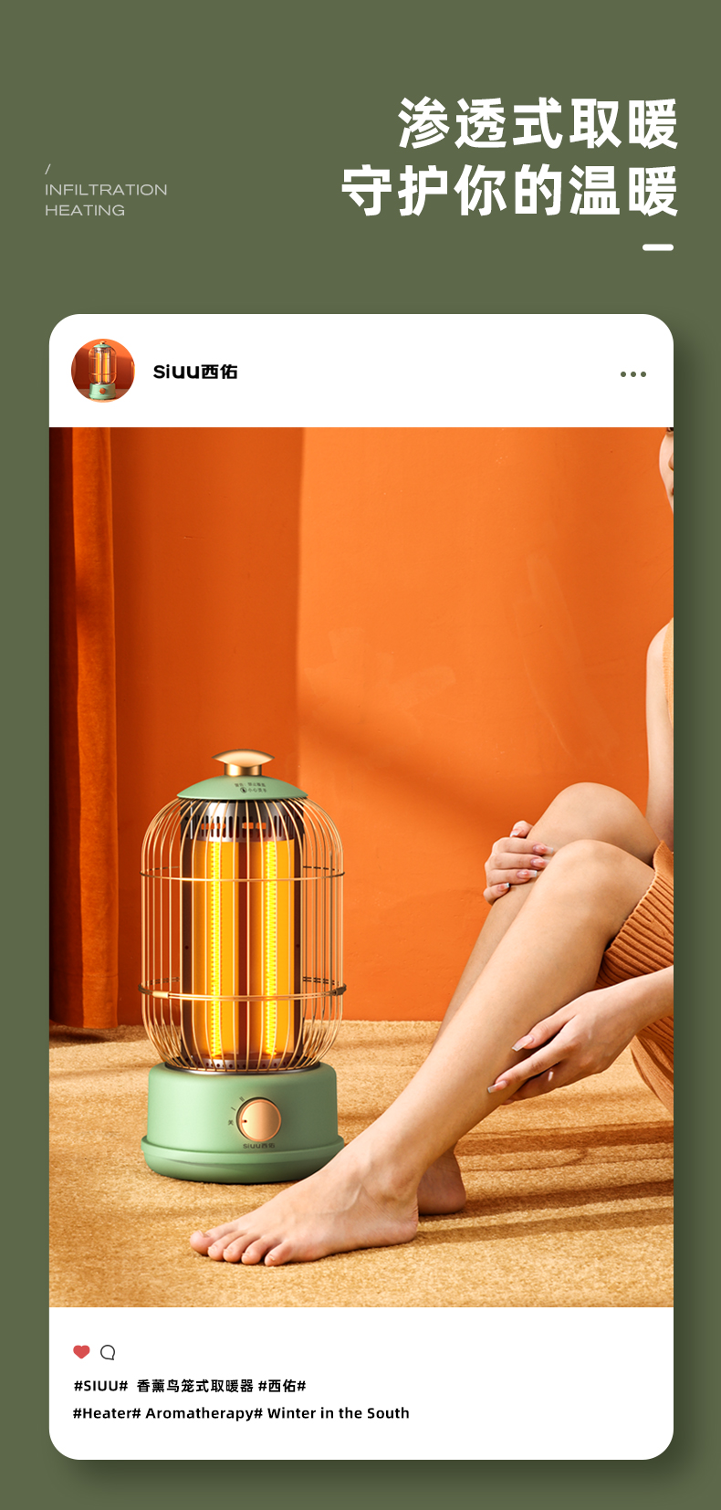 西佑(工厂直发/两色可选)取暖器速热复古鸟笼碳纤维远红外带香薰多档轻音烤火炉