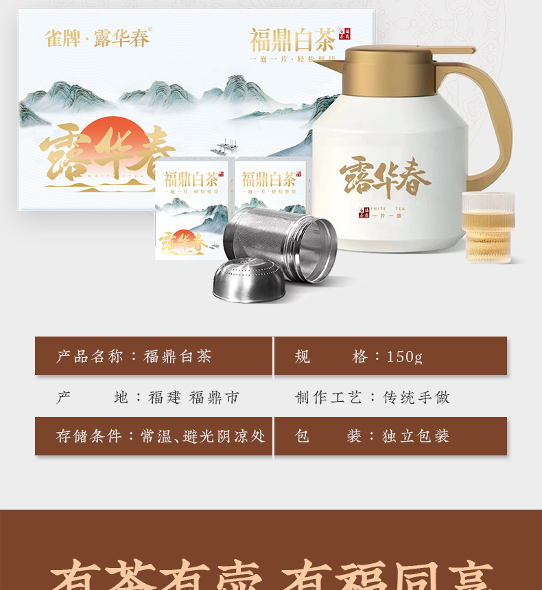 雀牌·露华春福鼎白茶 +老白茶方片壶