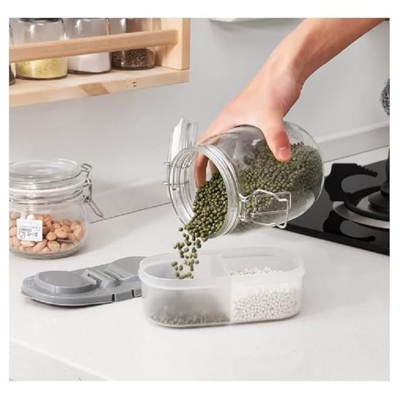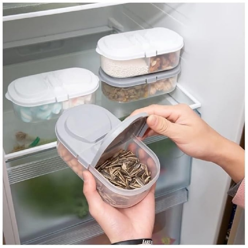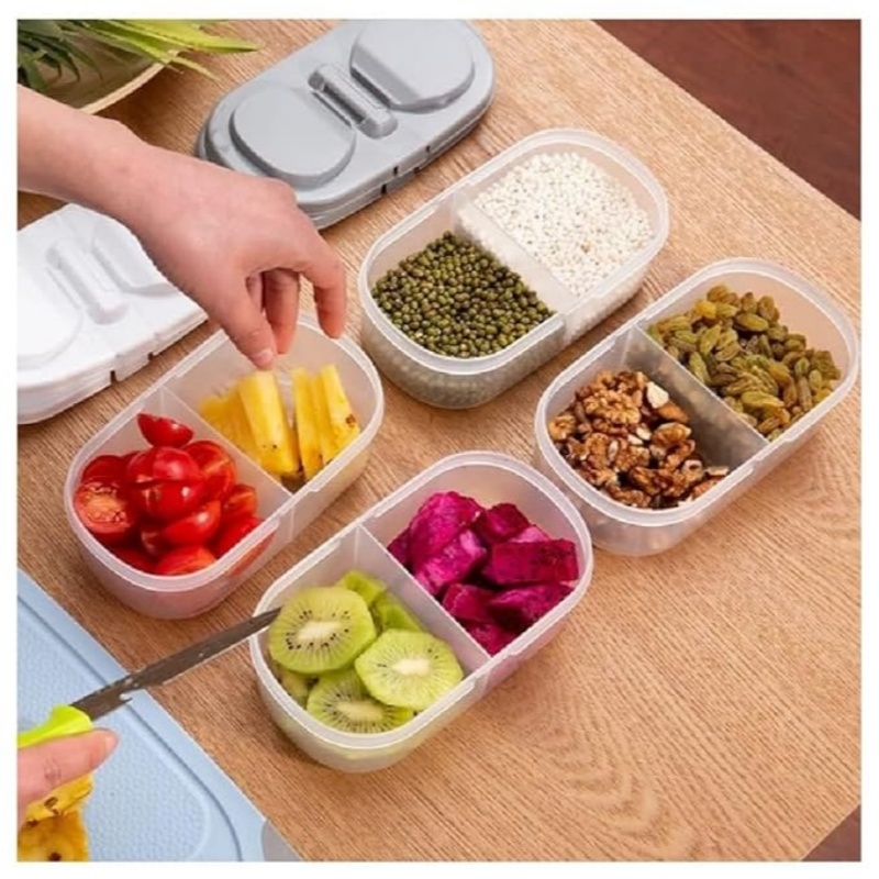 双格设计:保持食物和小物件井然有序!两个大隔格可以分开和储存不同食物,保持新鲜并密封。