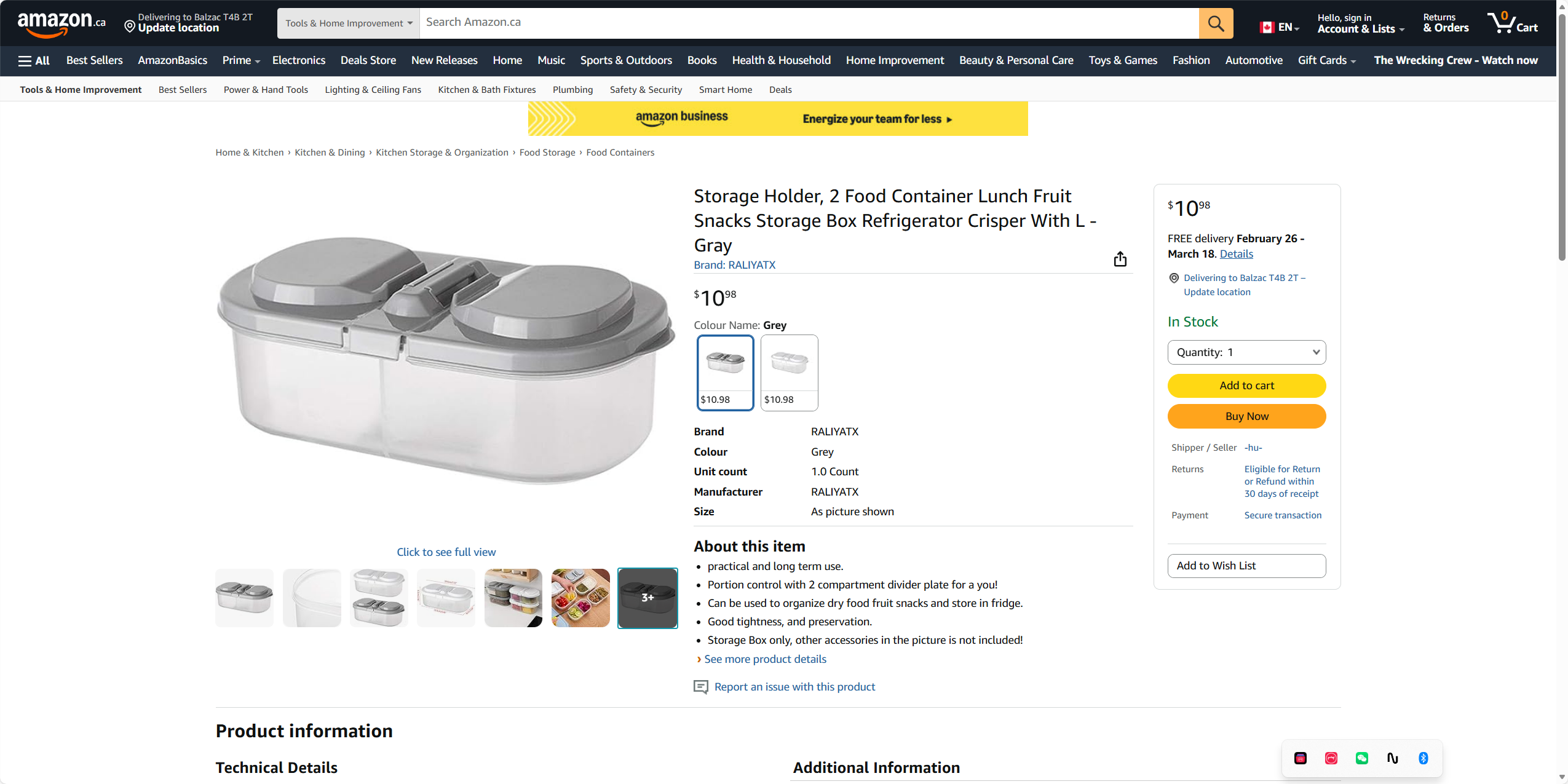 【2个装】美国亚马逊热卖 带盖的两格可重复使用食品储存盒