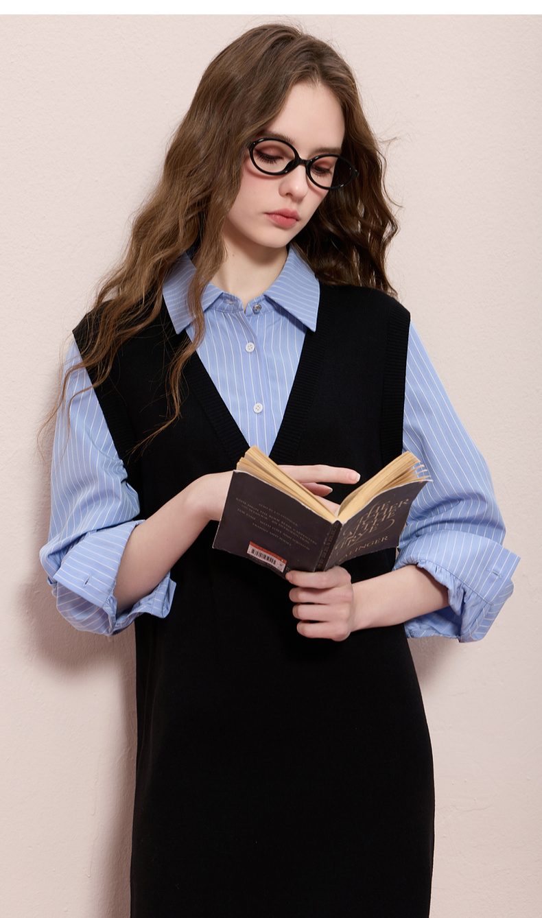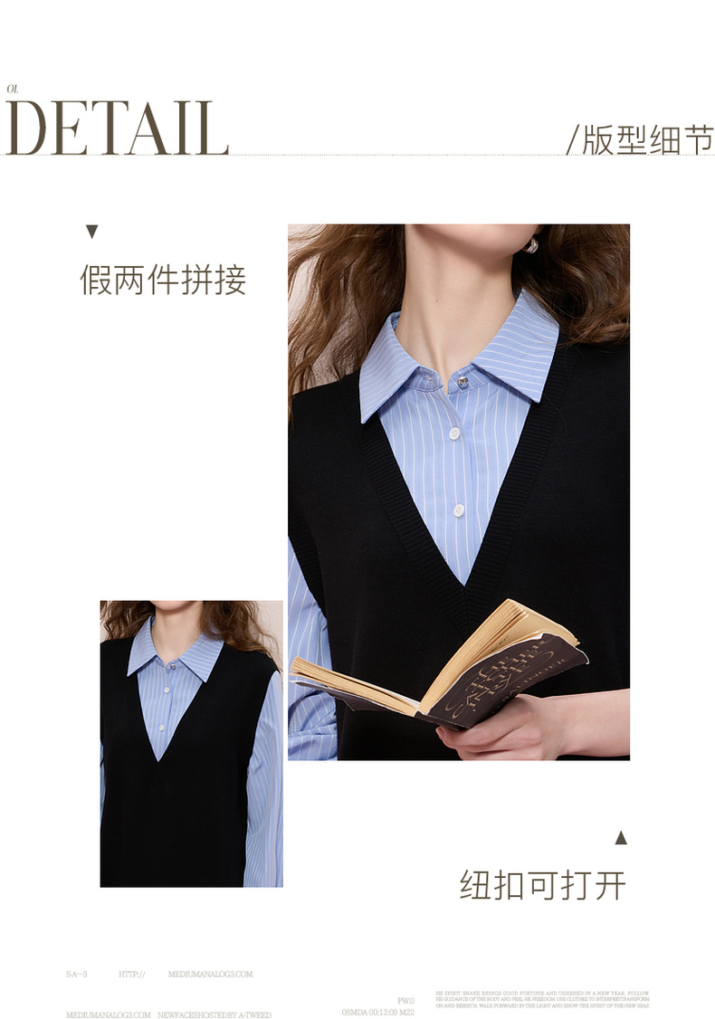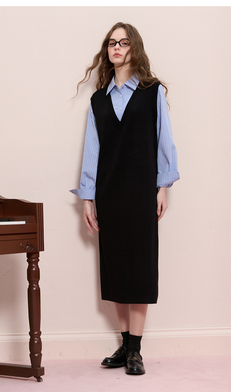 三彩2025冬季新款假两件连衣裙拼接宽松直筒裙长裙休闲M