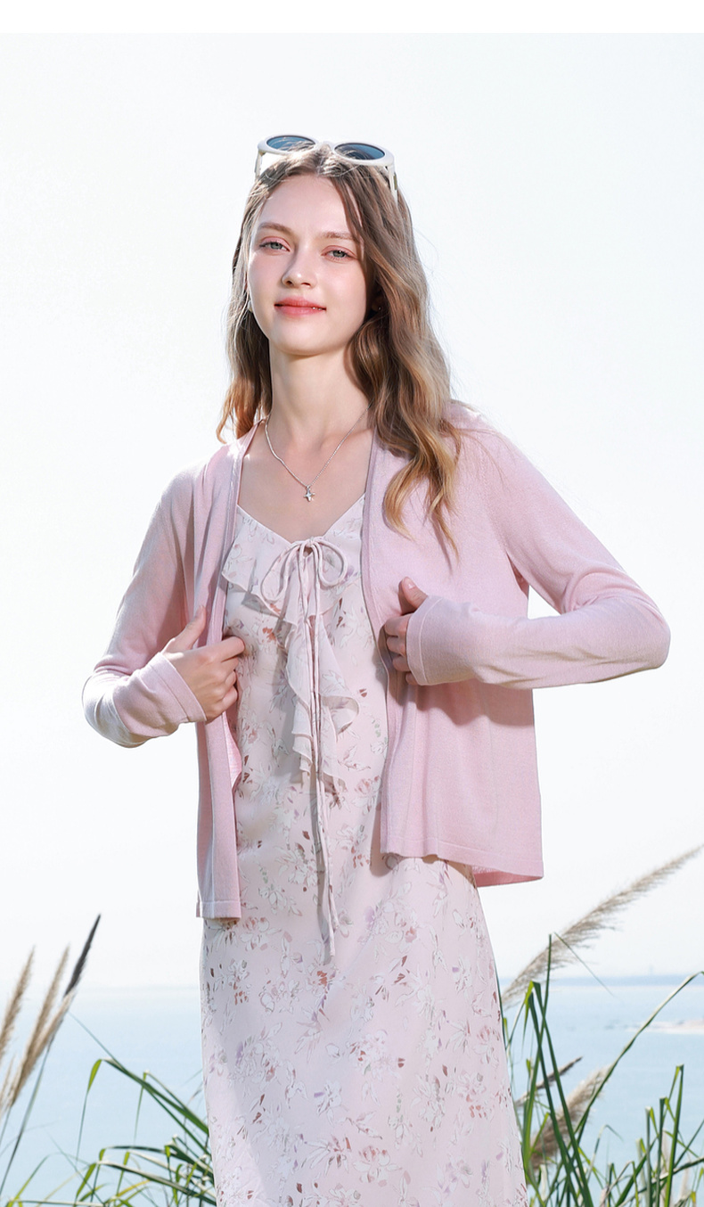【100莱赛尔】三彩2026春季新款针织衫无门襟开衫长袖罩衫M