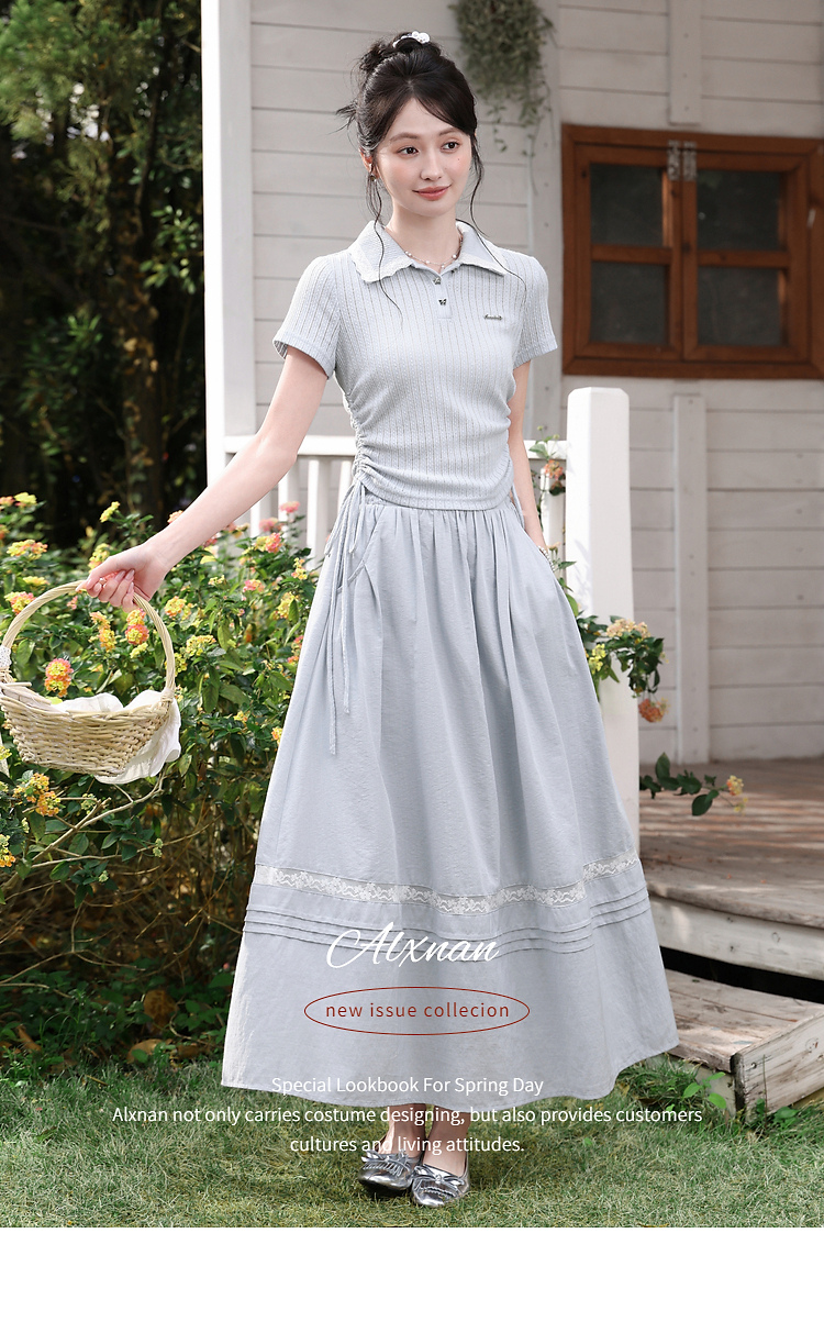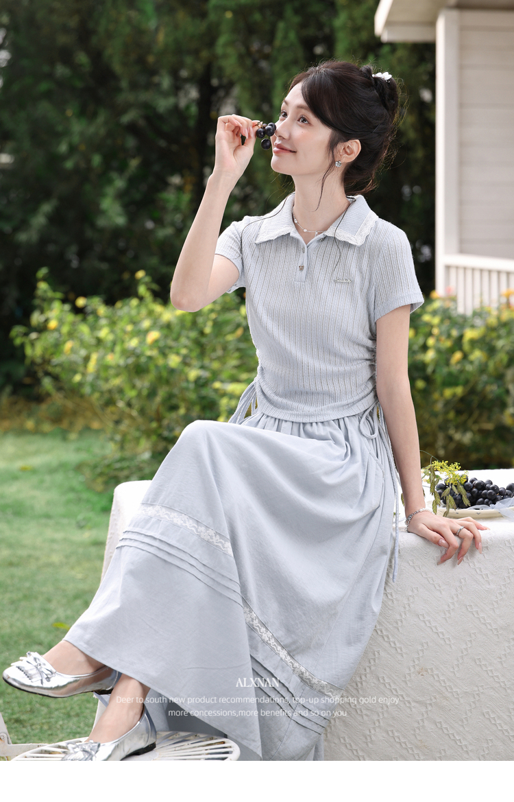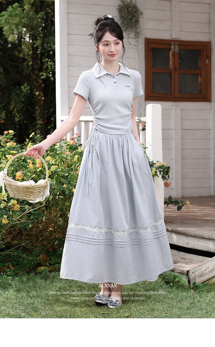 鹿向南「静美时光」雾霾蓝半身裙女春季高级感度假风高腰A字长裙