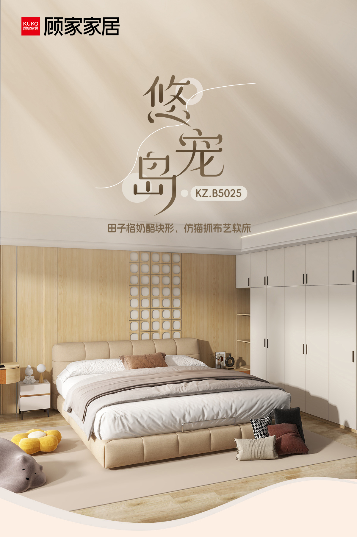 顾家家居整装 现代时尚 布艺床 KZ.B5025悠宠岛