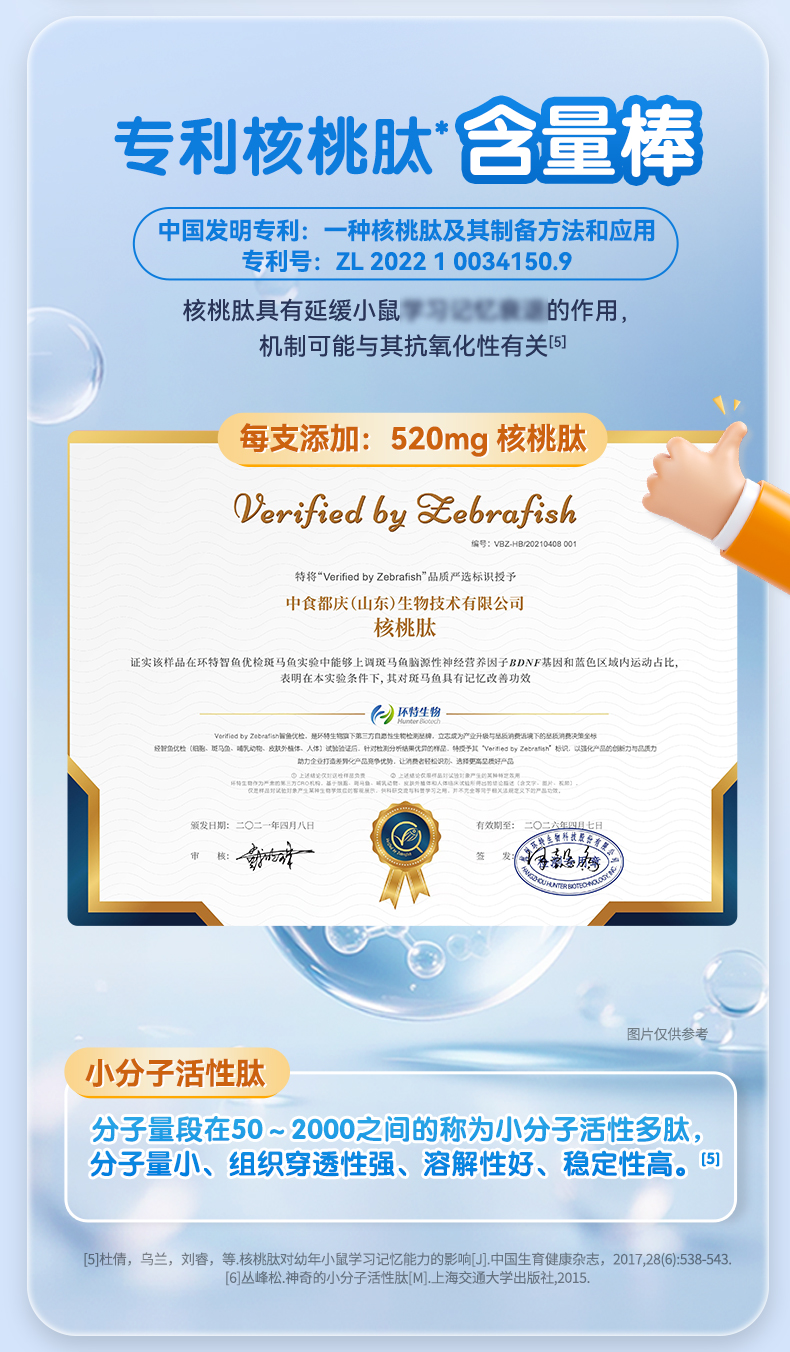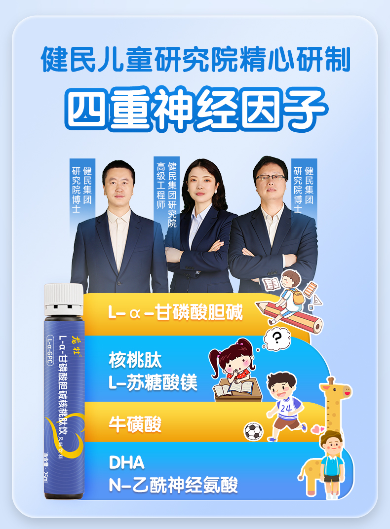 龙牡GPC L-α-甘磷酸胆碱+核桃肽+学生青少年DHA藻油,三岁以上可喝,小分子肽,易吸收