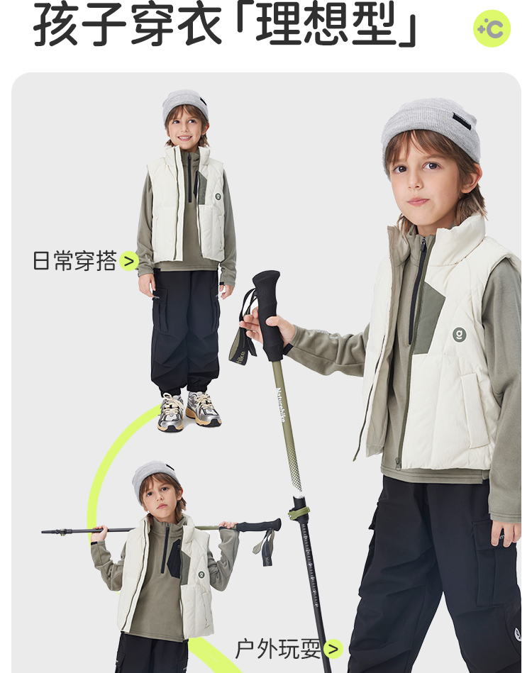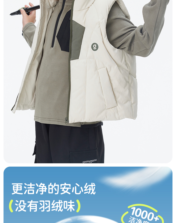 onmygame【特氟龙三防】男女童羽绒服马甲轻量户外安心绒