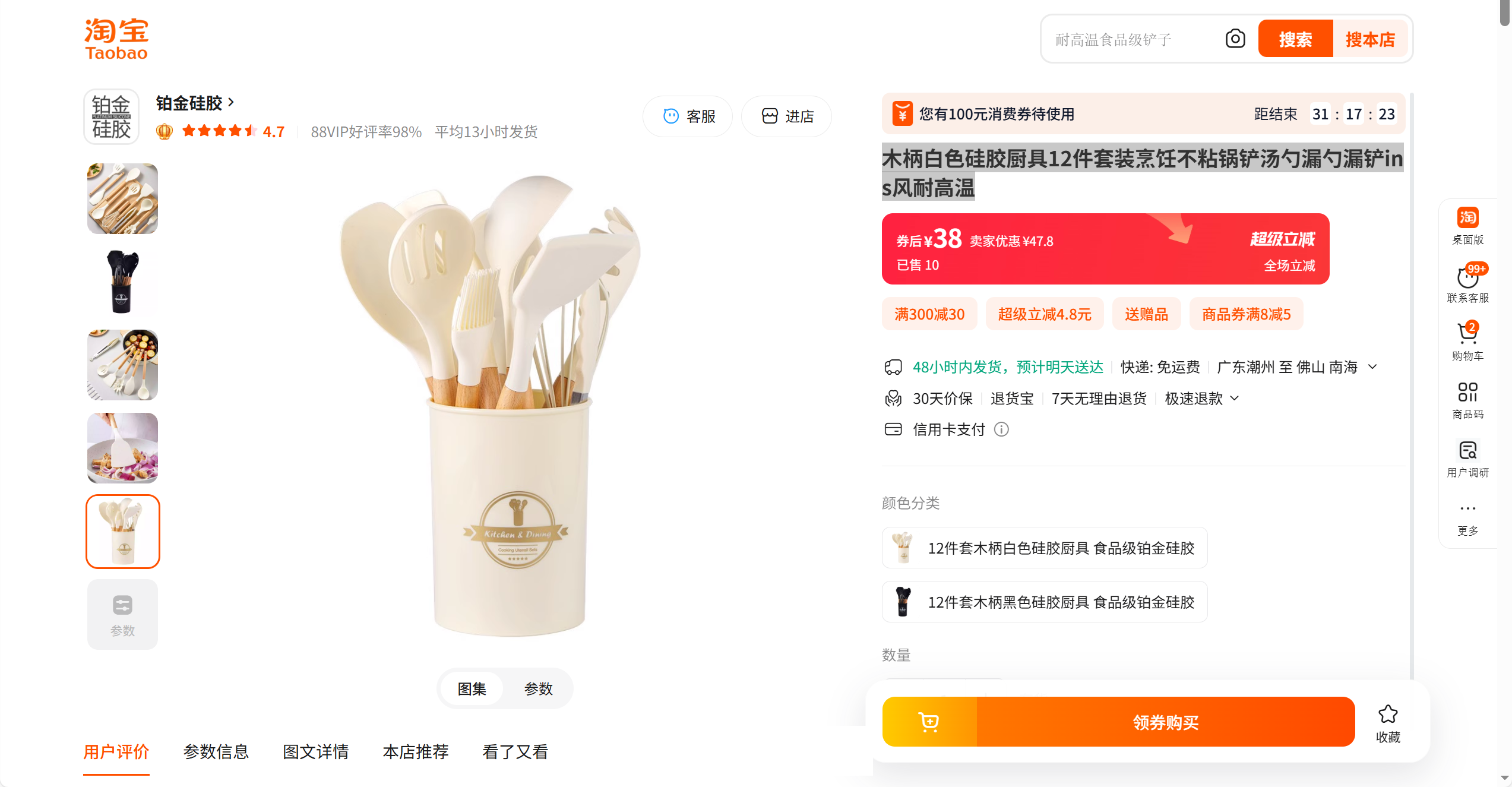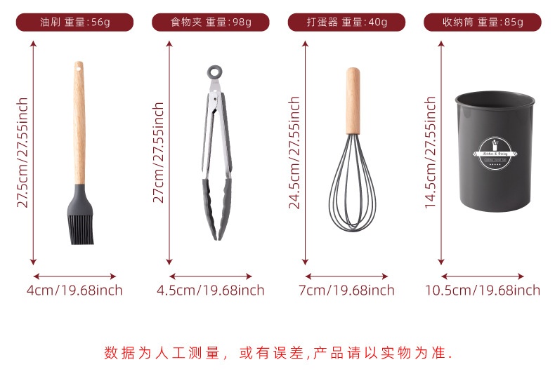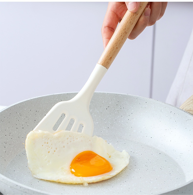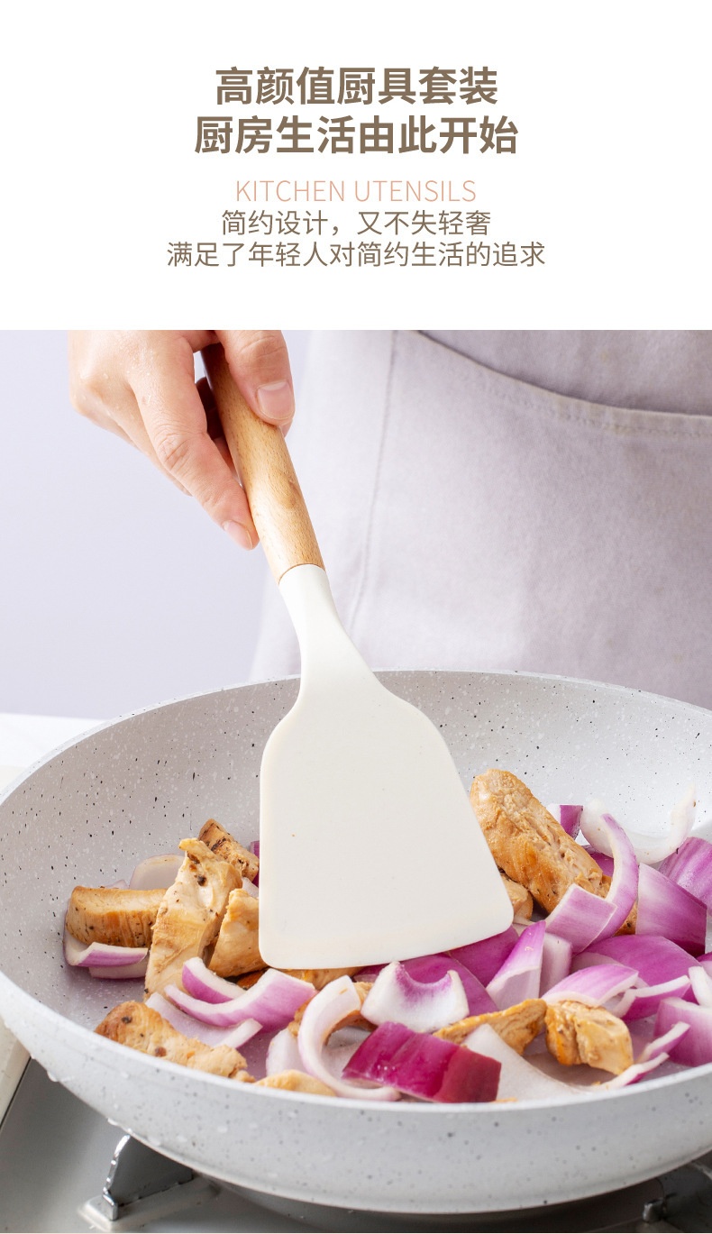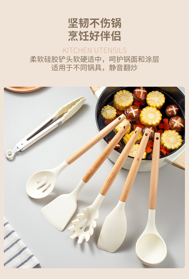 硅胶木柄厨具12件套装 烹饪不粘锅铲汤勺漏勺漏铲 耐高温