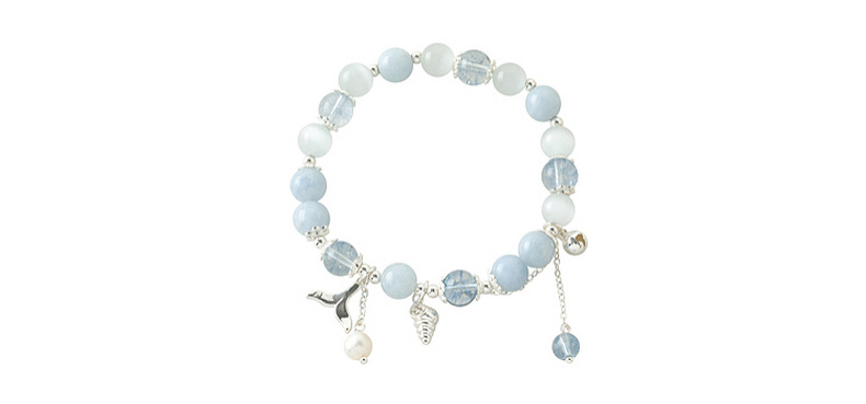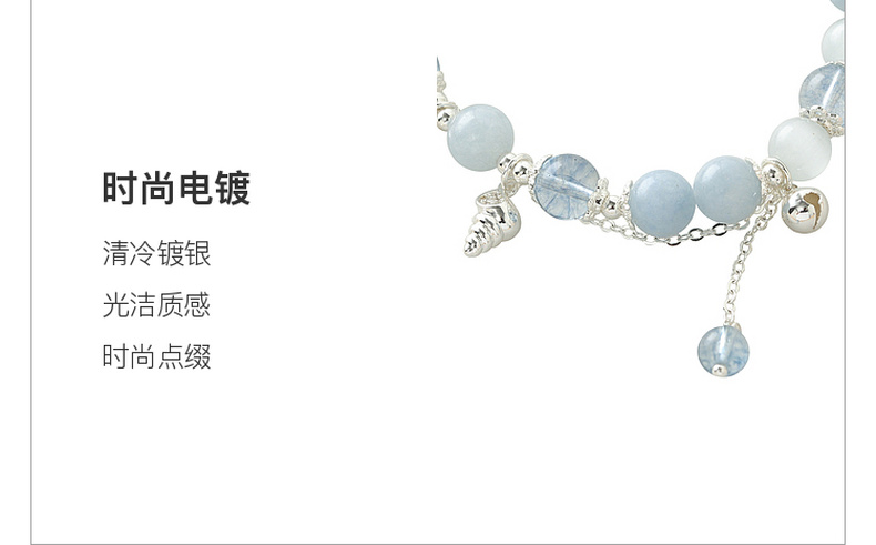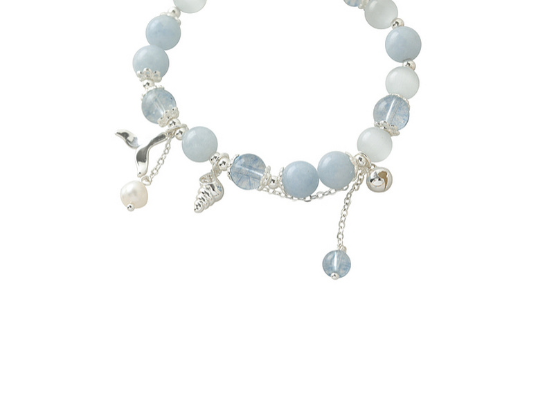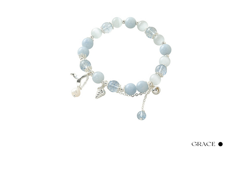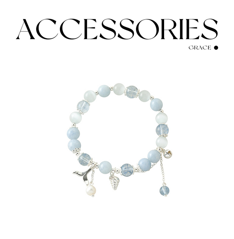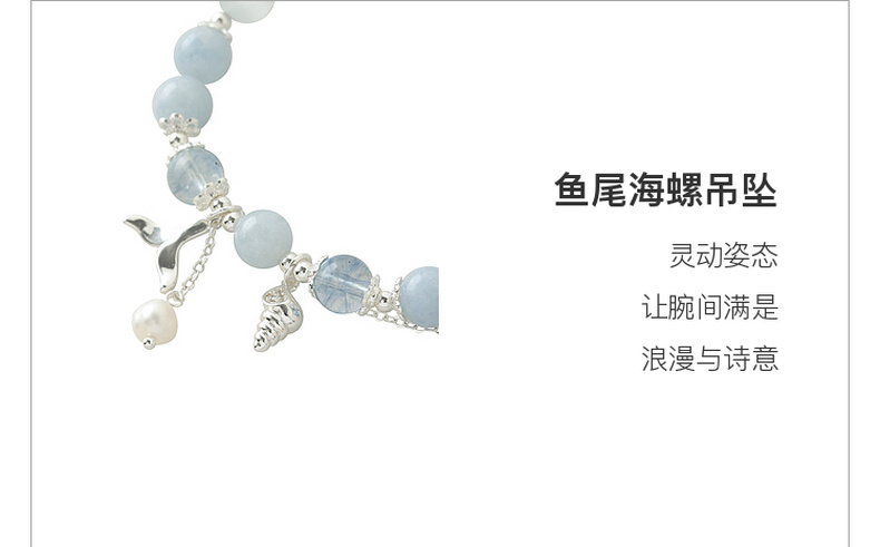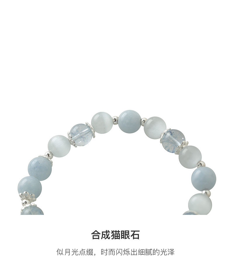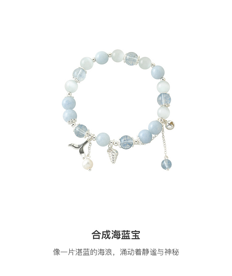 三彩2026新款清新通勤冰透合成海蓝宝猫眼鱼尾海螺小众串珠手串
