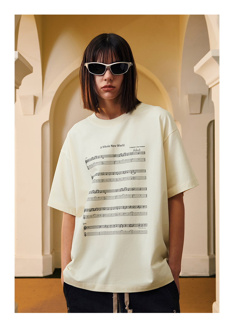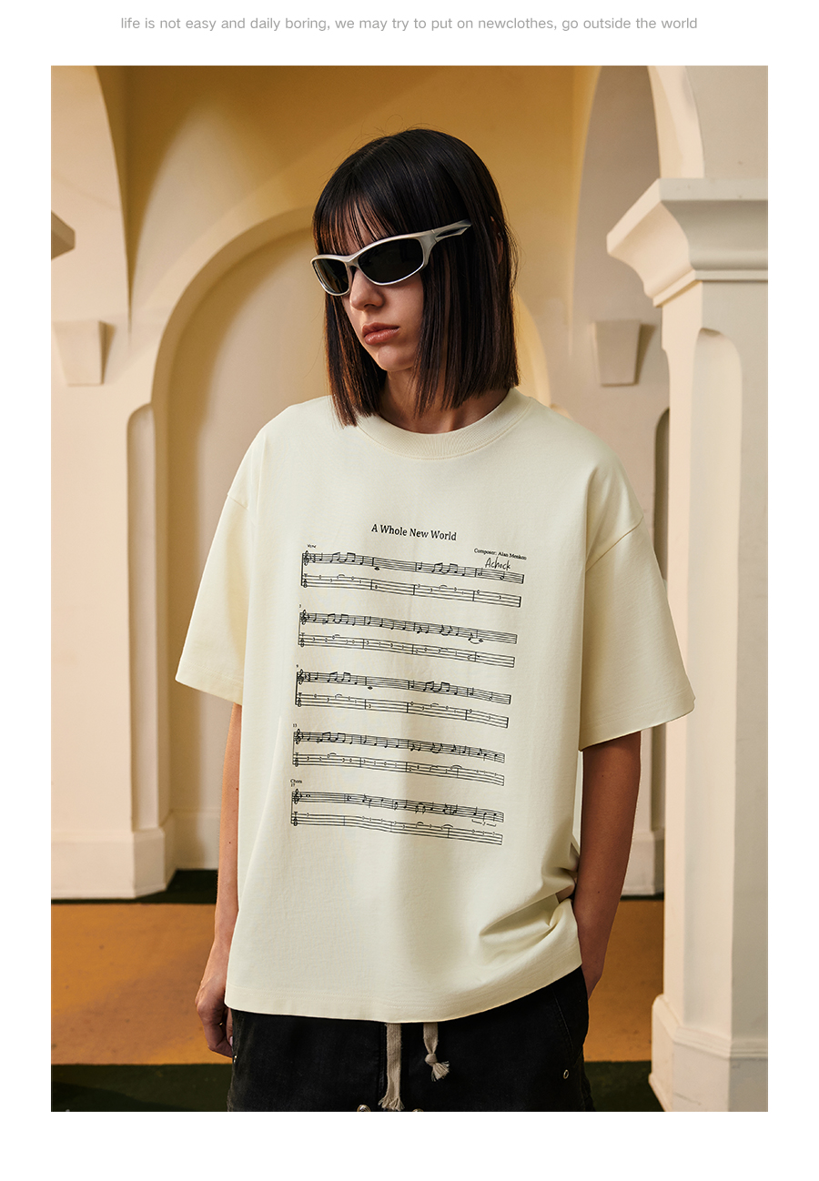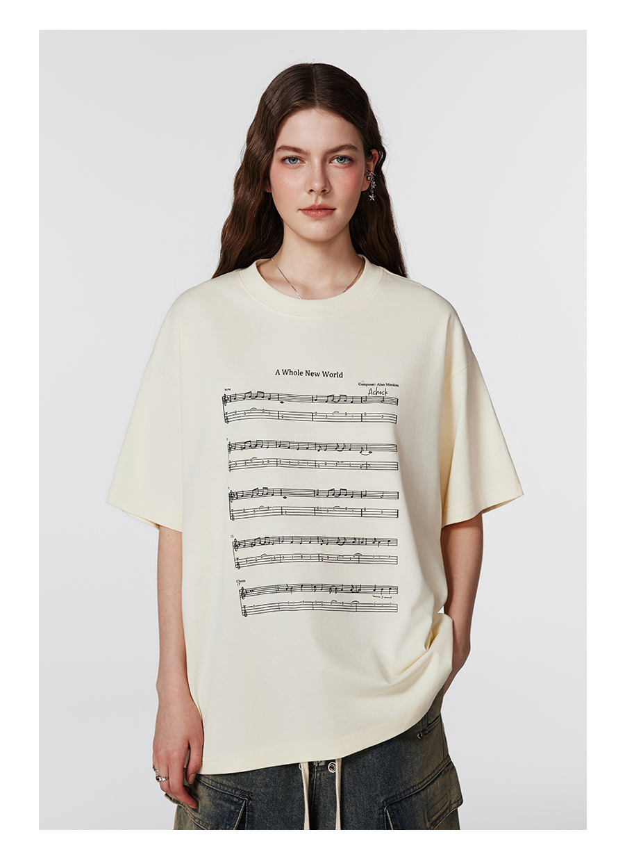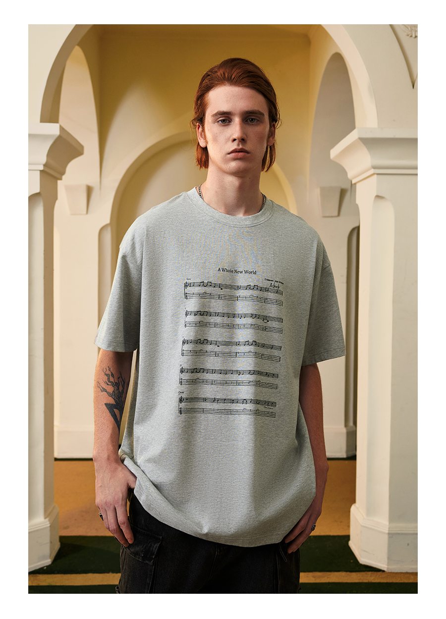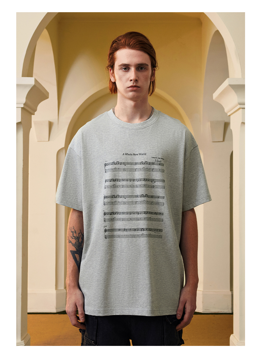 【Achock官方店】美式创意乐谱印花圆领短袖潮牌新款宽松情侣T恤