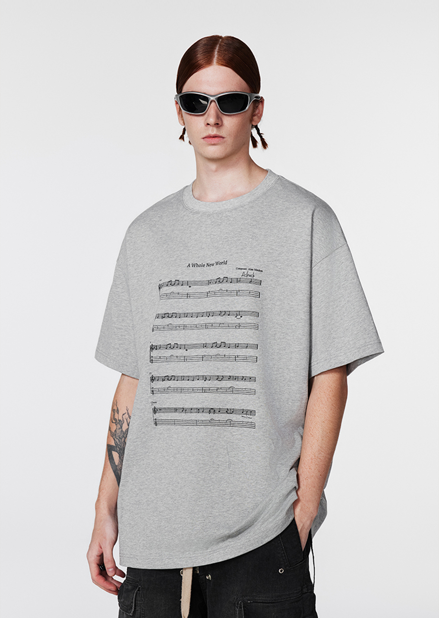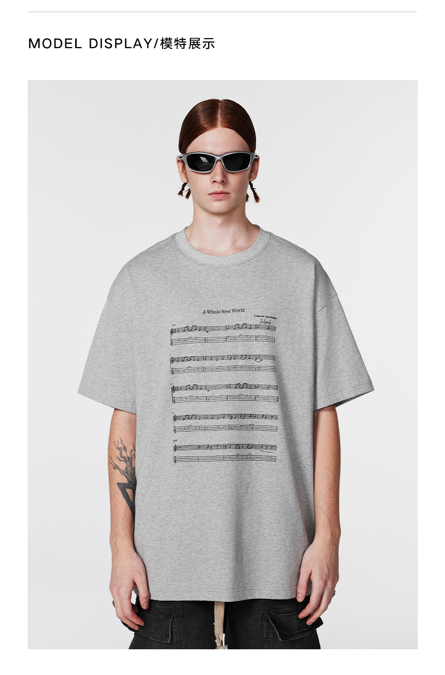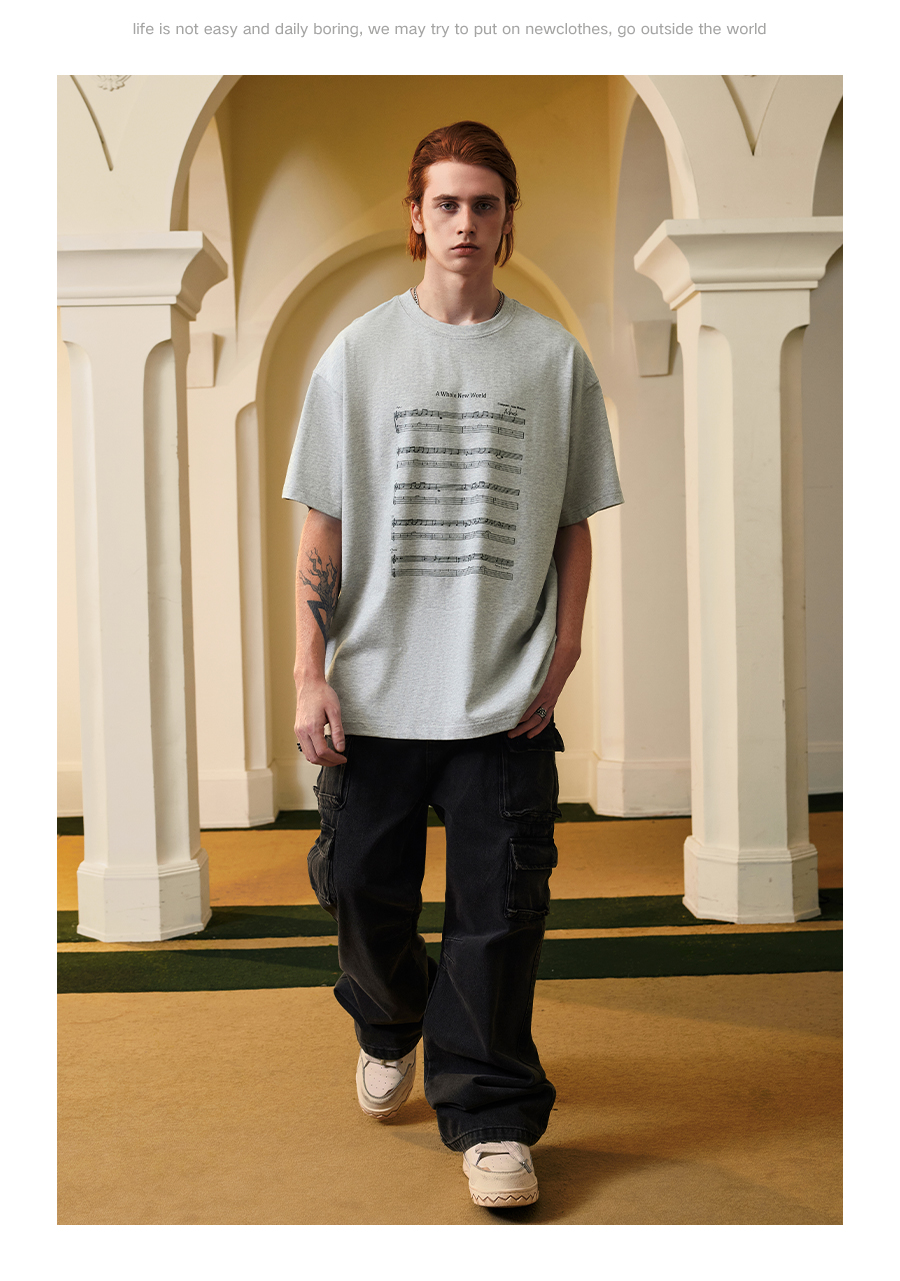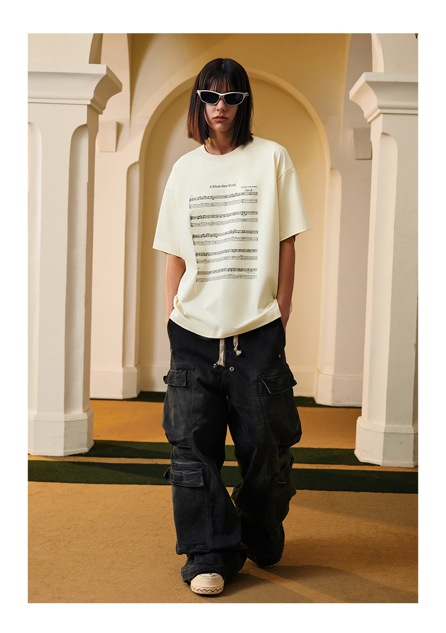 【Achock官方店】美式创意乐谱印花圆领短袖潮牌新款宽松情侣T恤