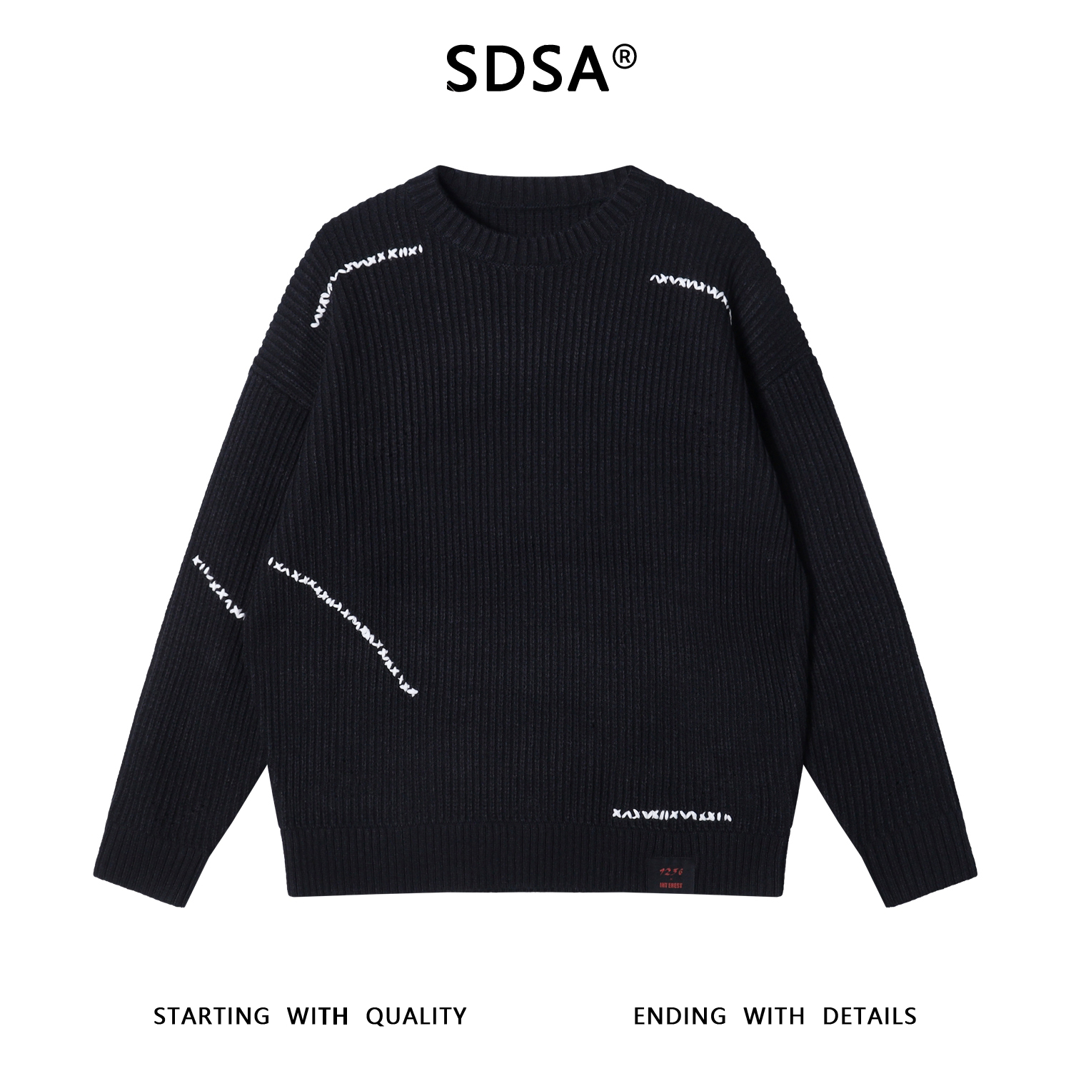 243031SDSA男士秋冬新款痞帅男装潮牌撞色缝线圆领针织衫毛衣百搭休闲