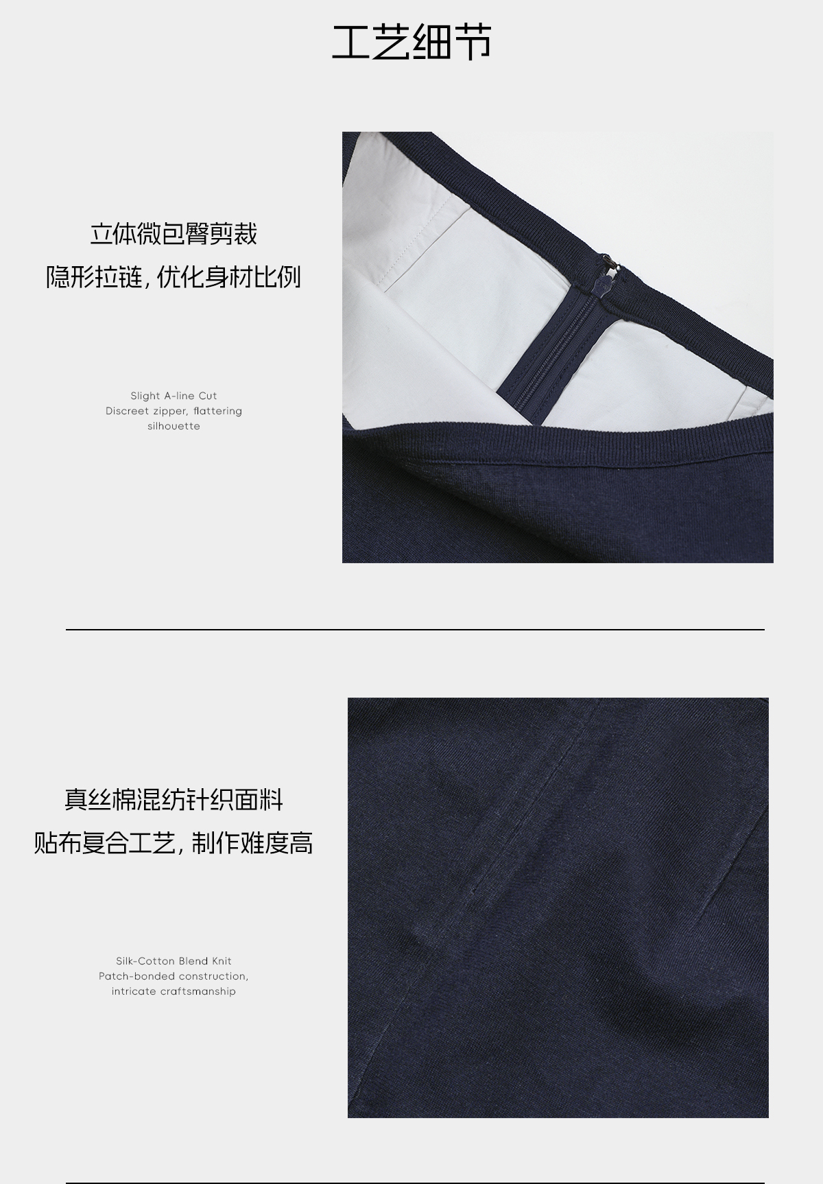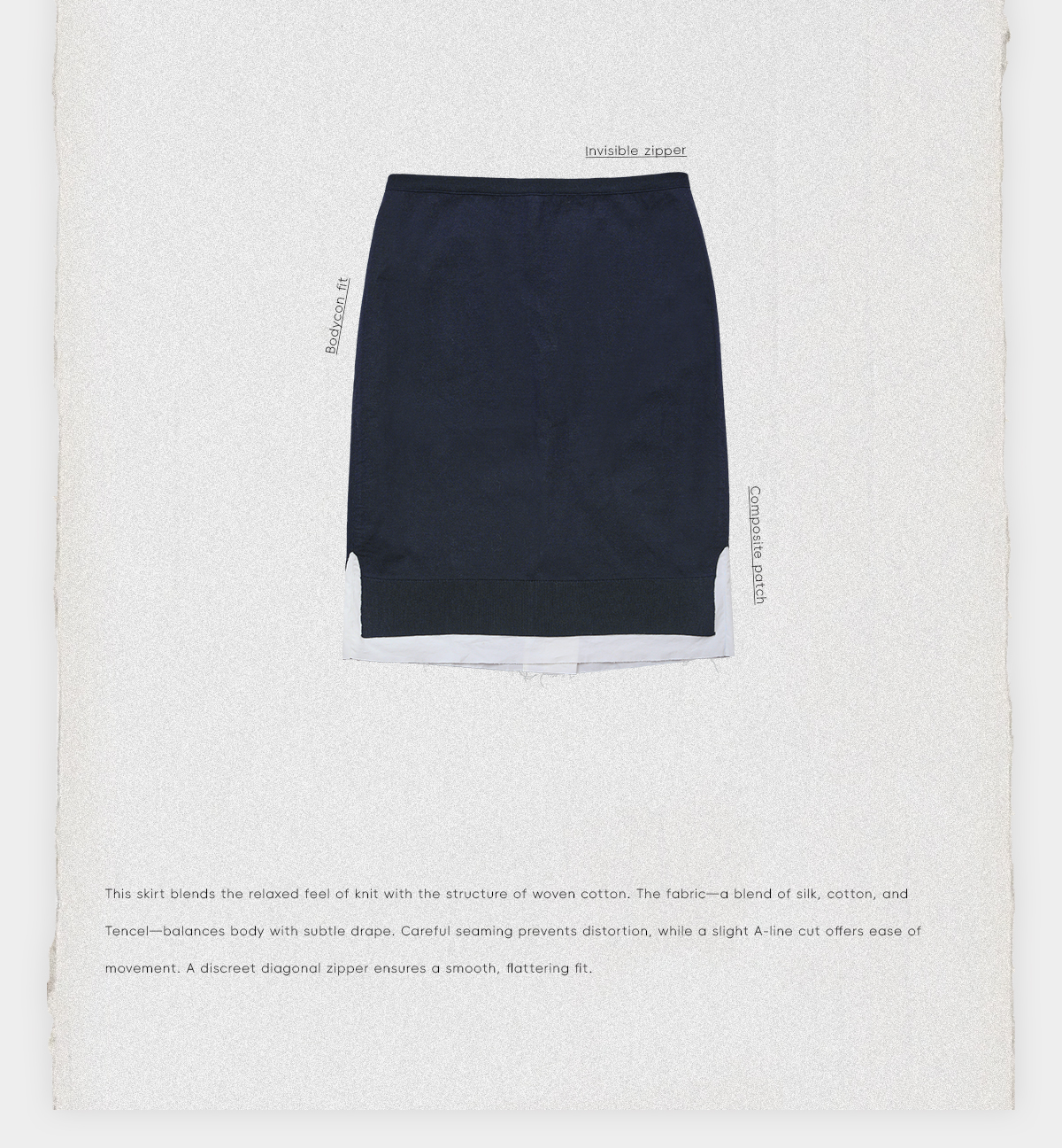 ROMI STUDIO“文艺分子”桑蚕丝混纺白边针织直筒半裙RWCSXT6795