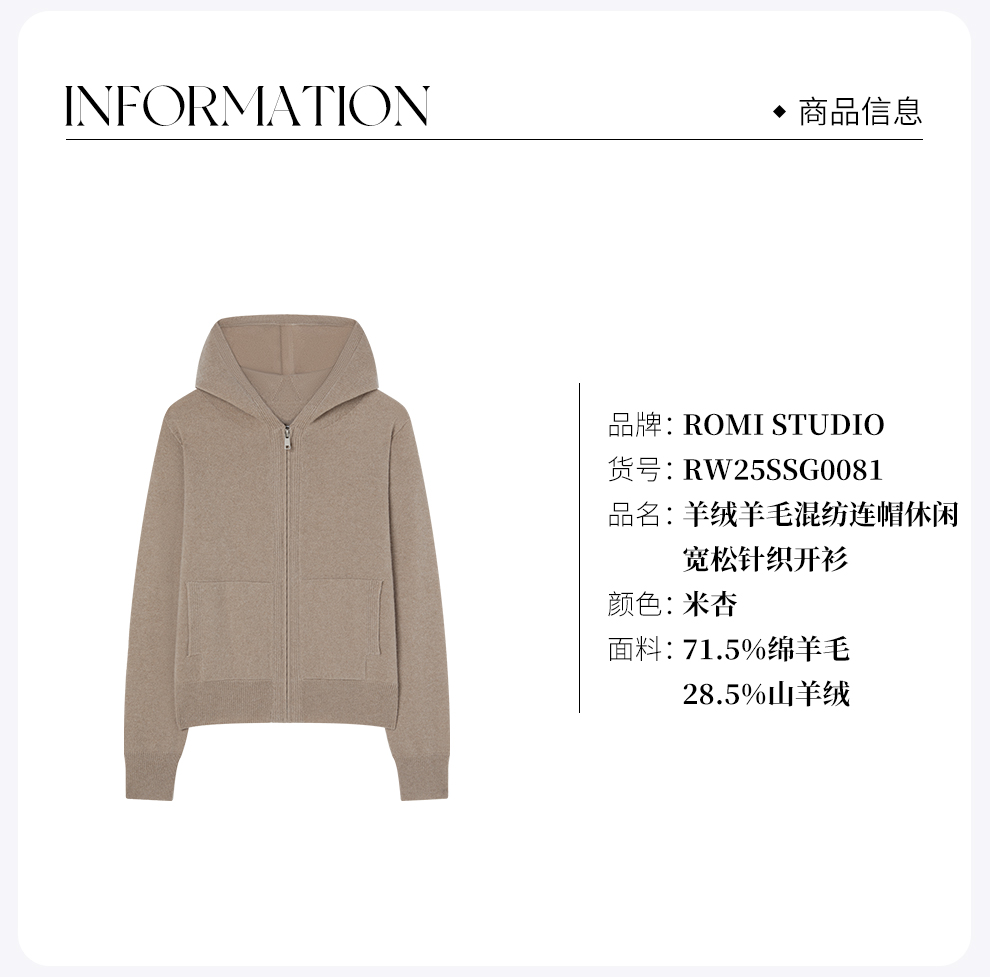 ROMI STUDIO“随性自在”12针单边羊绒羊毛混纺连帽卫衣RW25SSG0081