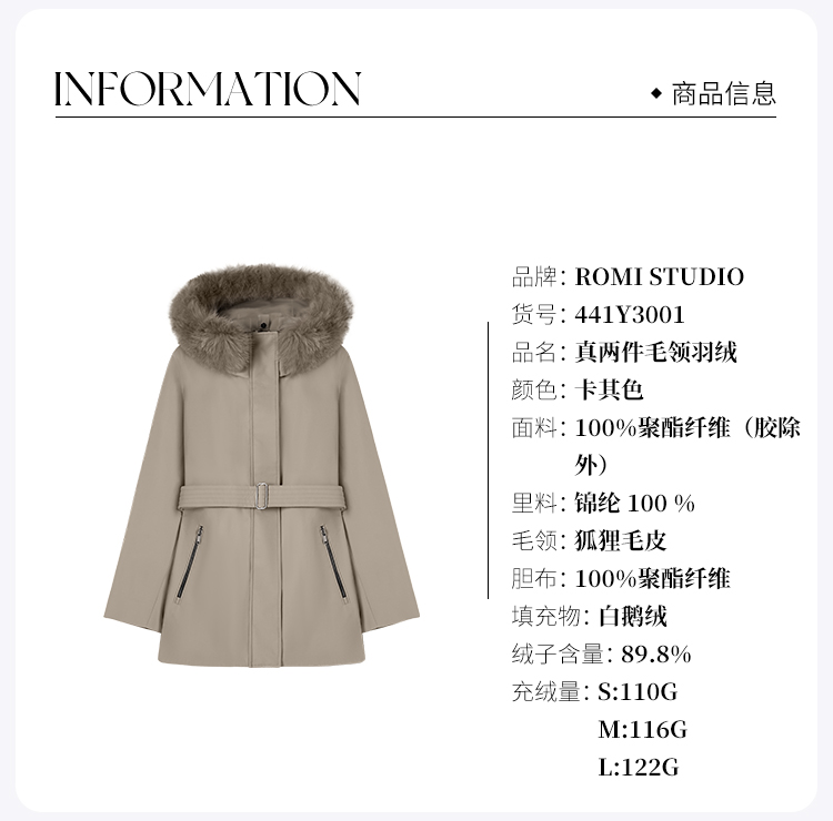 ROMI STUDIO白鹅绒拼狐狸毛毛领可拆卸内胆连帽羽绒服 441Y3001