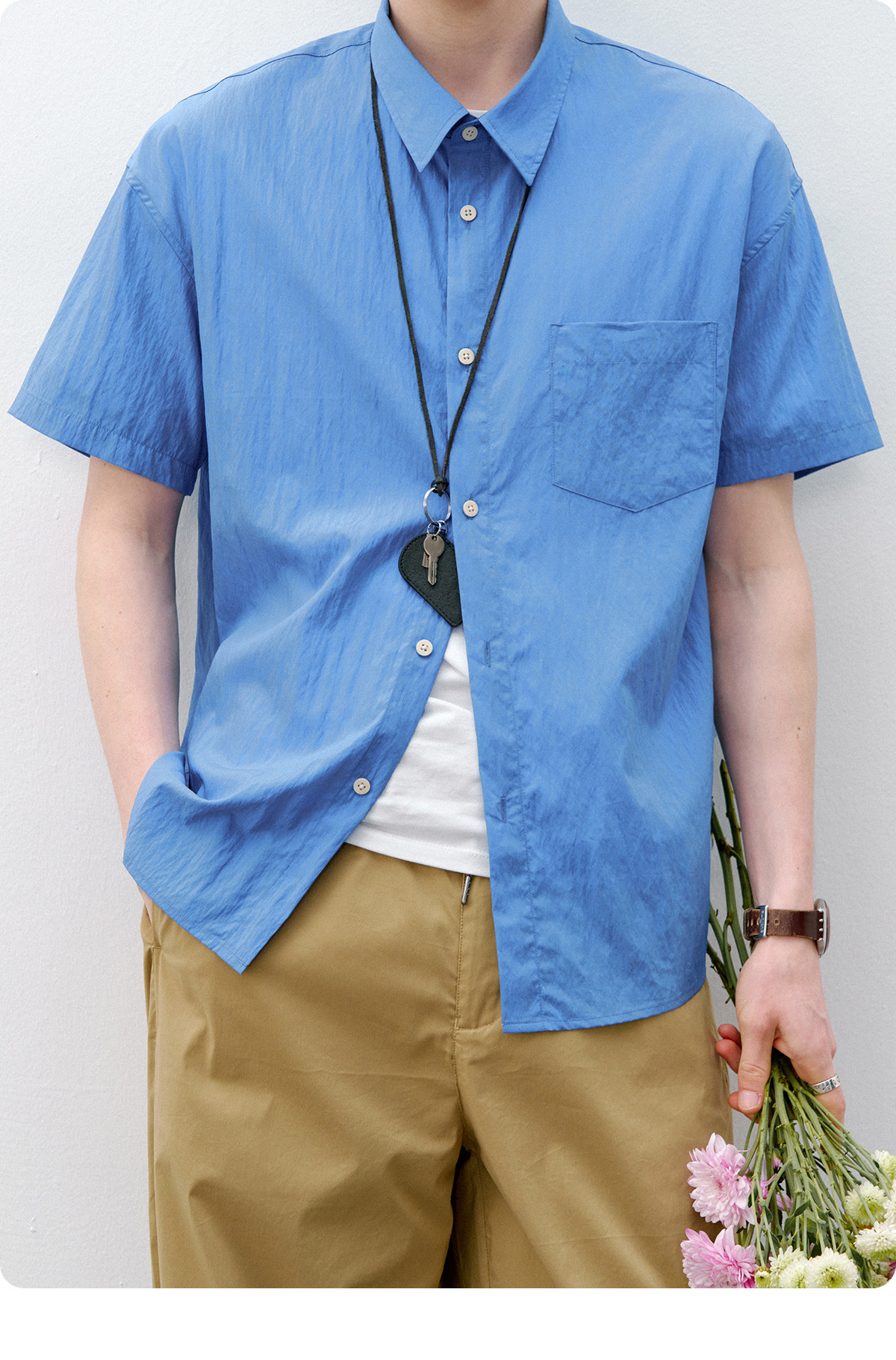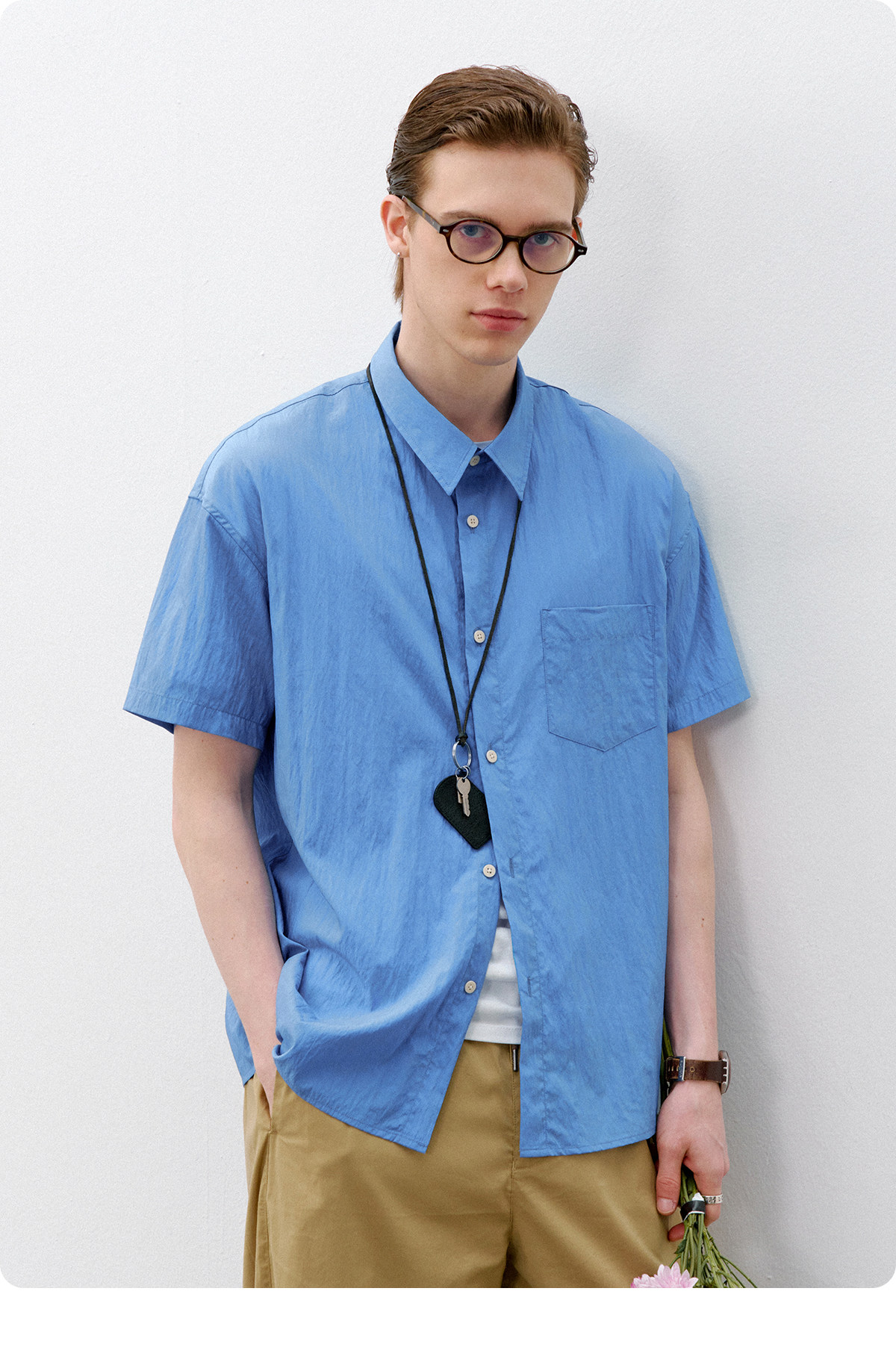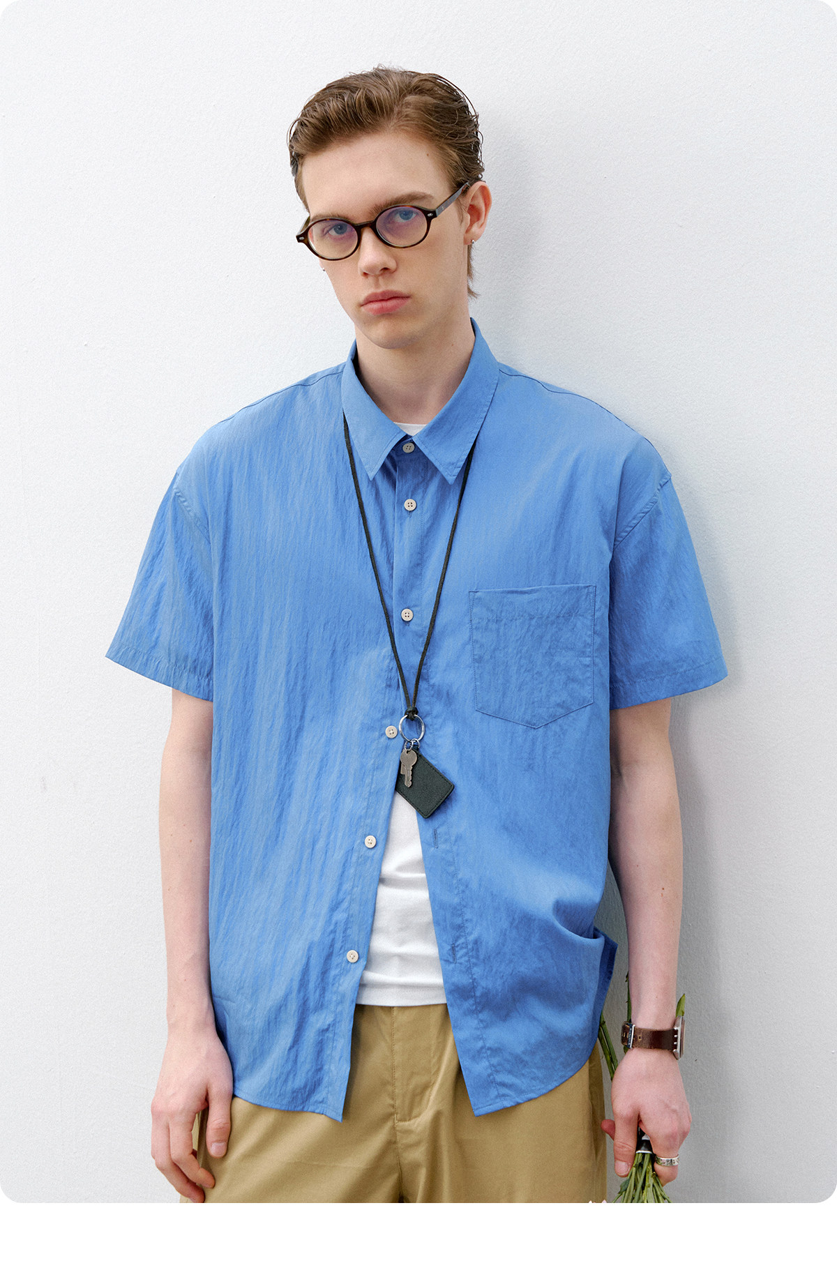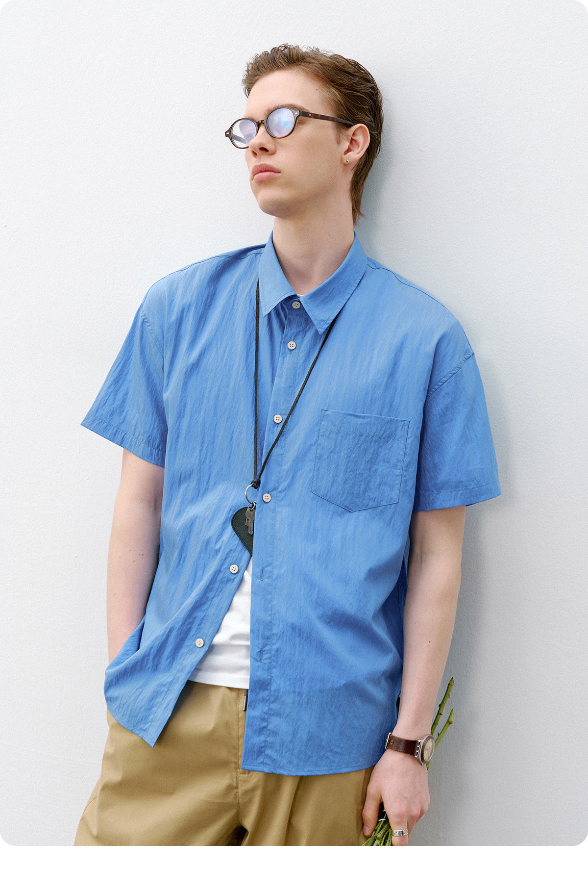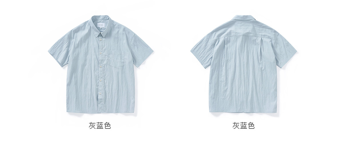 714street夏季轻薄亲肤透气莱赛尔天丝微皱纹理短袖衬衫男女同款