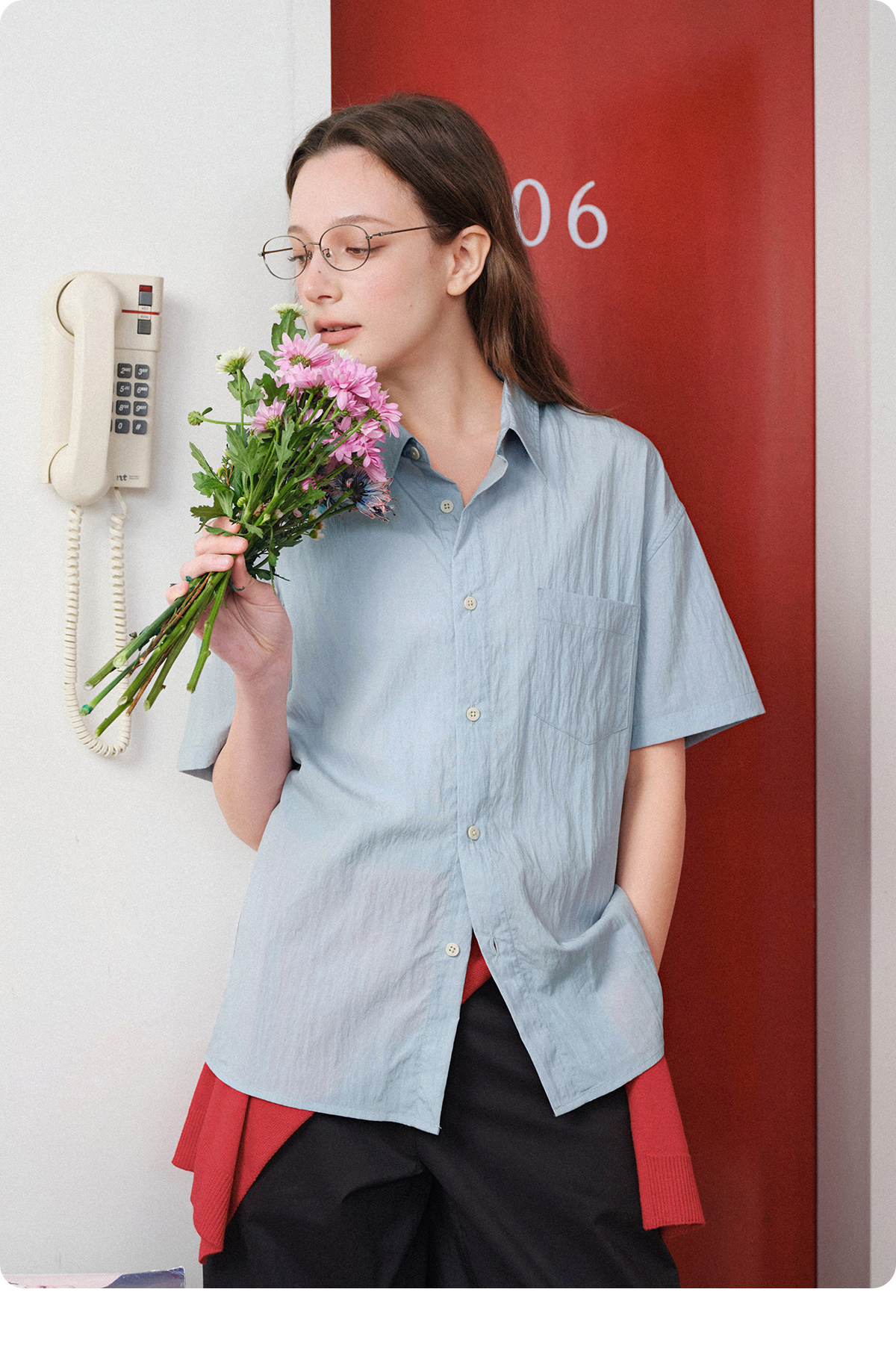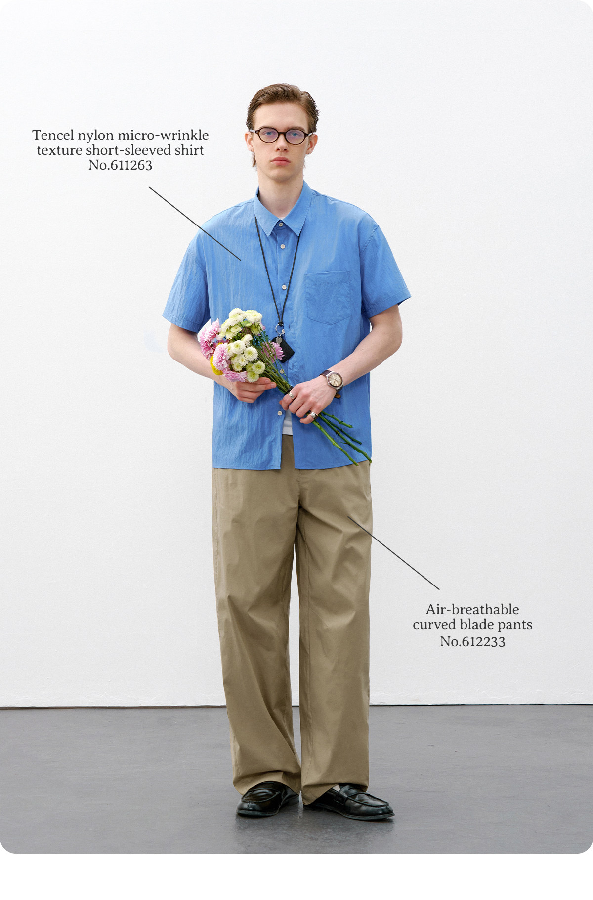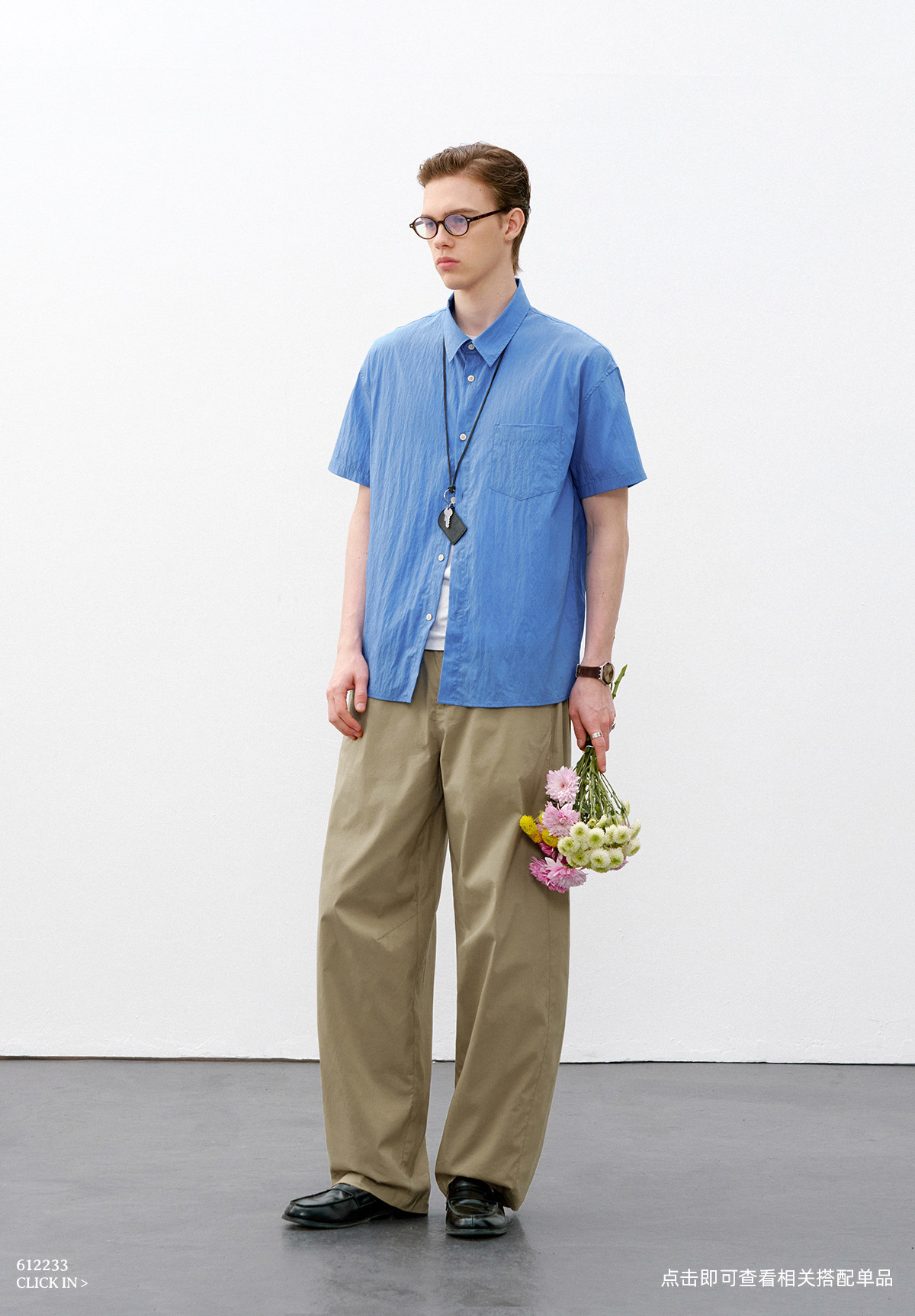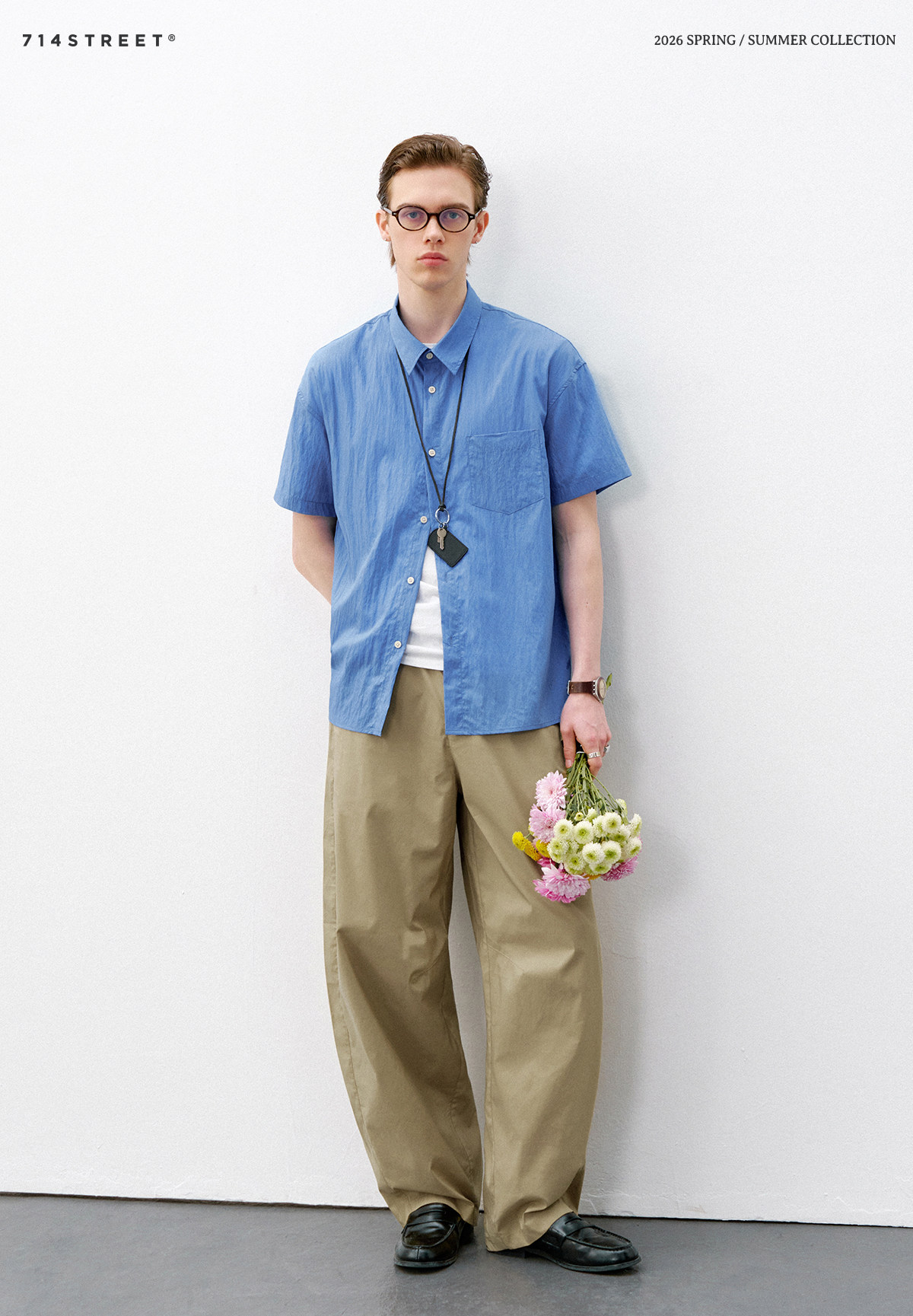 714street夏季轻薄亲肤透气莱赛尔天丝微皱纹理短袖衬衫男女同款