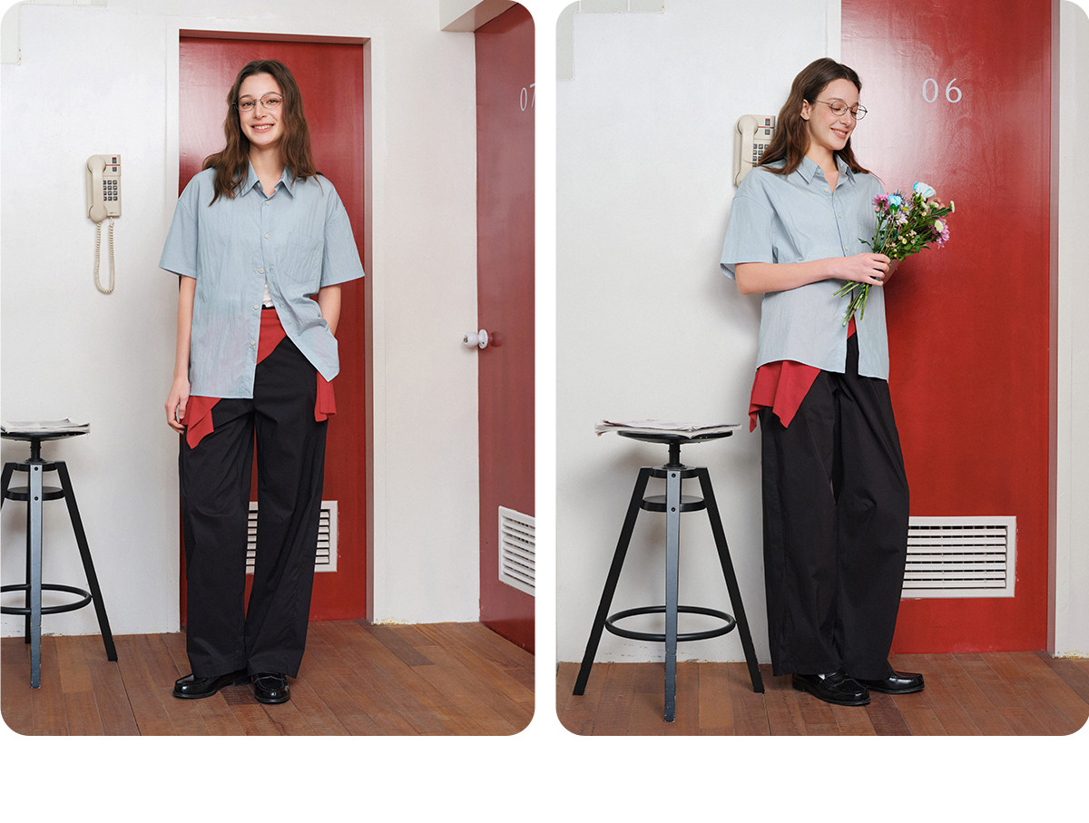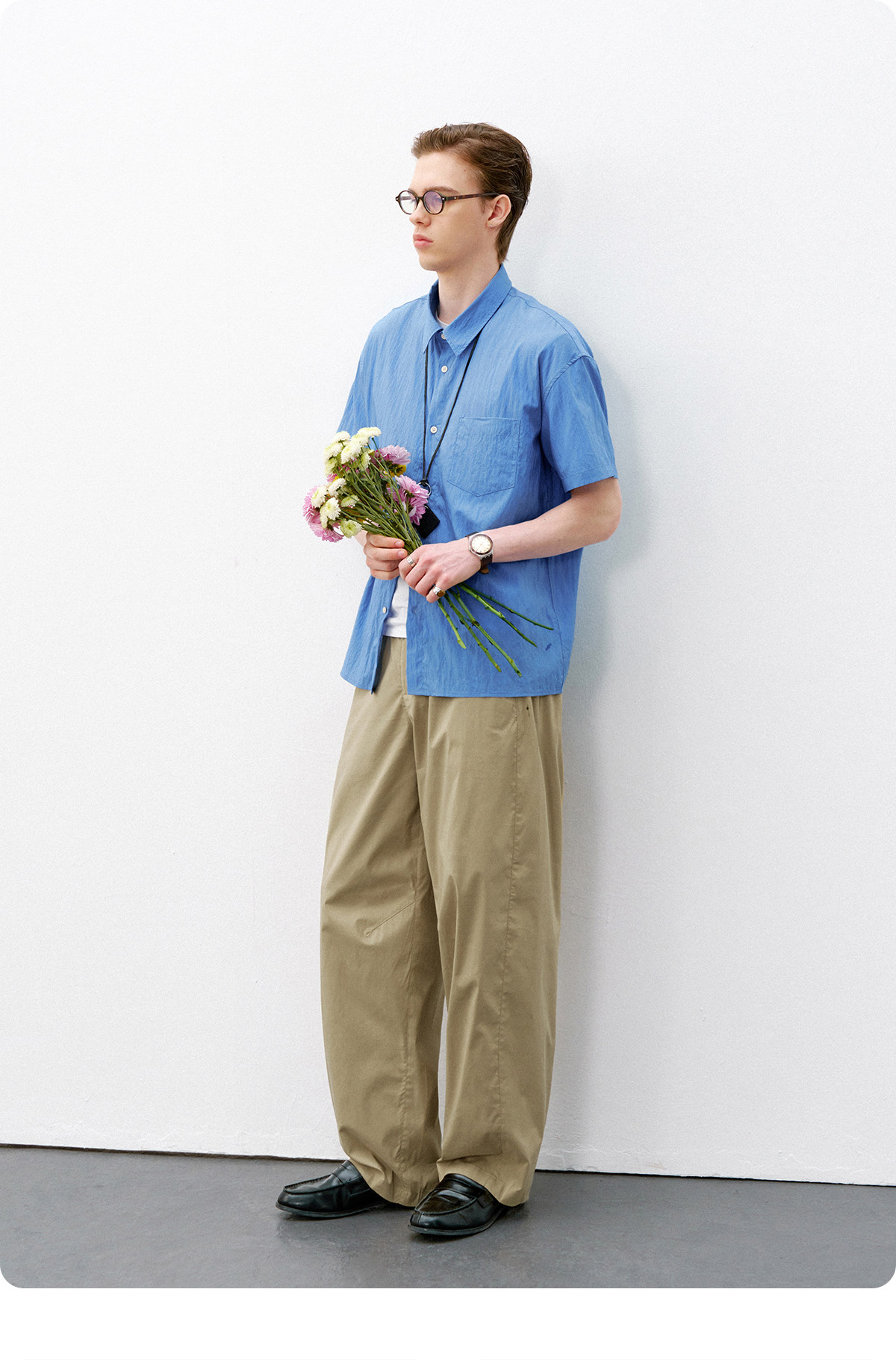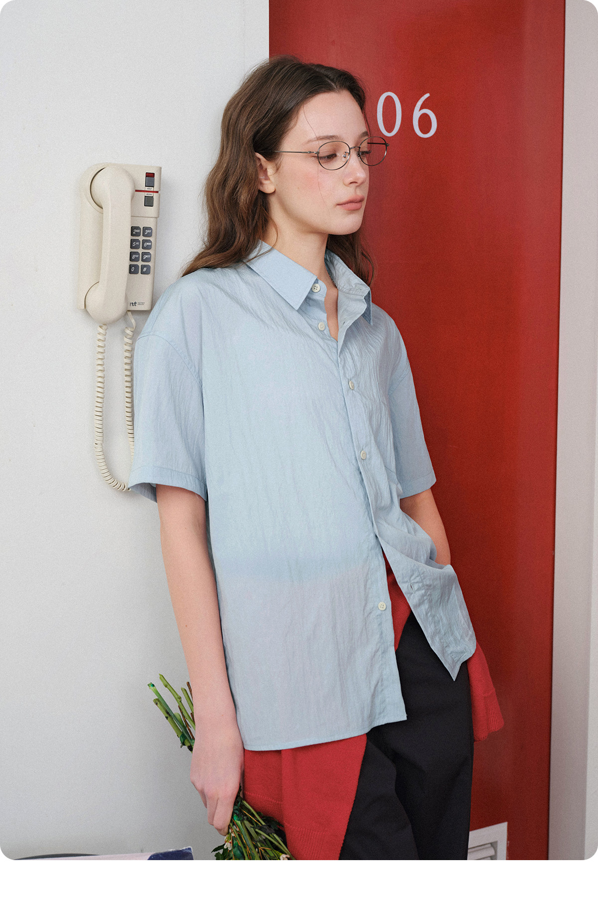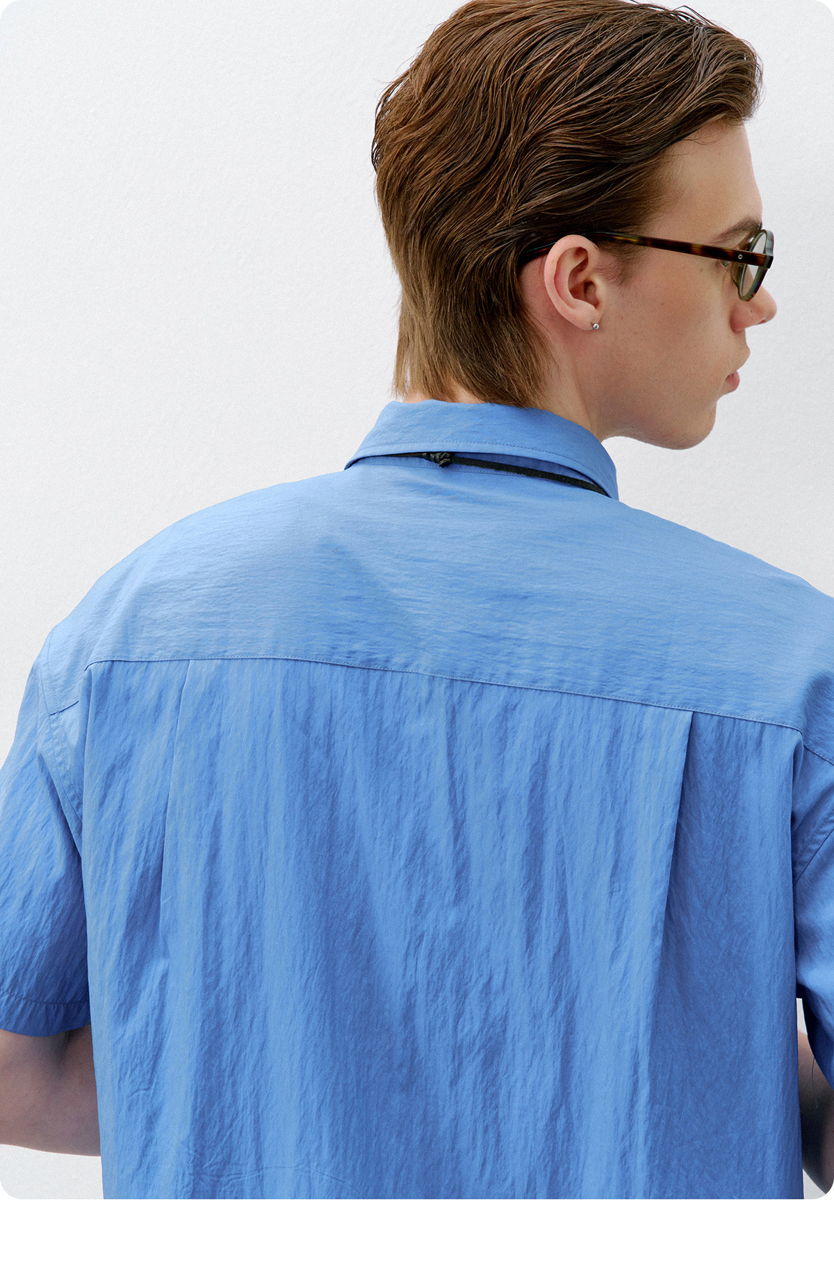 714street夏季轻薄亲肤透气莱赛尔天丝微皱纹理短袖衬衫男女同款