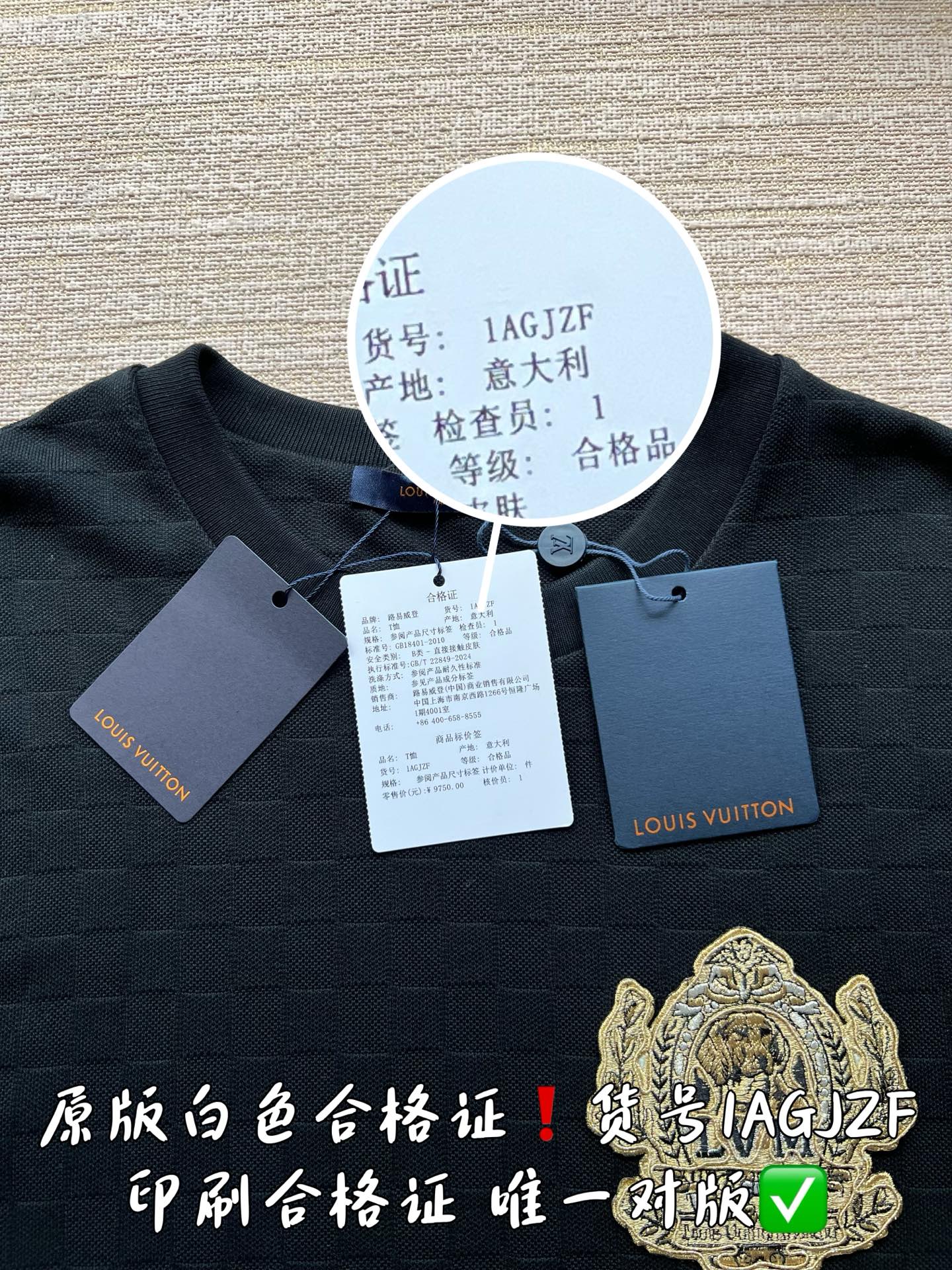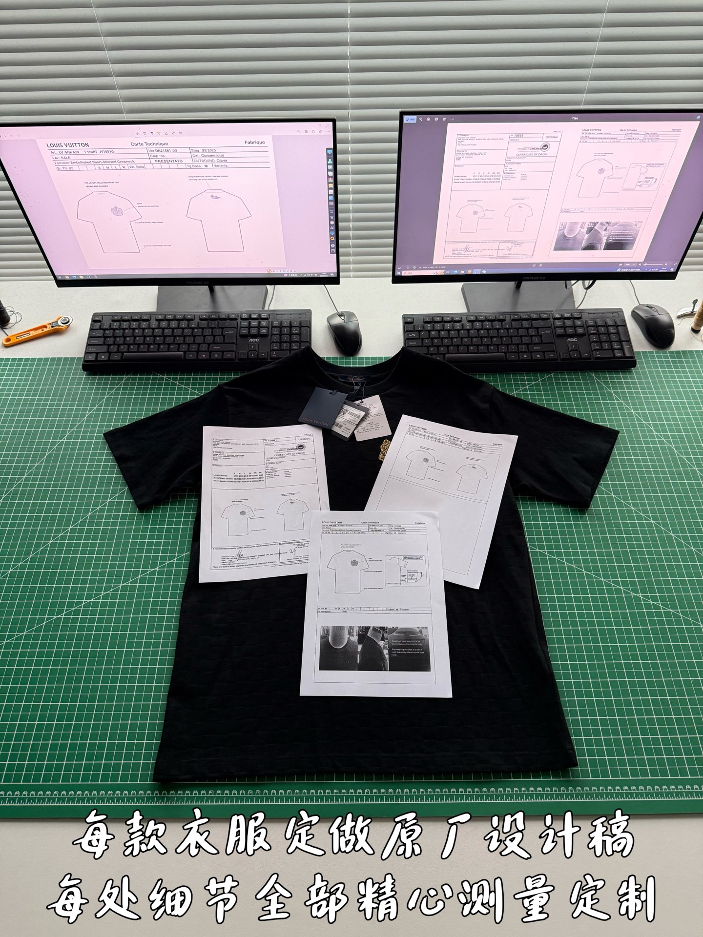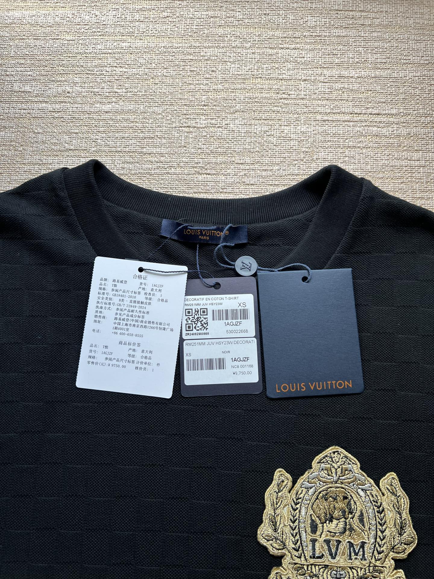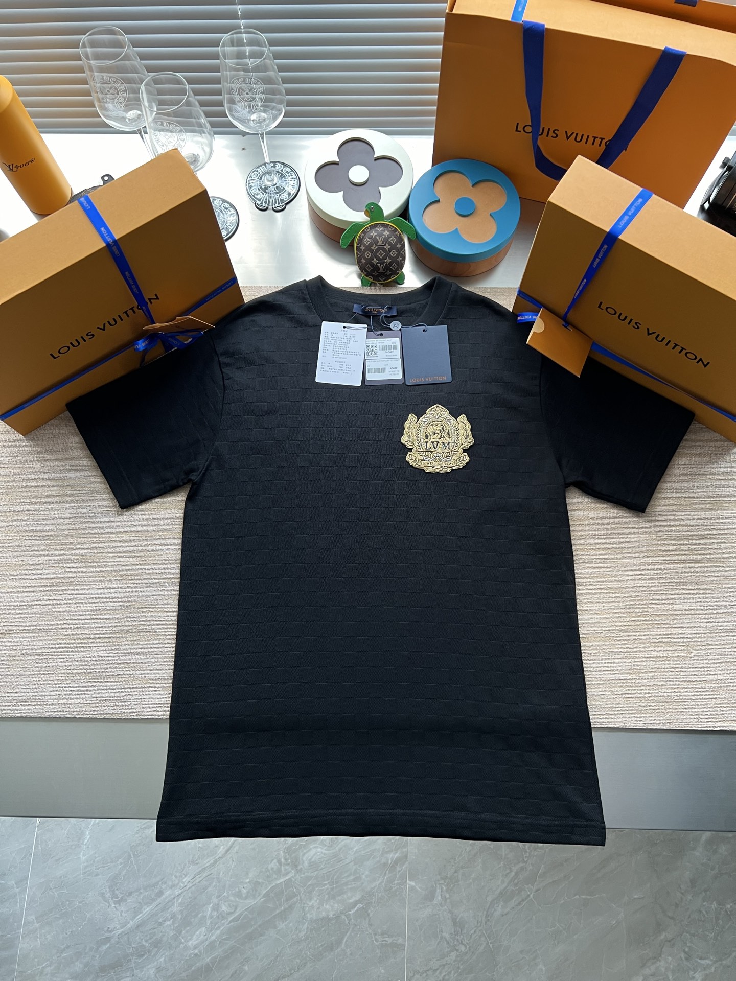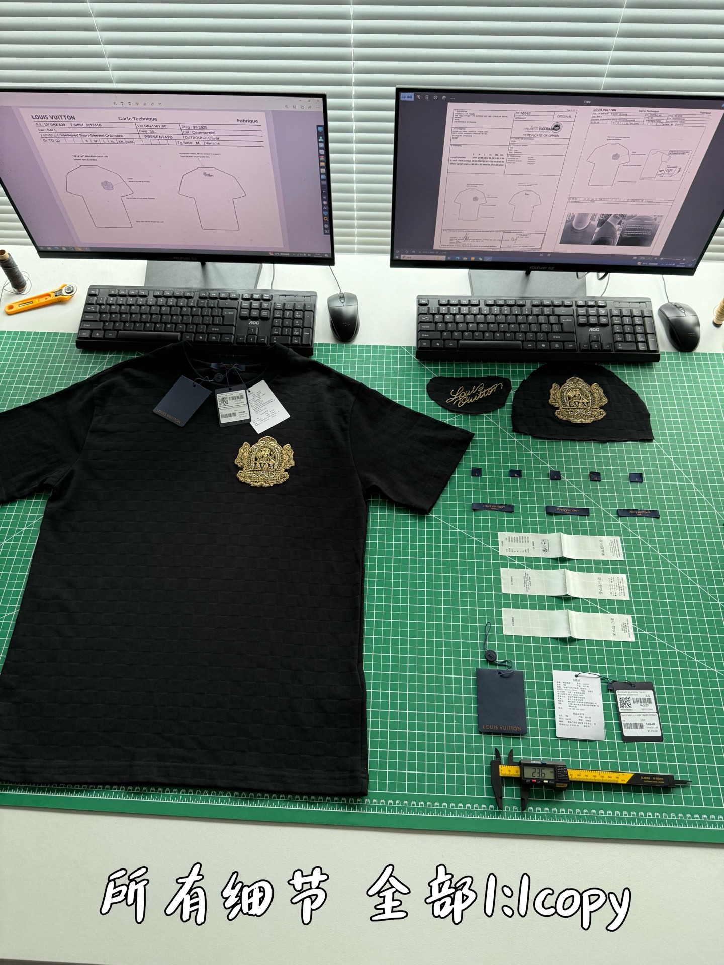Louis Vuitton25ss小狗金线徽章短袖T恤‼️整件衣服9750购买ZP拆解打造,采用定制黑色珠地棉面料,做到100%全面进口纱线,全幅饰以Damier棋盘格提花珠地设计,胸前点缀LV Dog Blason刺绣提花贴饰,定织标志性罗纹领口,真正做到1:1copy 码数:XS S M L