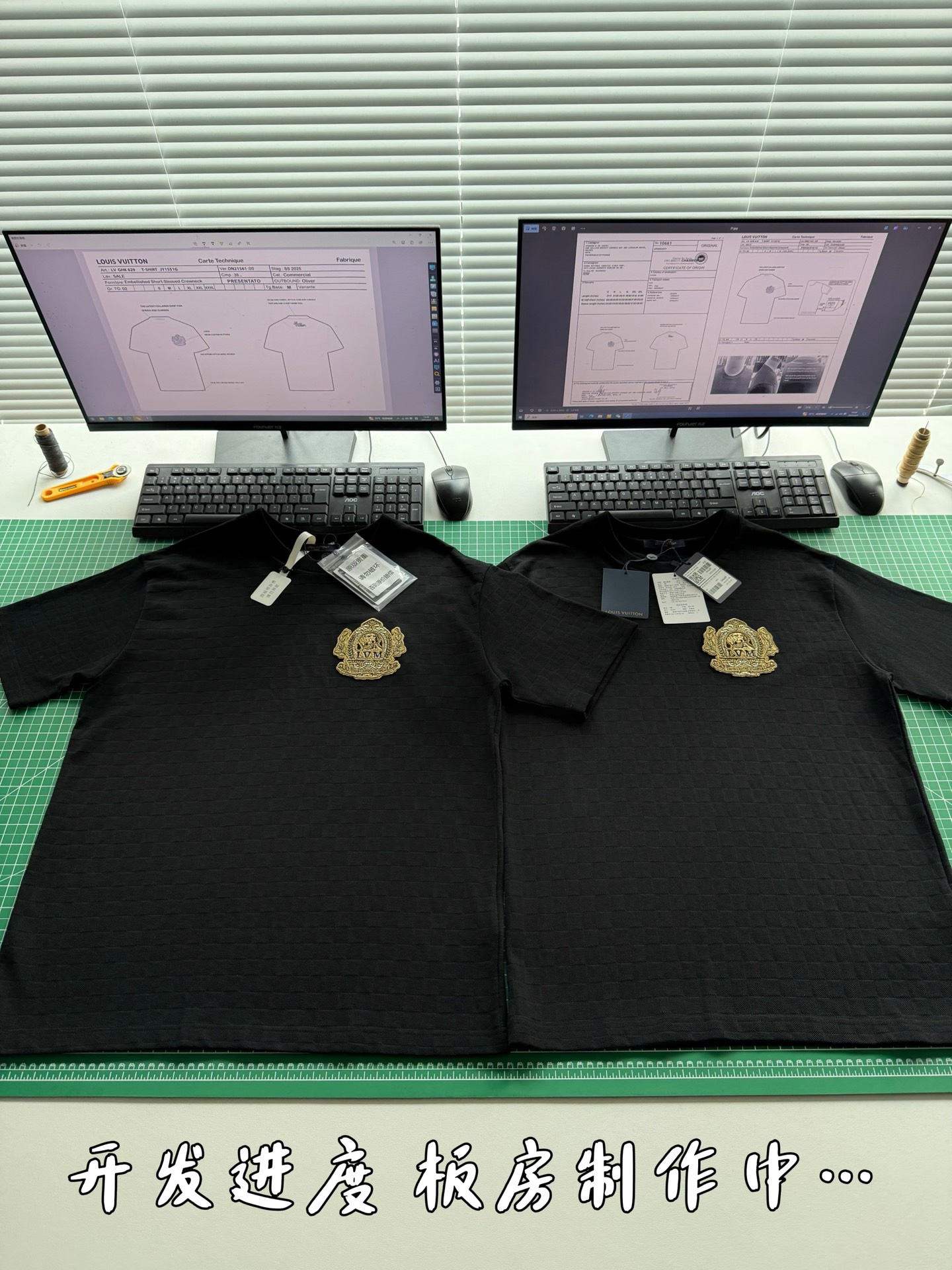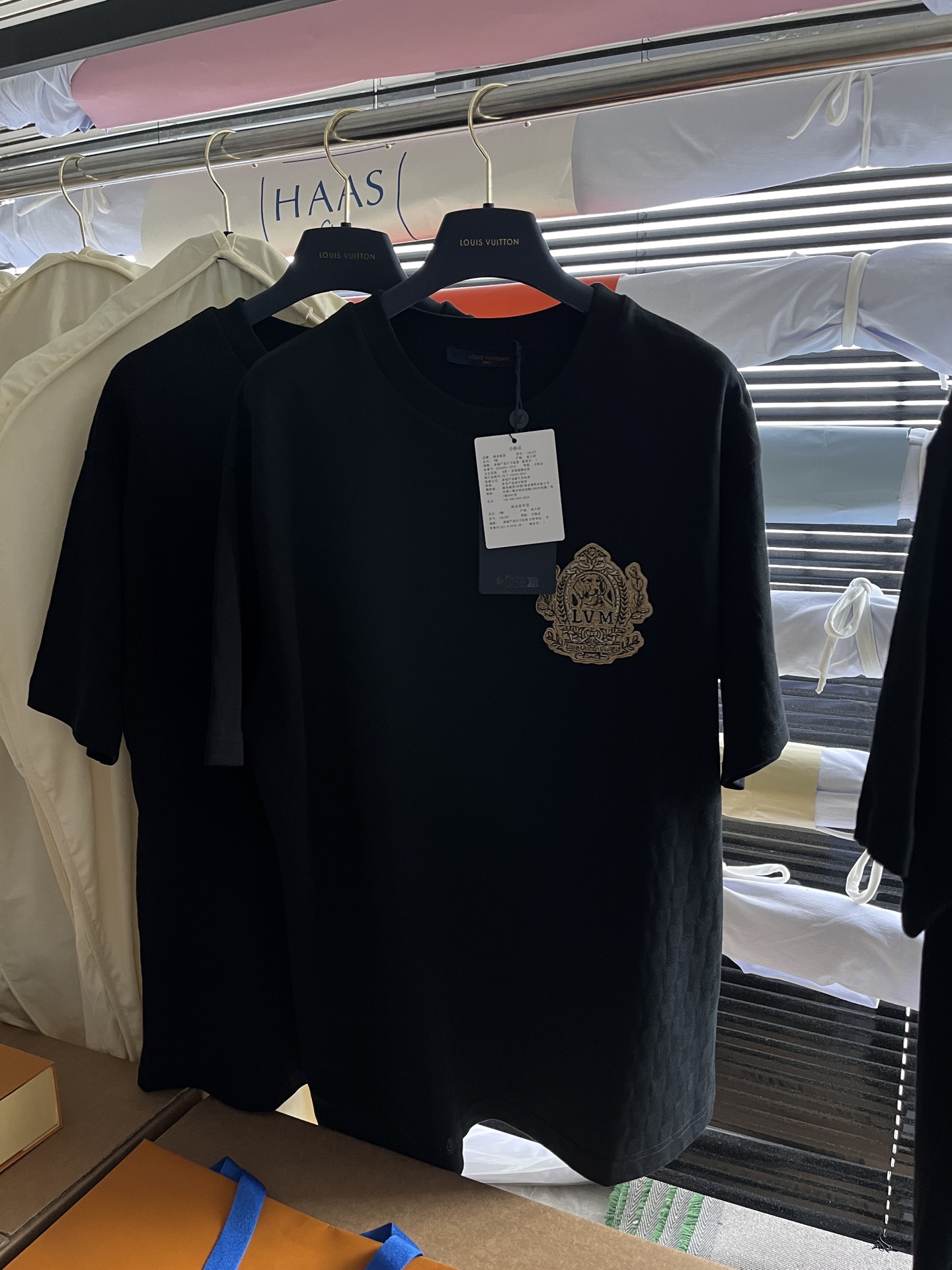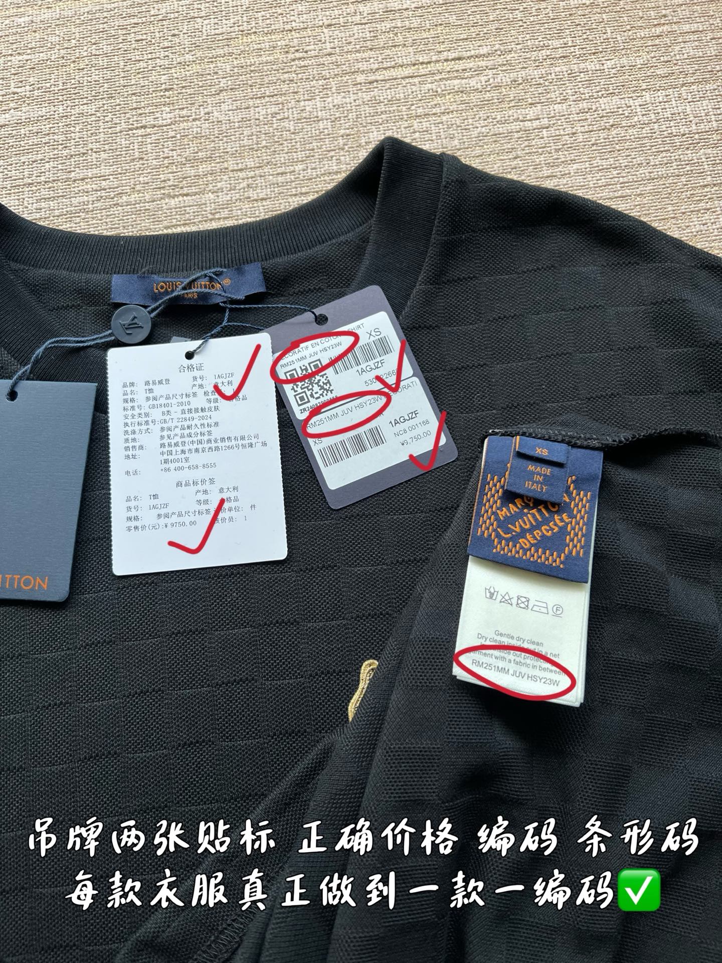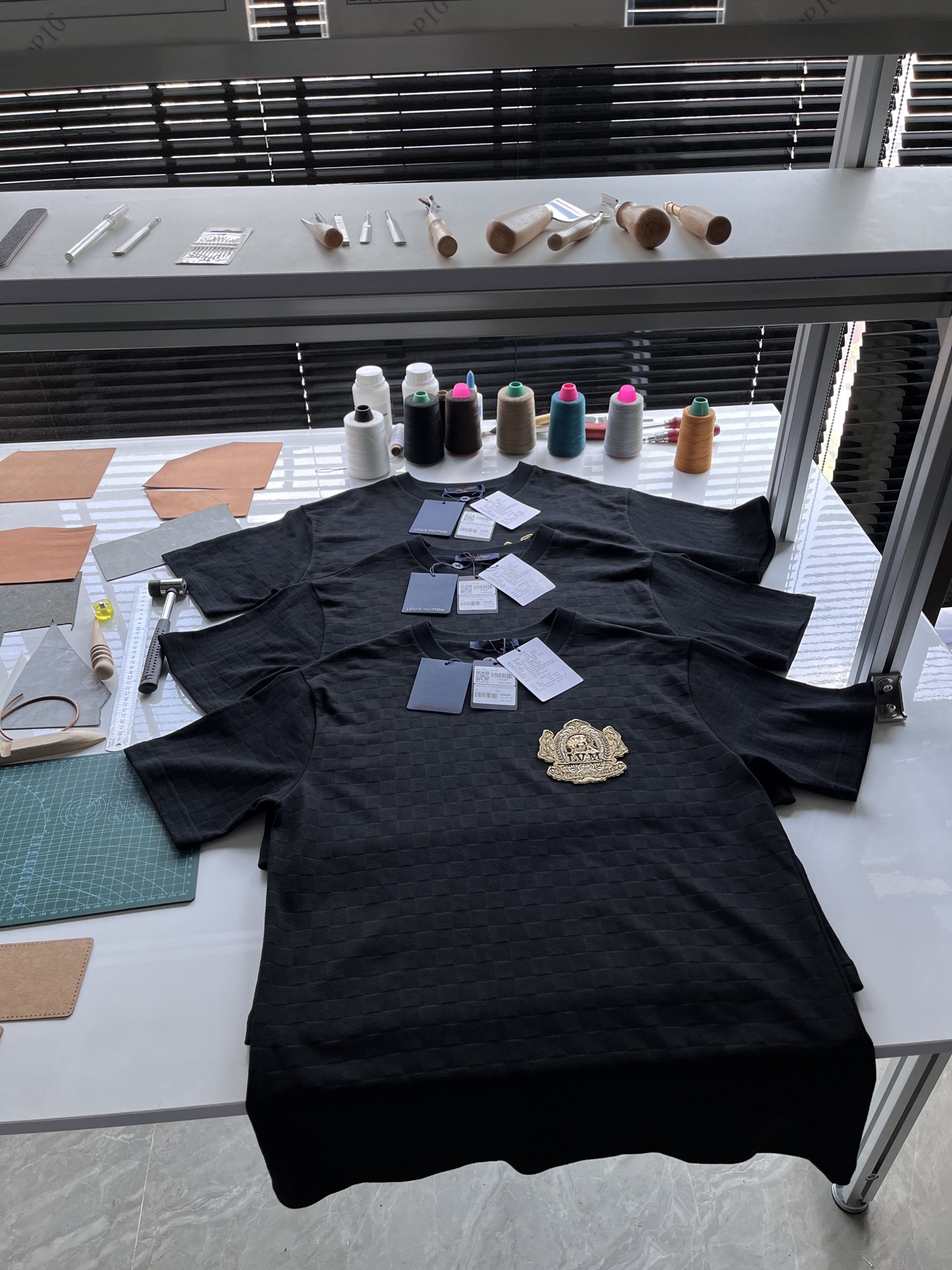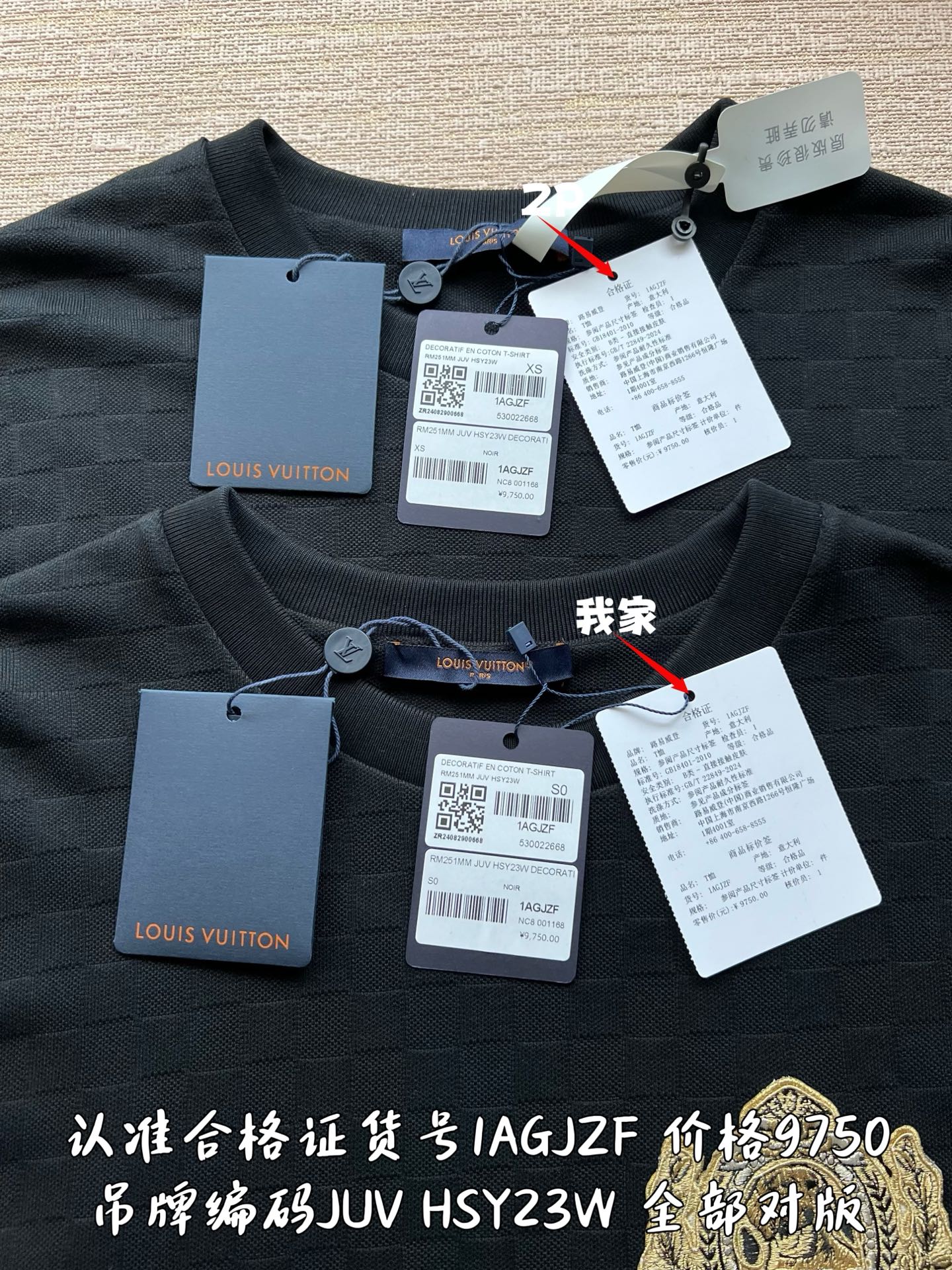 Louis Vuitton25ss小狗金线徽章短袖T恤‼️整件衣服9750购买ZP拆解打造,采用定制黑色珠地棉面料,做到100%全面进口纱线,全幅饰以Damier棋盘格提花珠地设计,胸前点缀LV Dog Blason刺绣提花贴饰,定织标志性罗纹领口,真正做到1:1copy 码数:XS S M L
