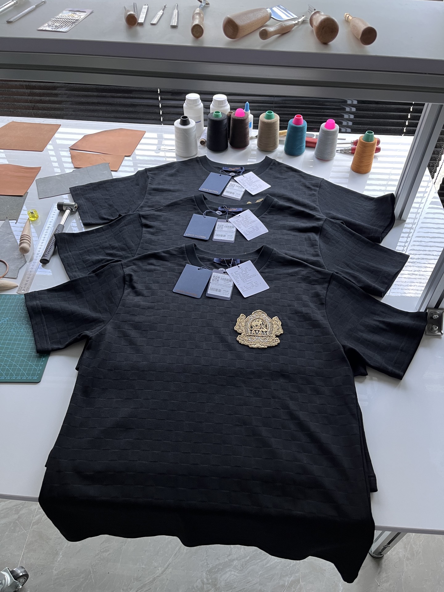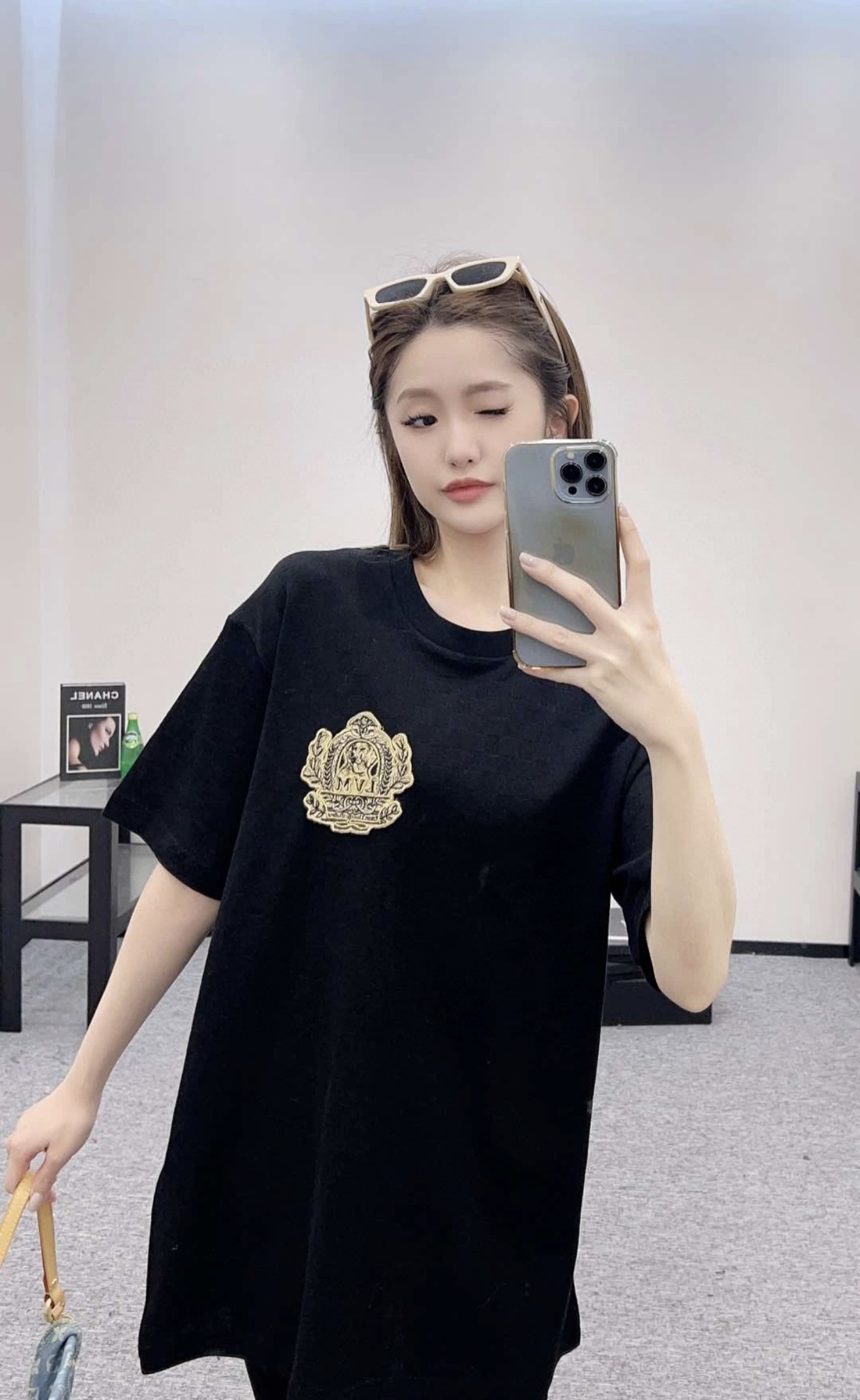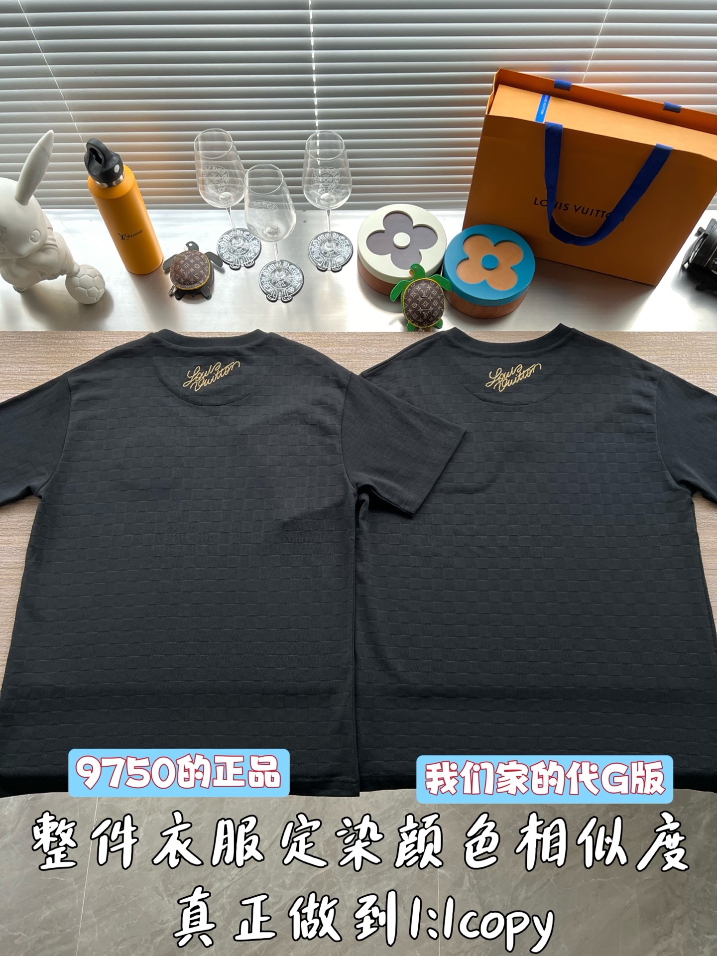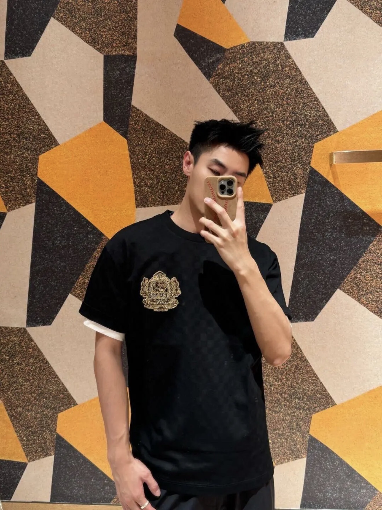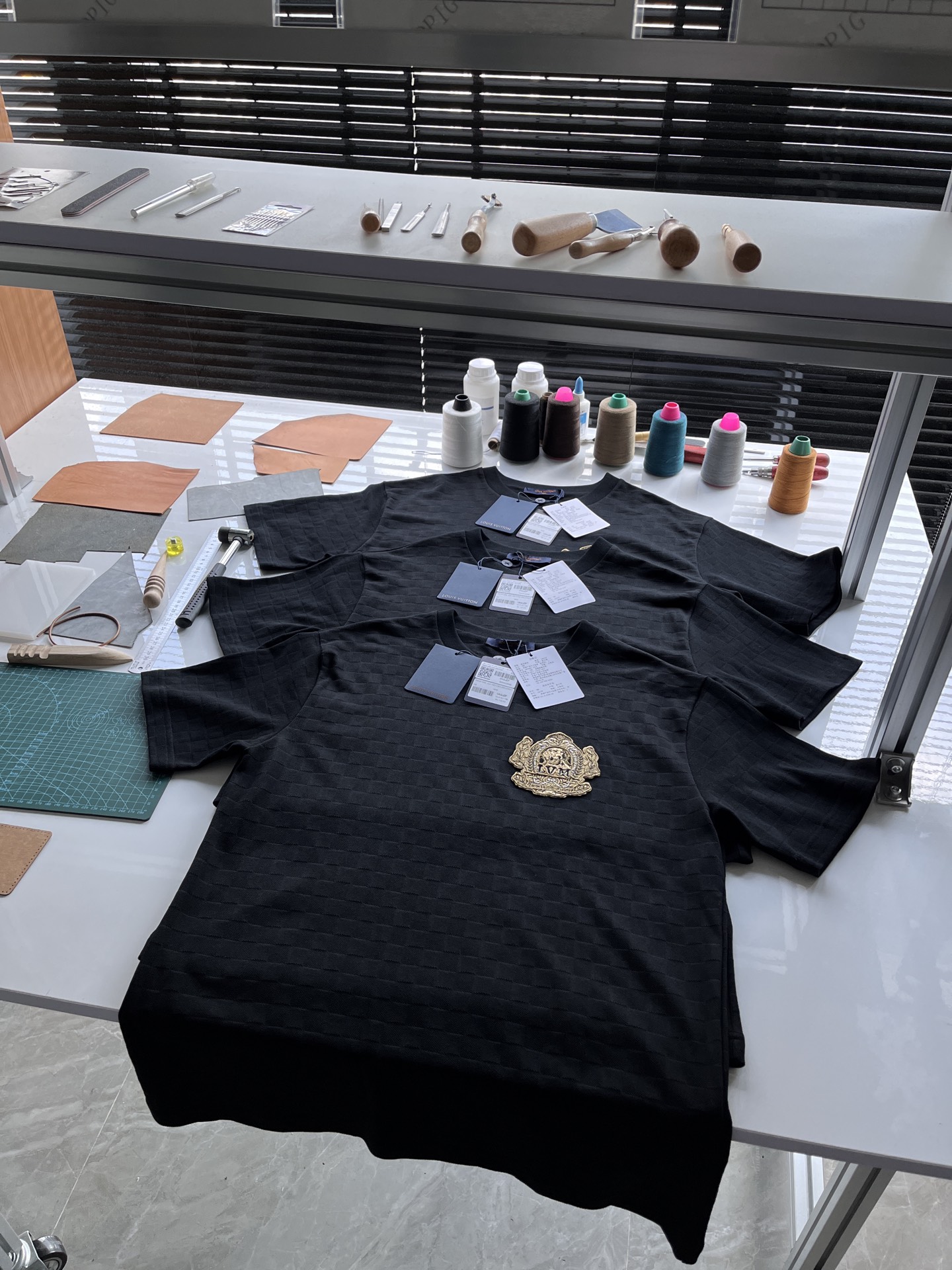 Louis Vuitton25ss小狗金线徽章短袖T恤‼️整件衣服9750购买ZP拆解打造,采用定制黑色珠地棉面料,做到100%全面进口纱线,全幅饰以Damier棋盘格提花珠地设计,胸前点缀LV Dog Blason刺绣提花贴饰,定织标志性罗纹领口,真正做到1:1copy 码数:XS S M L
