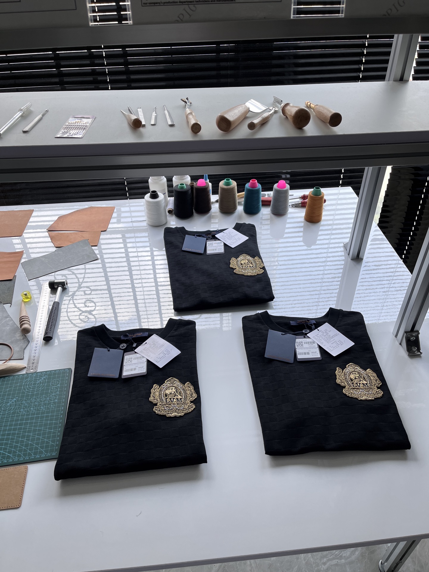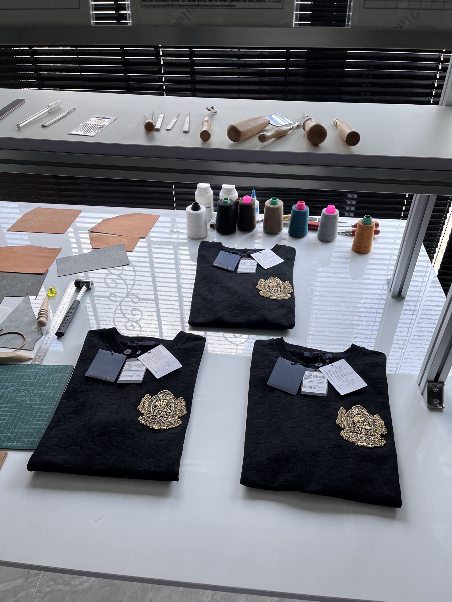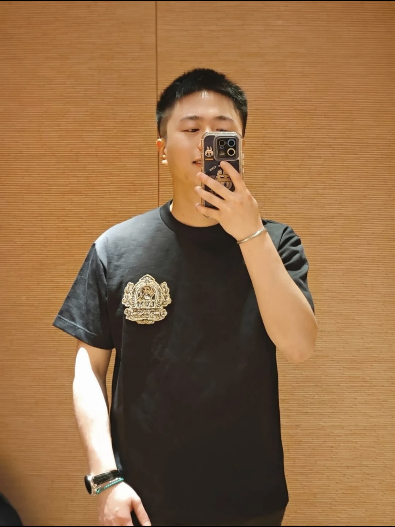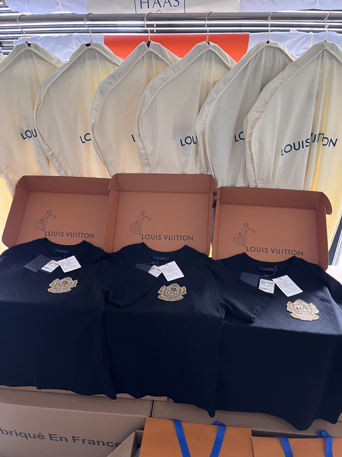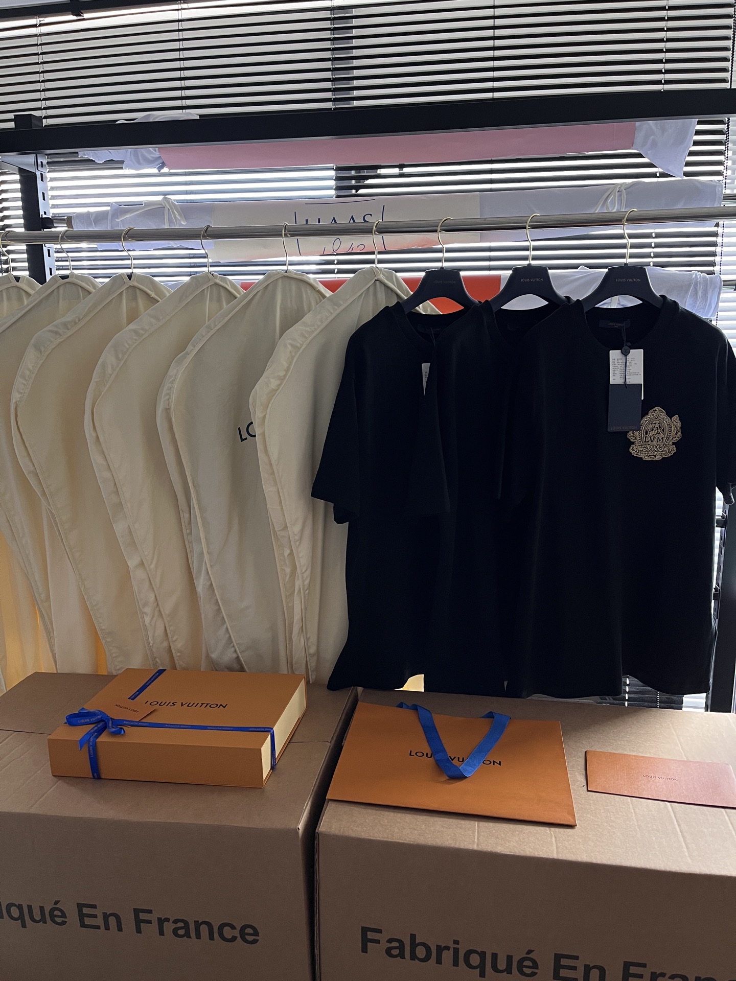 Louis Vuitton25ss小狗金线徽章短袖T恤‼️整件衣服9750购买ZP拆解打造,采用定制黑色珠地棉面料,做到100%全面进口纱线,全幅饰以Damier棋盘格提花珠地设计,胸前点缀LV Dog Blason刺绣提花贴饰,定织标志性罗纹领口,真正做到1:1copy 码数:XS S M L