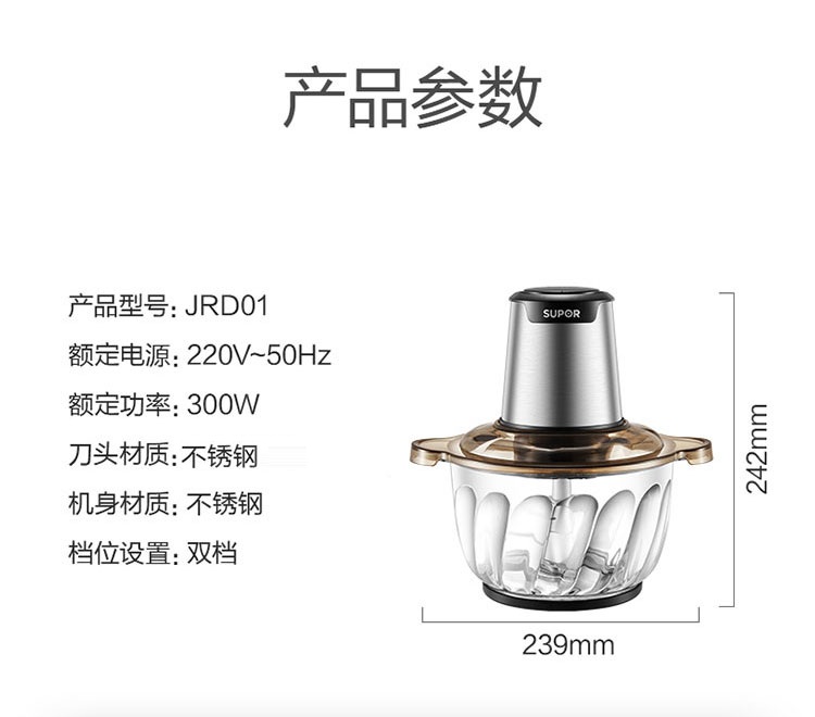 苏泊尔 SUPOR 绞肉机 全自动家用电动绞馅机搅拌机 JRD01-300