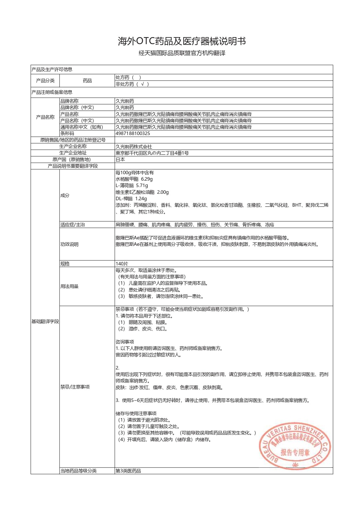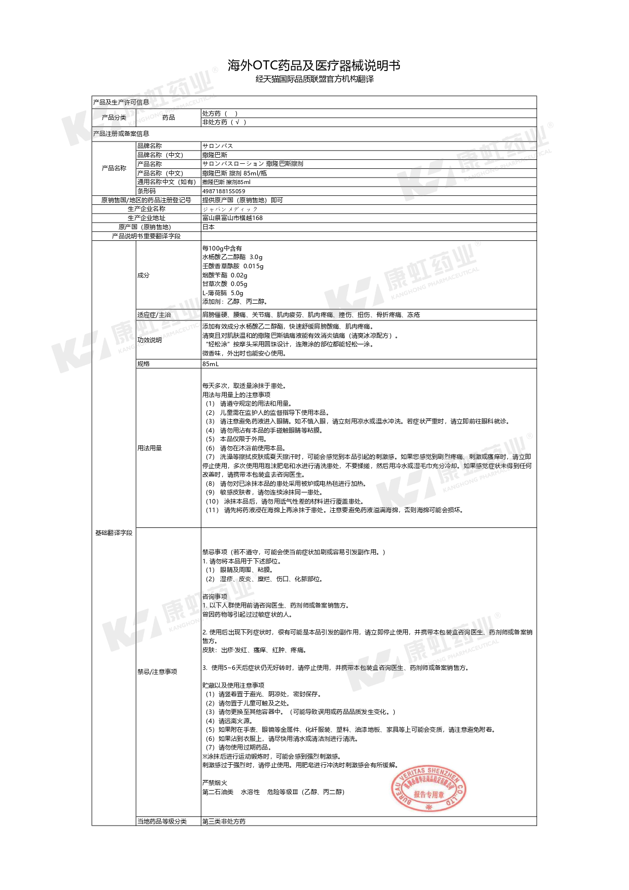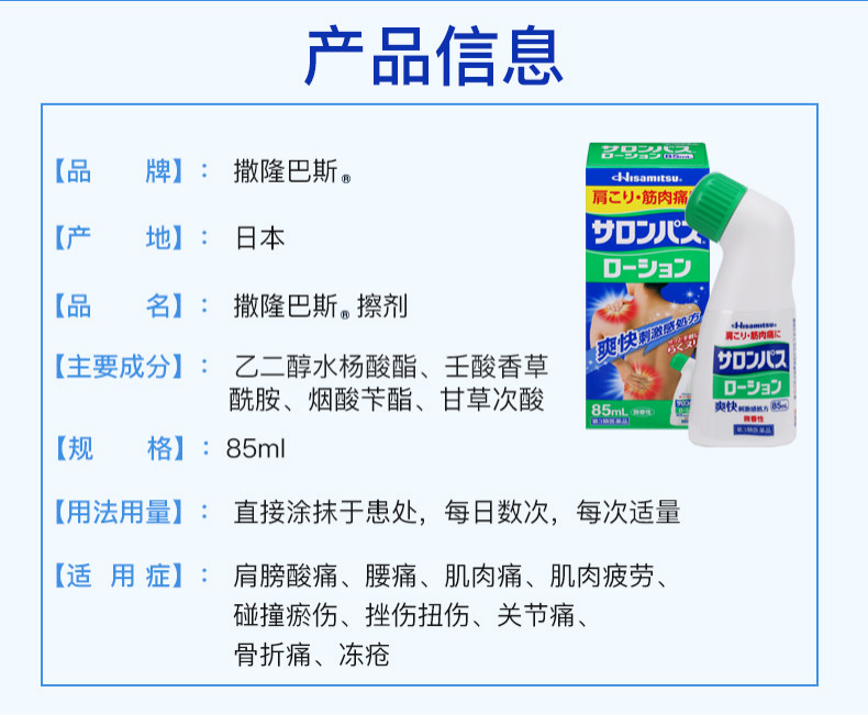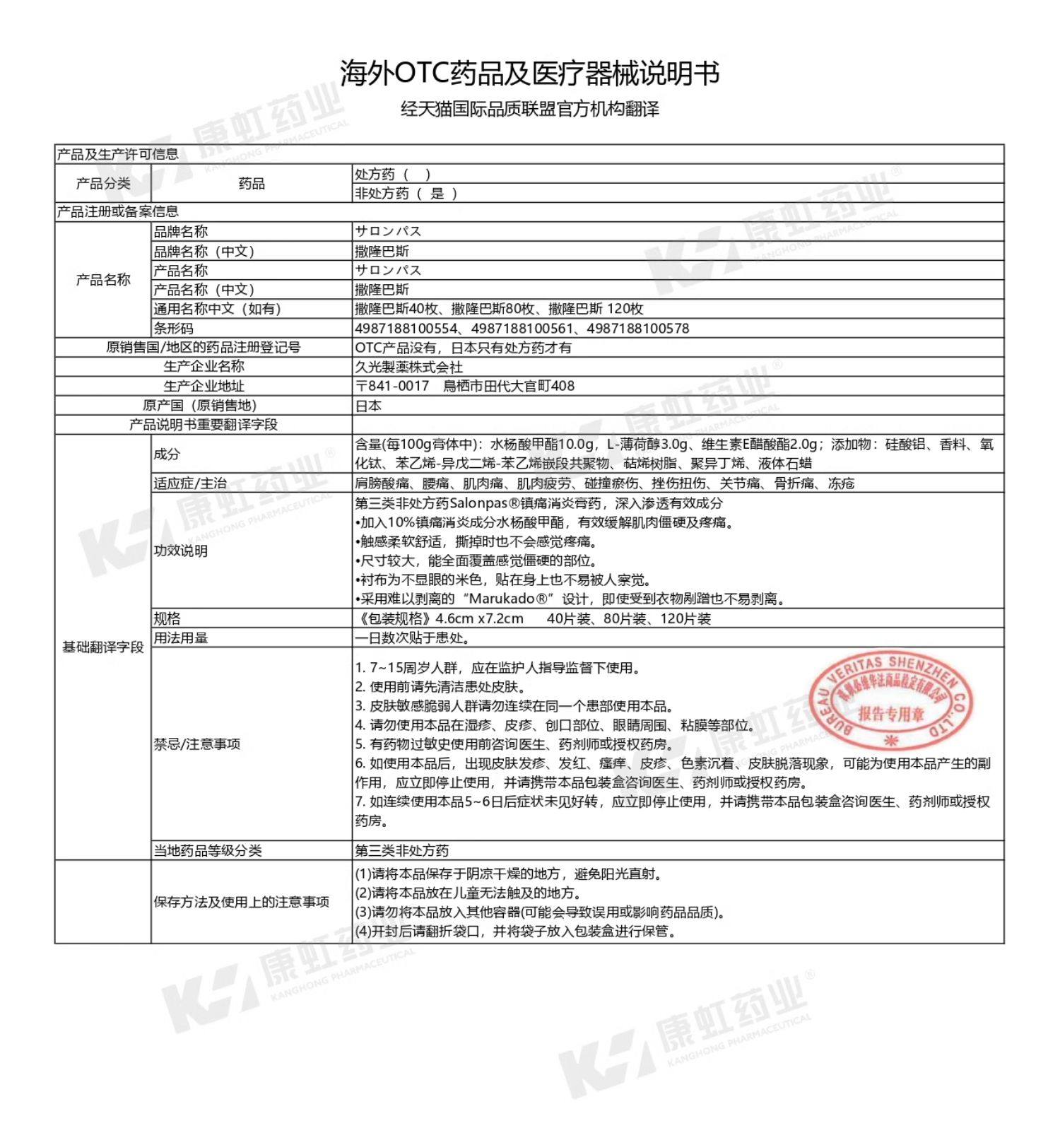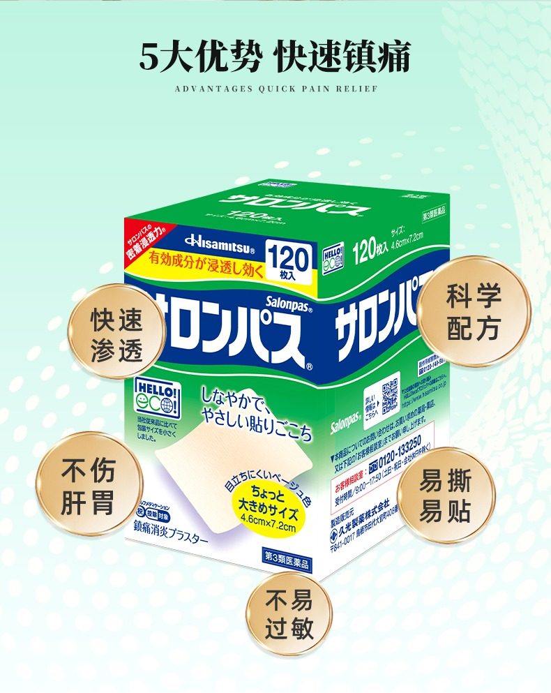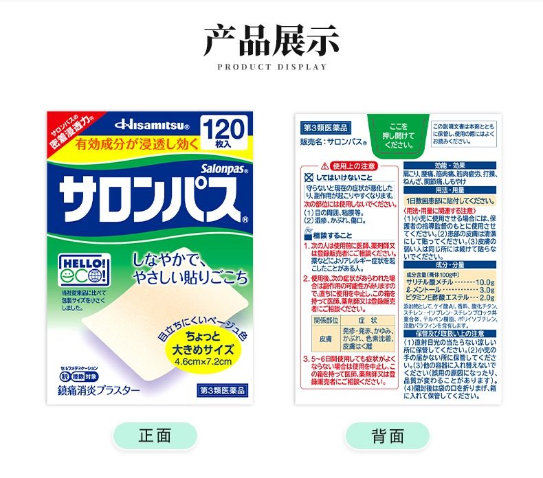 日本久光制药撒隆巴斯镇痛膏药关节疼痛消炎止痛药膏正品120贴膏