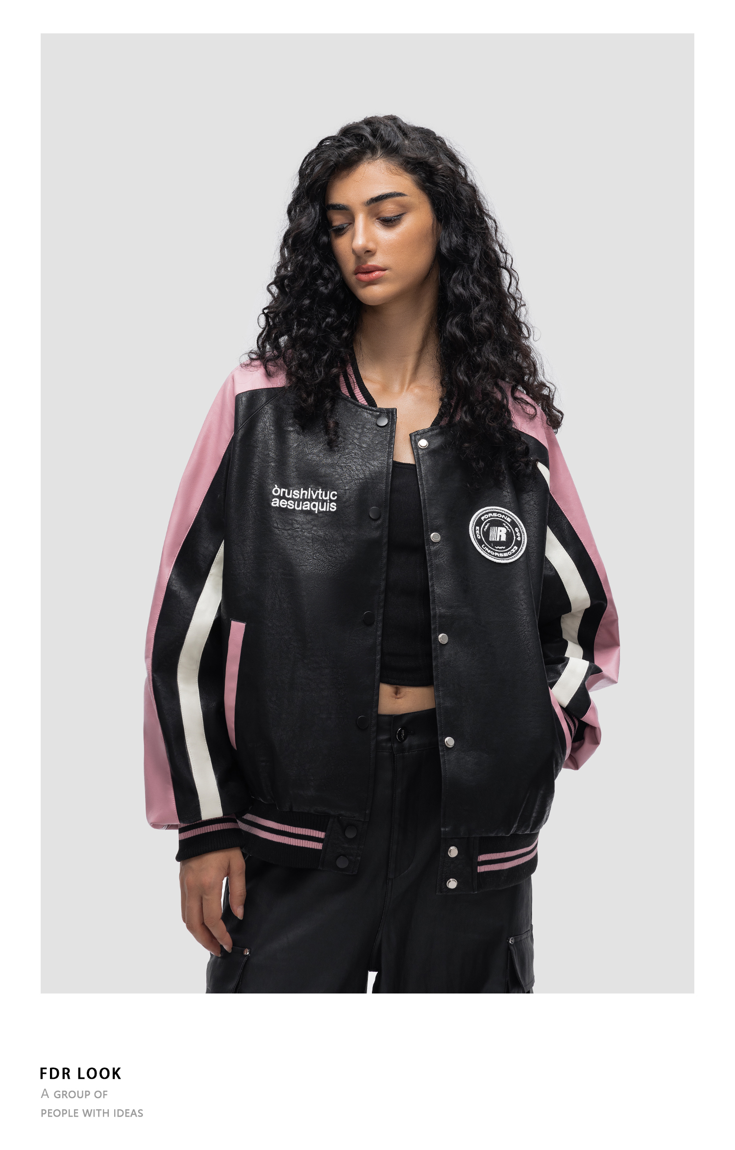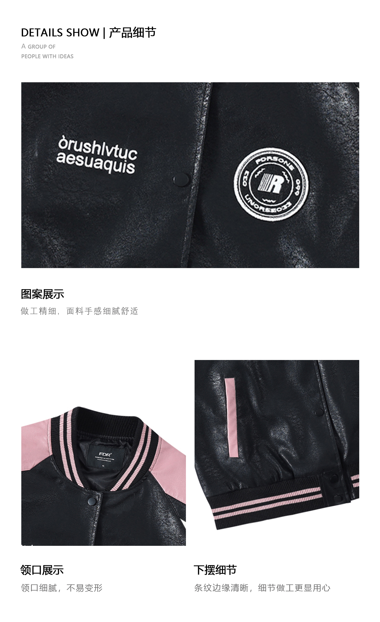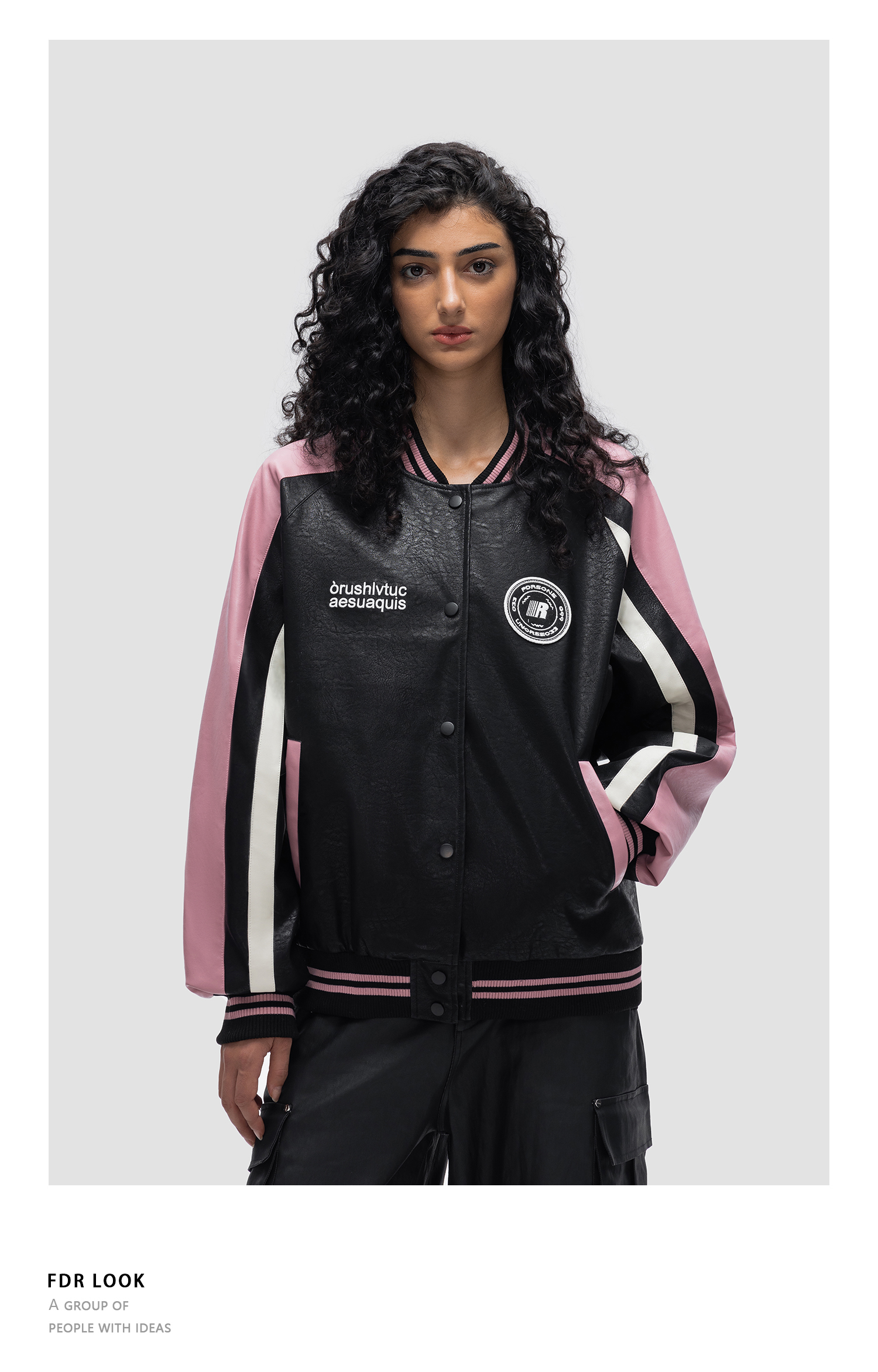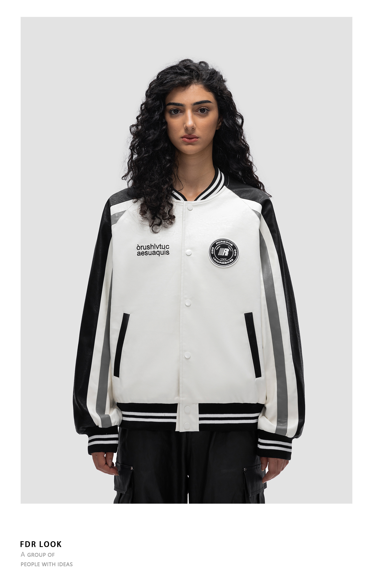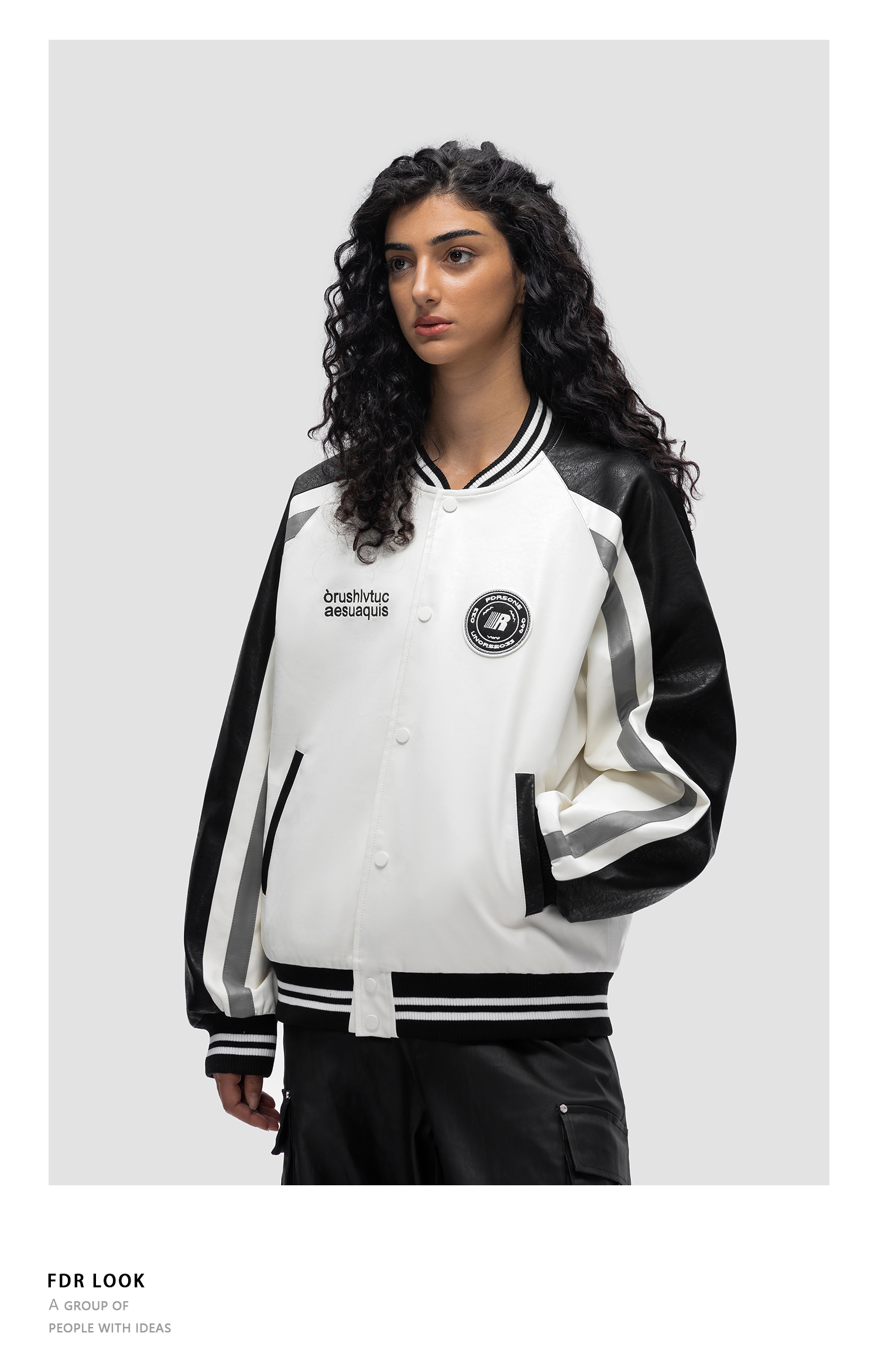 FDR 原创国潮撞色拼接棒球服外套男女秋冬季美式情侣上衣皮衣夹克
