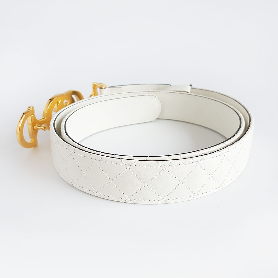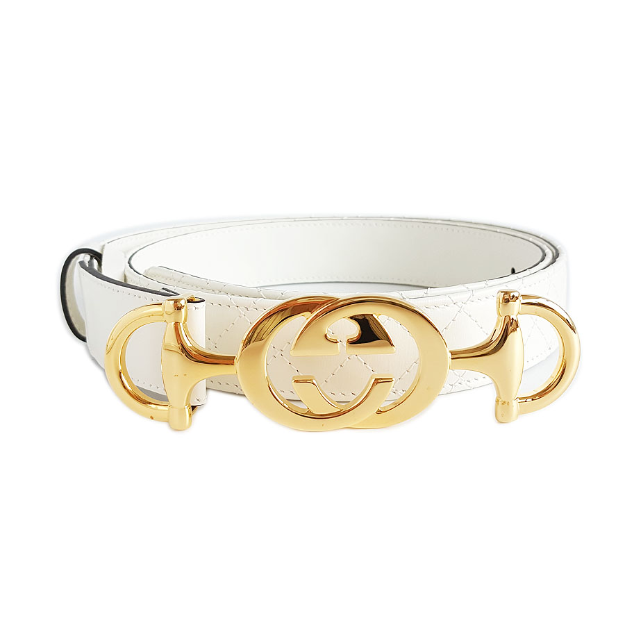 【98新】Gucci古驰白色互扣式金扣双G腰带女士现售价:1799!250725NJS11